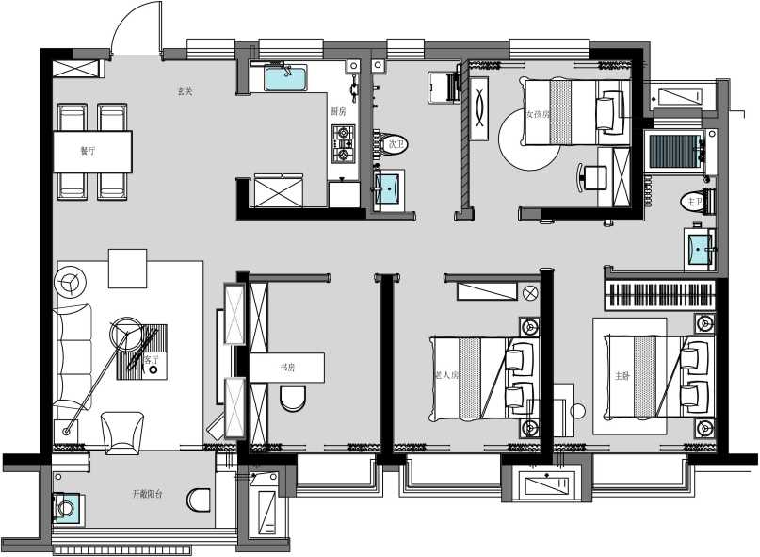 在布局上采用三卧室一书房的搭配形式,更符合客户群体的需求。