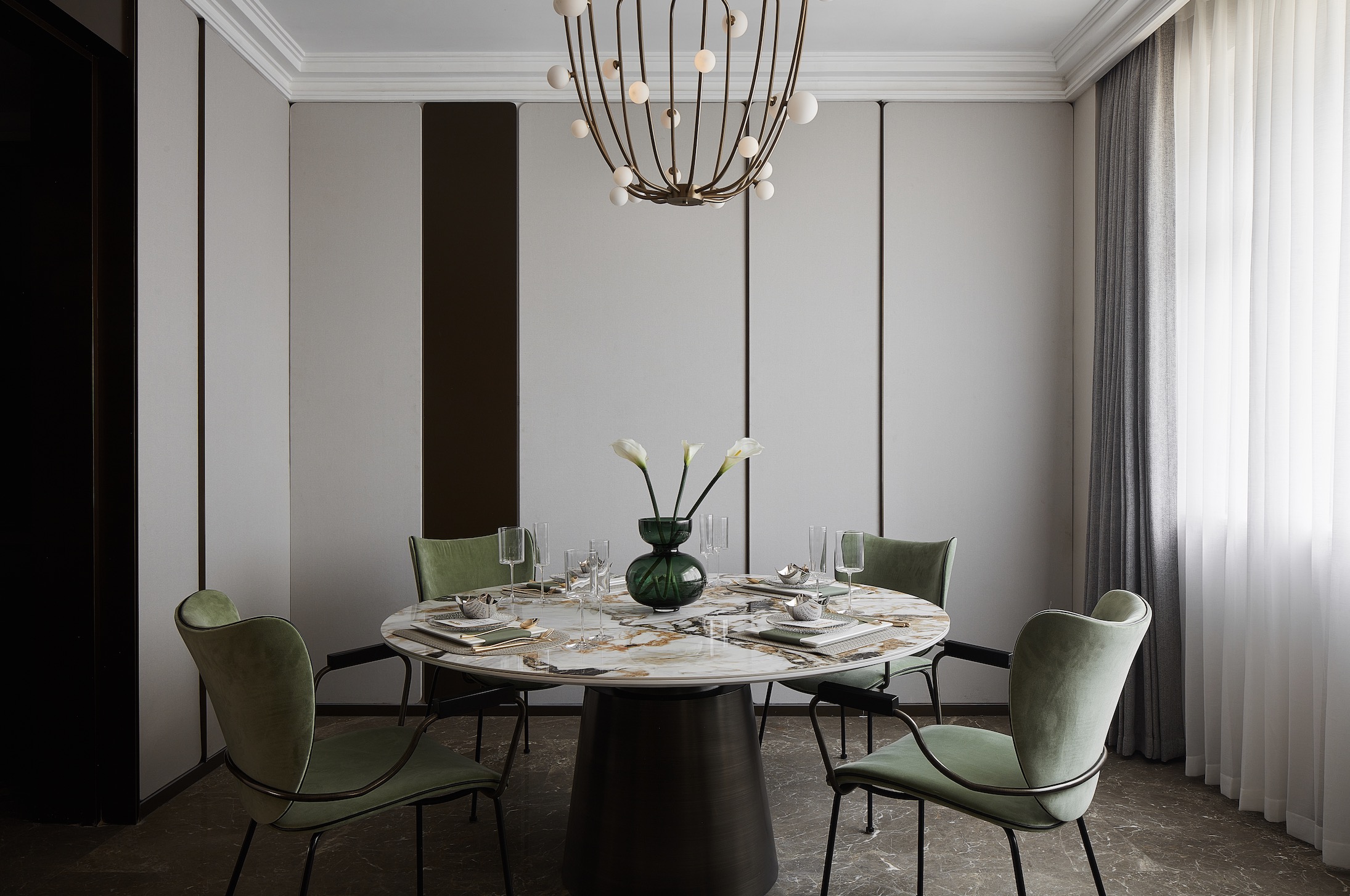 别墅空间对于繁忙都市生活的人来说应是心灵休憩的一方天地,让人进入即可卸下紧张的情绪,放缓脚步,享受心之安然。室内空间以现代手法进行切入,大块白色与各式点缀色穿插构建,将空间整体相连,突显开敞大气之感。