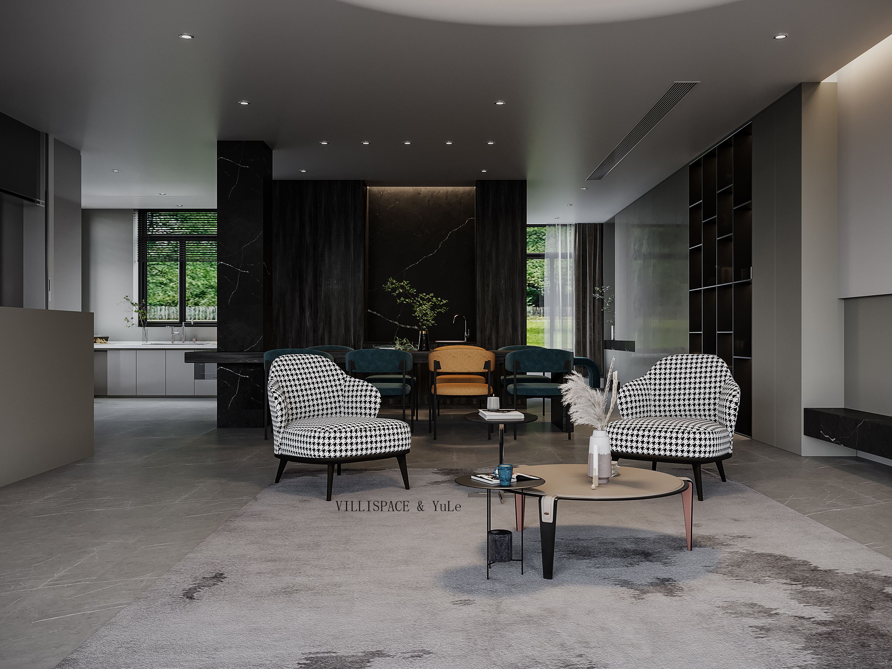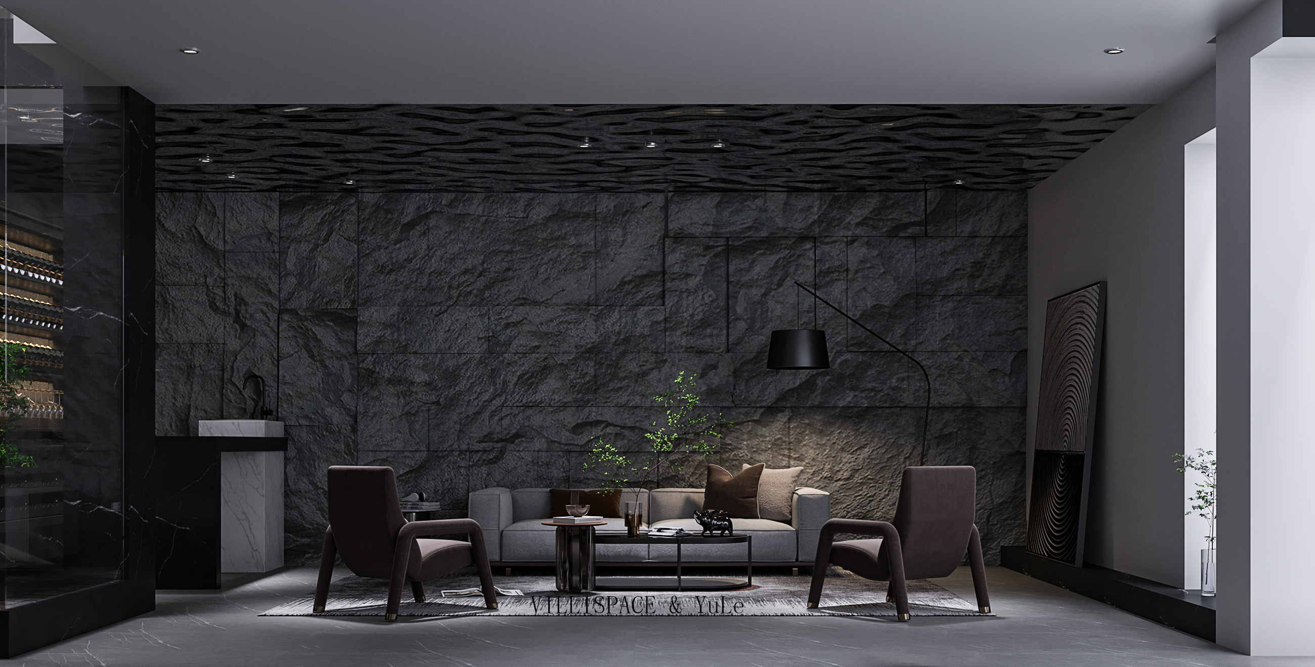 设计选材:整个设计材料运用了很多比较新颖的材料及一些新颖的施工方式,利用一些质感上的区分去提现效果。