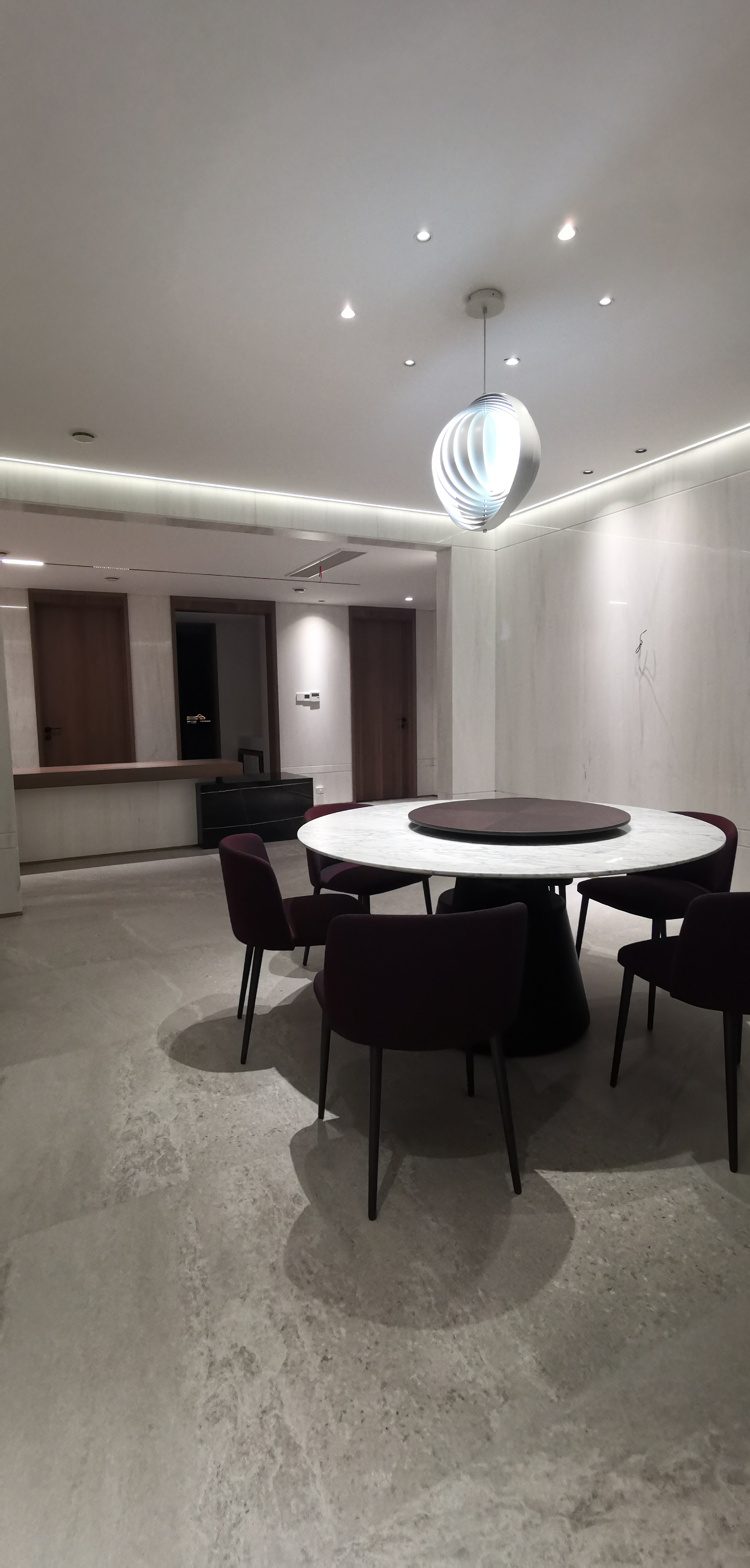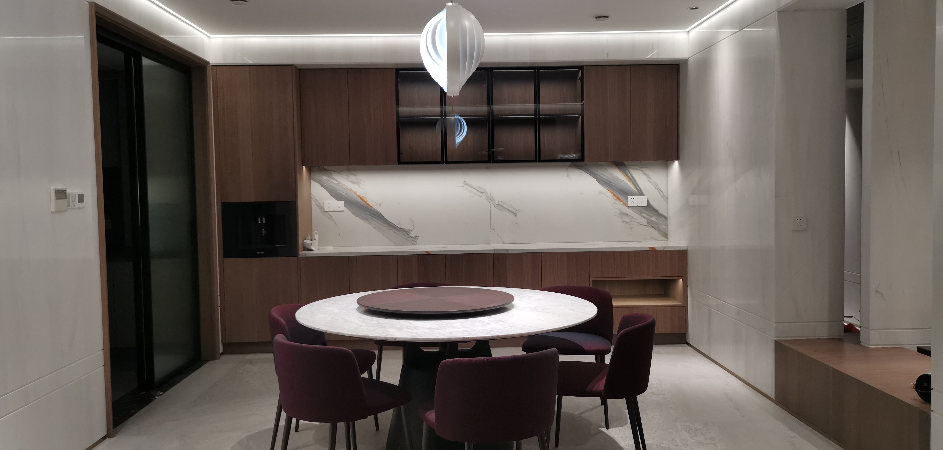 无主灯天花,点亮净白场域,让人怀抱清爽愉悦的心情,享受餐点,以及和家人共聚的时光。 -
