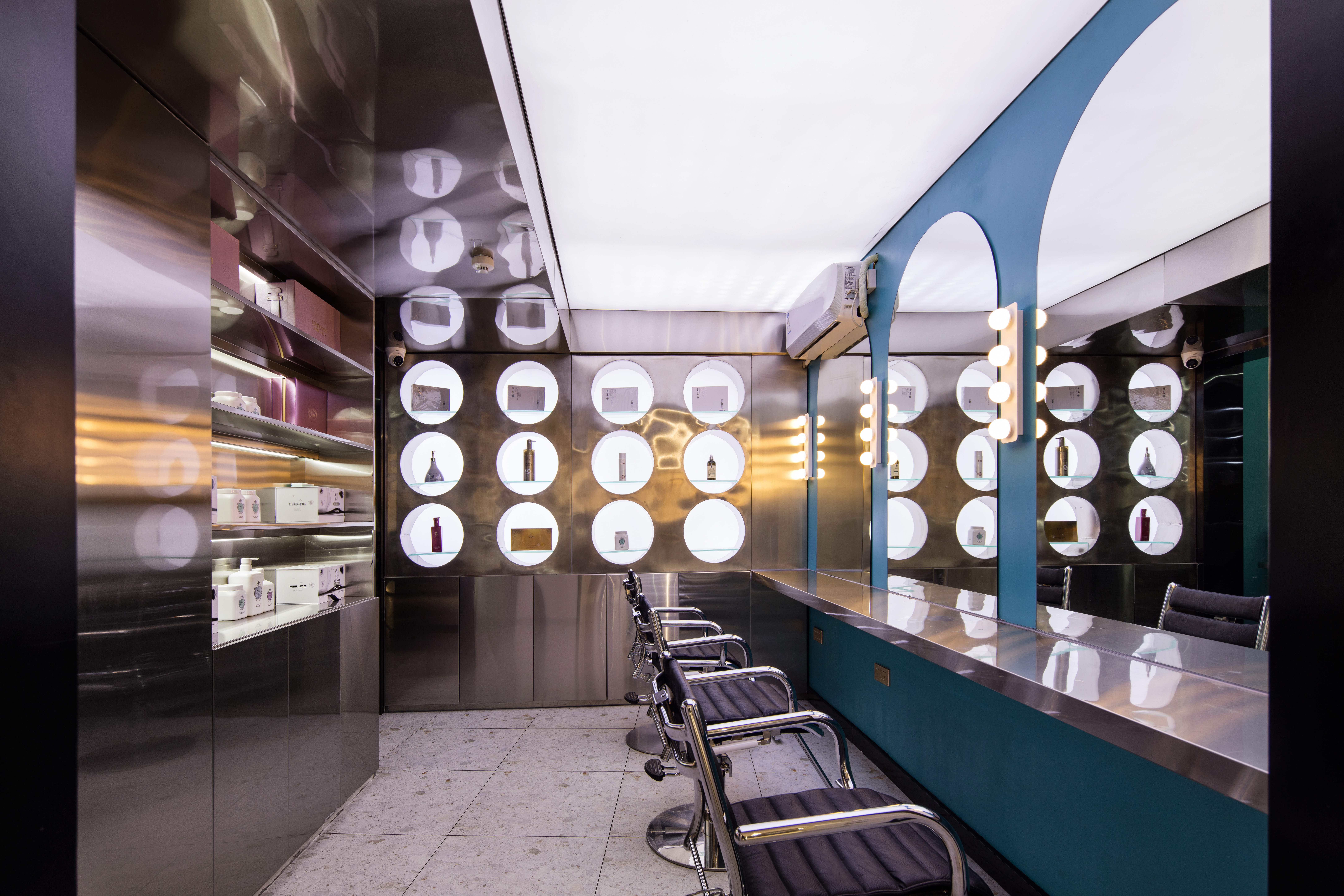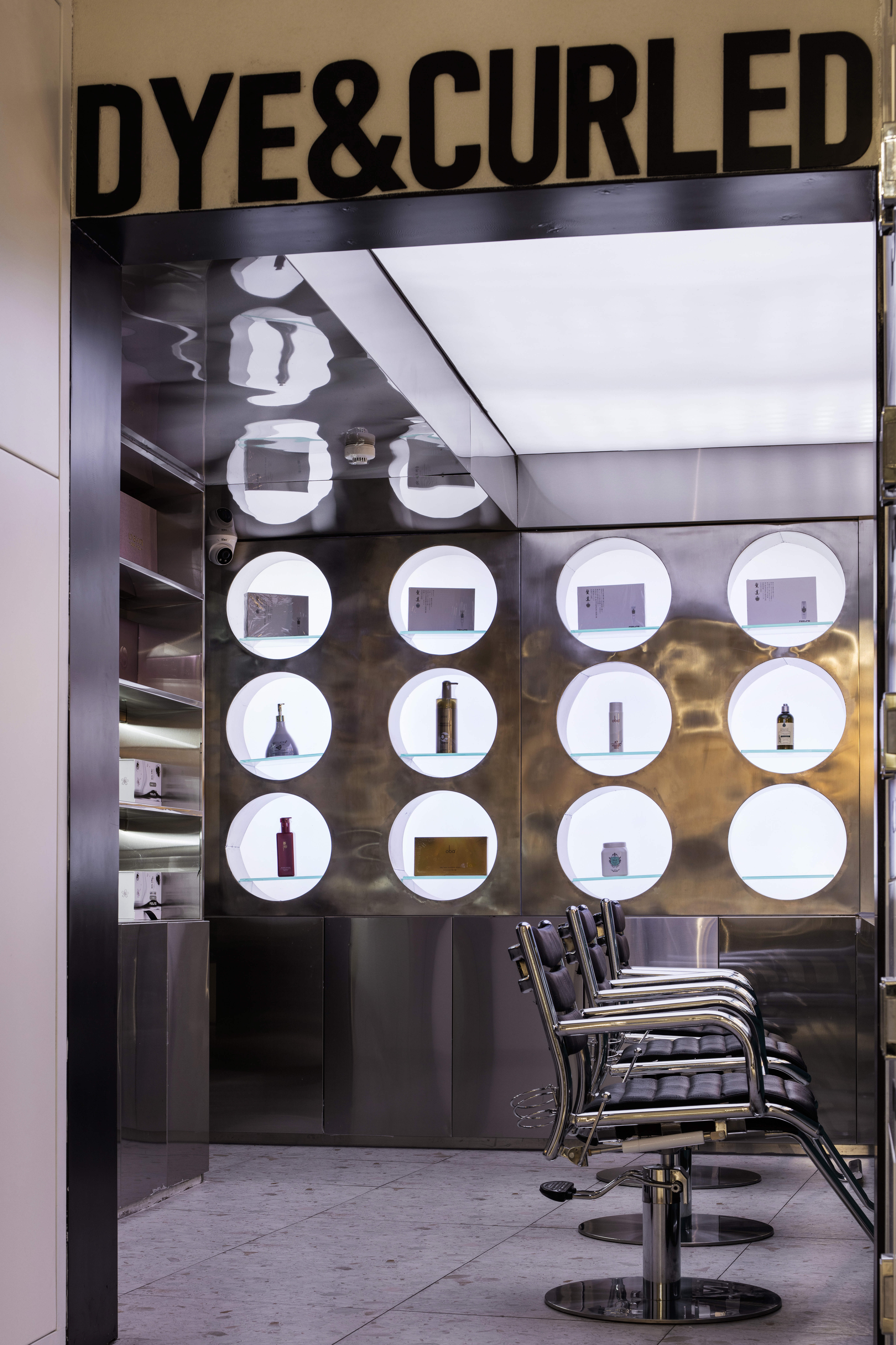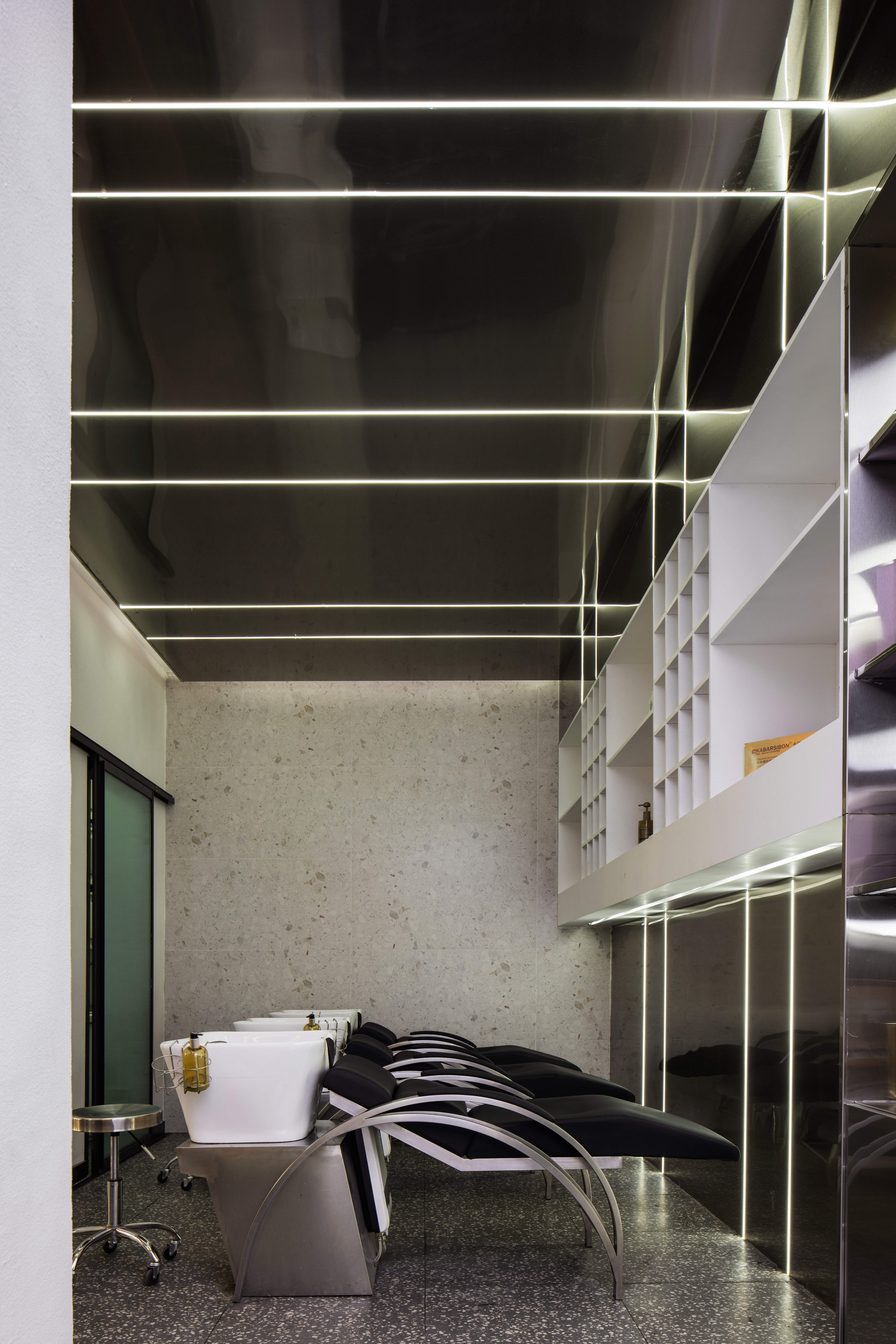 空间布局:在空间功能划分上,我们把剪发和烫染的位置区分开,做了两个独立的空间使用。这样每个工作位的操作距离就能更好的控制,从而在可以最大程度上增加剪烫工位。同时,相对封闭的烫染区域,也让后期顾客在里面可以有更加安静舒适的体验感受。