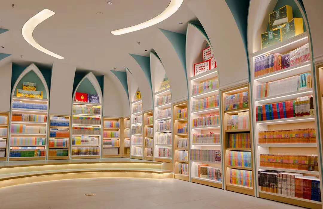 风帆造型的书架,油画般的色彩和灯光设计,让空间美轮美奂,仿佛误入精灵的世界。