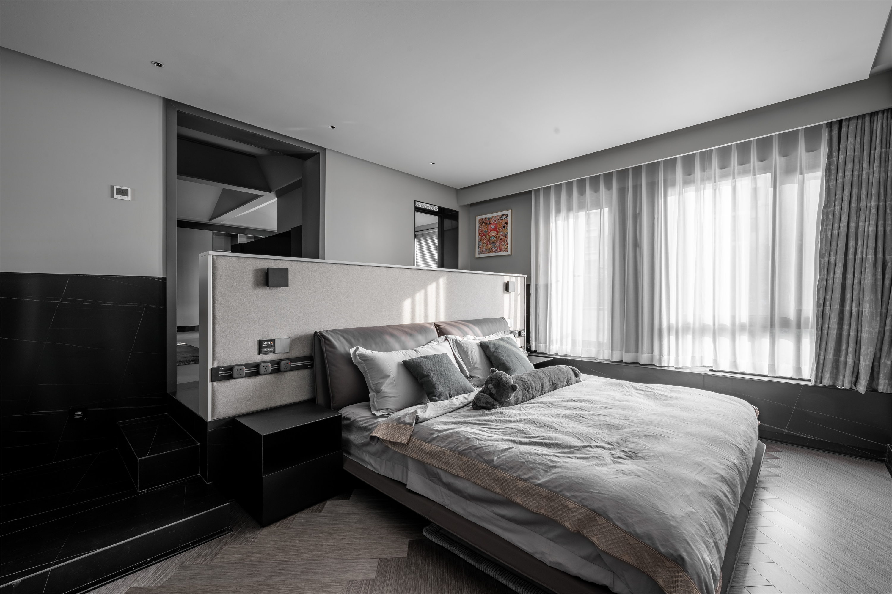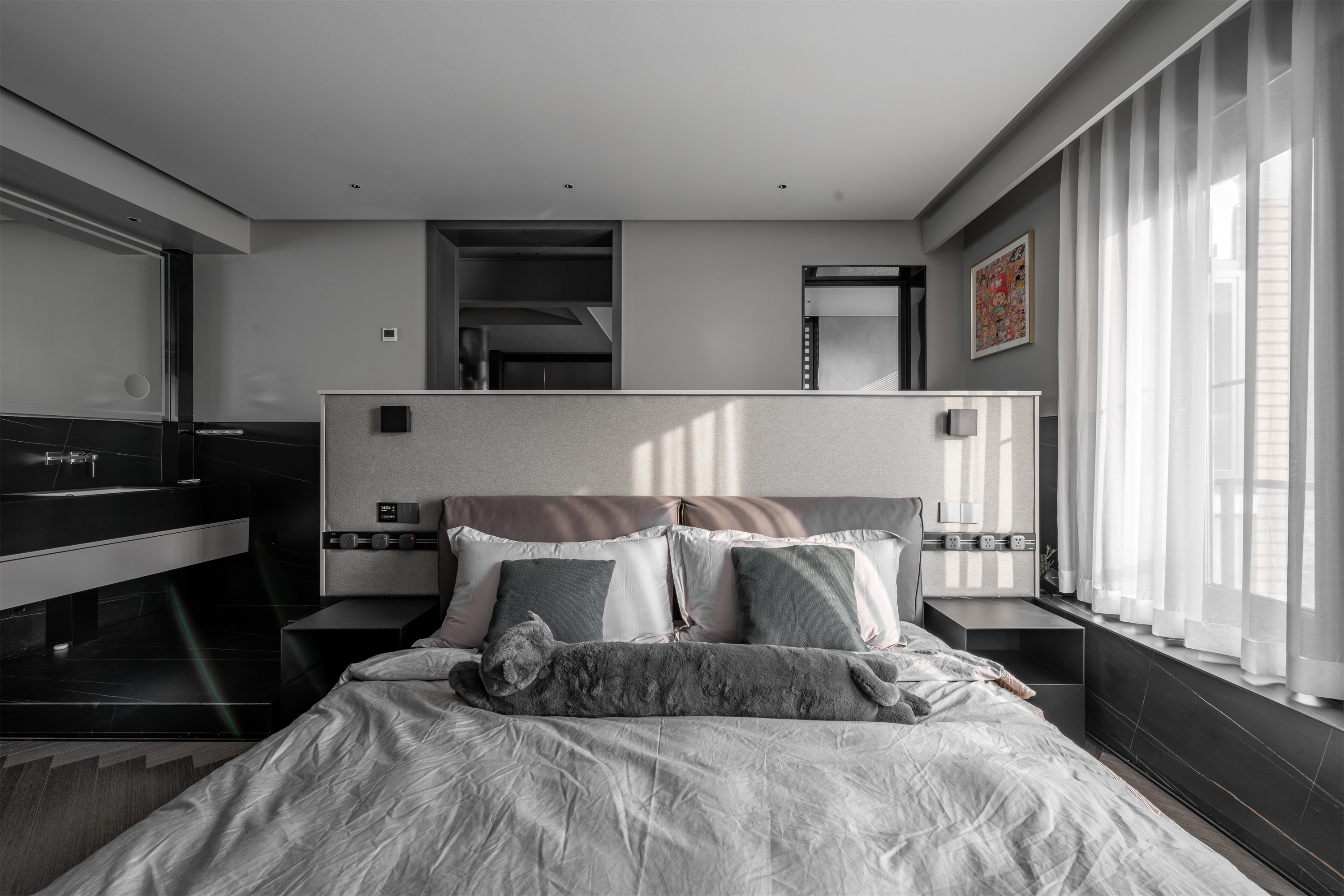作为一套私宅设计家的味道浓于一切,我们可以用黑色承载工作的疲惫,用灰色模糊彼此的迥异,用白色净化生活的是是非非。有男主对于建筑的偏爱,同样亦有女主沐浴阳光的惬意。同样是家的样子,不同是这里只属于他们不接受其他。