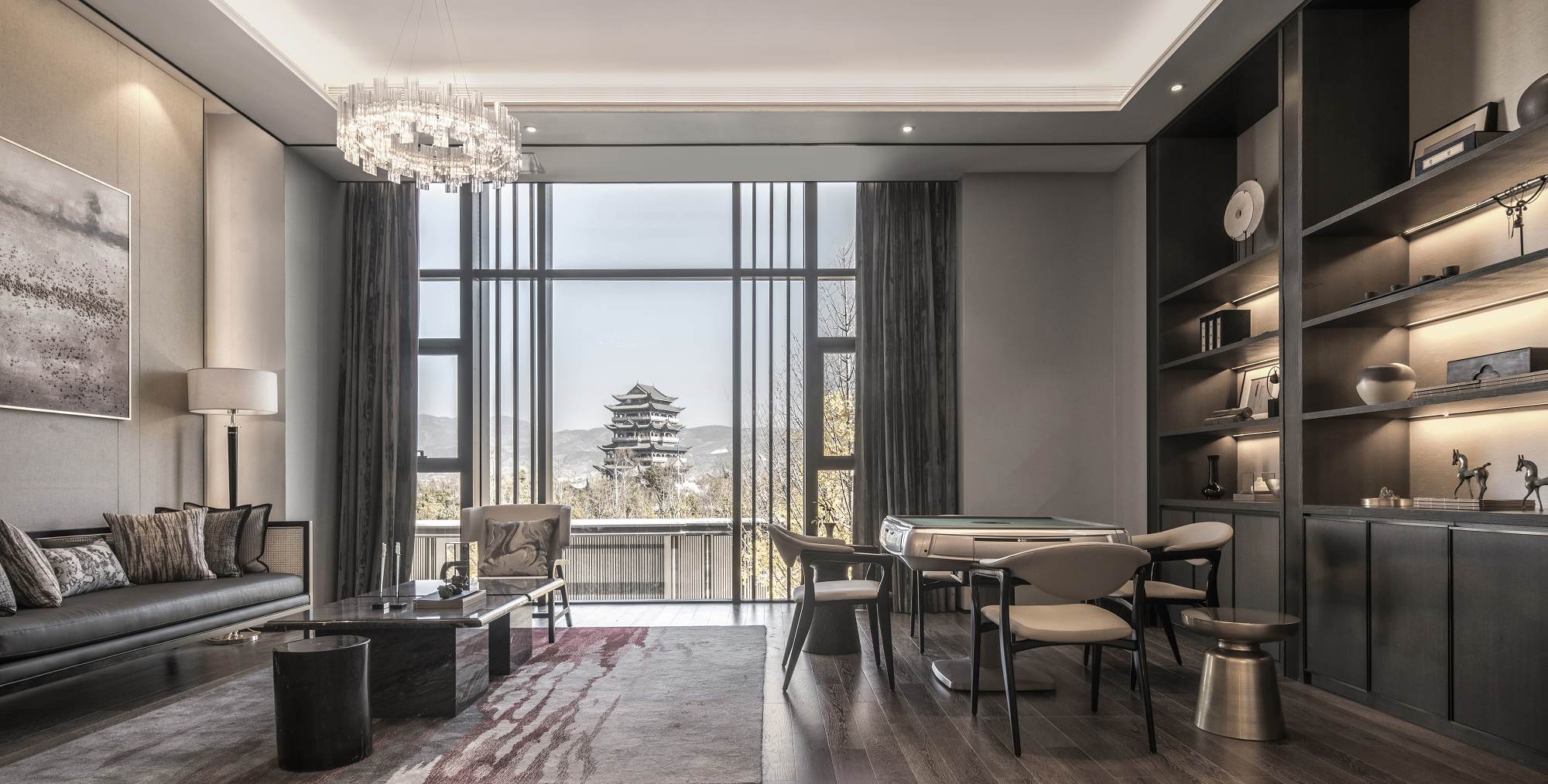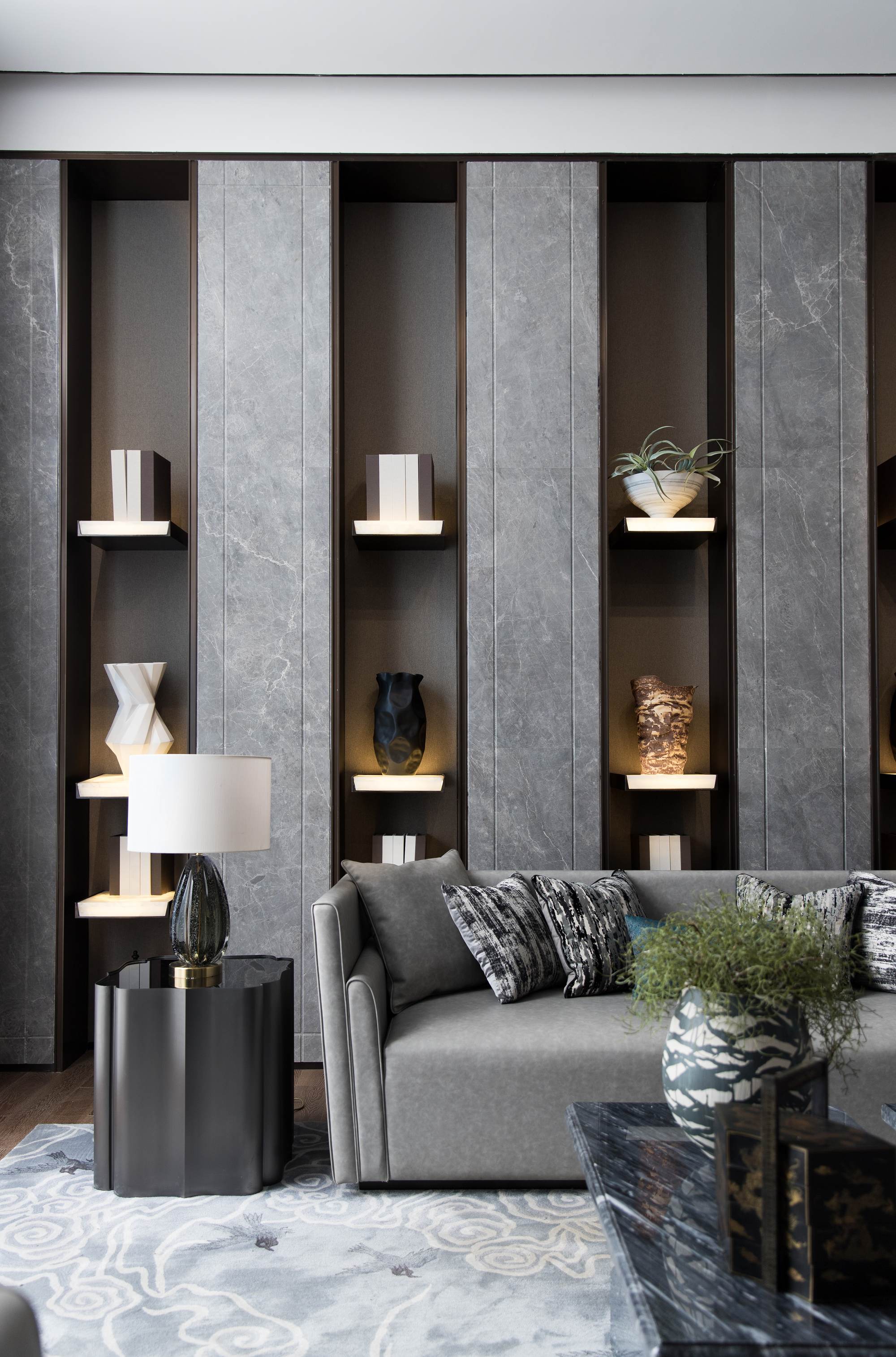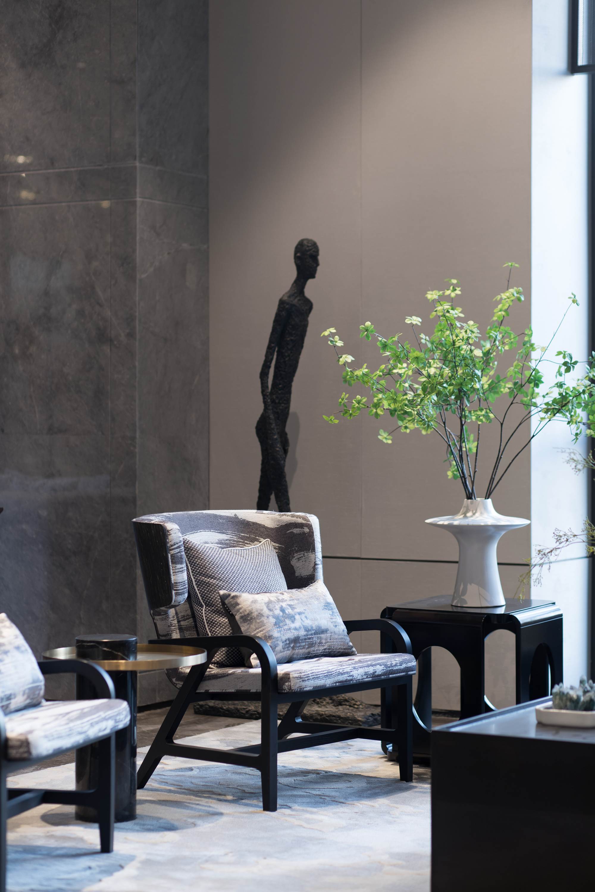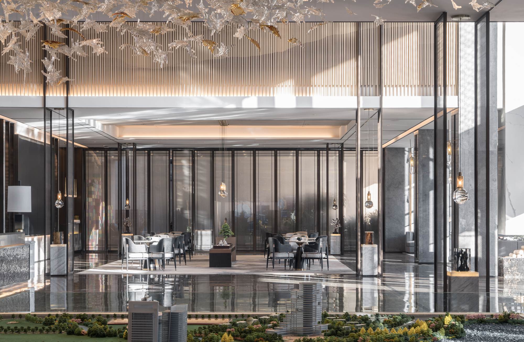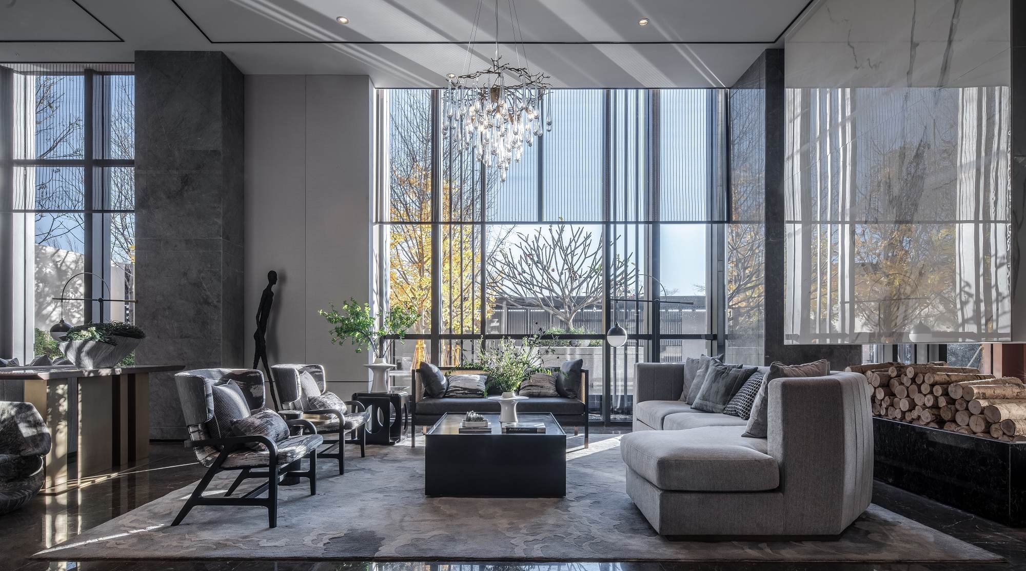 项目定位:假如说,居室是温馨舒适的,那营销空间必定是略带烟火气的高亢明亮。空间中大面积施以中性色铺开,微暗的灯光、静谧的高级灰、沉稳的翡翠绿、质感十足的金属色泽。也正是呼应了东方气韵上的讲究。