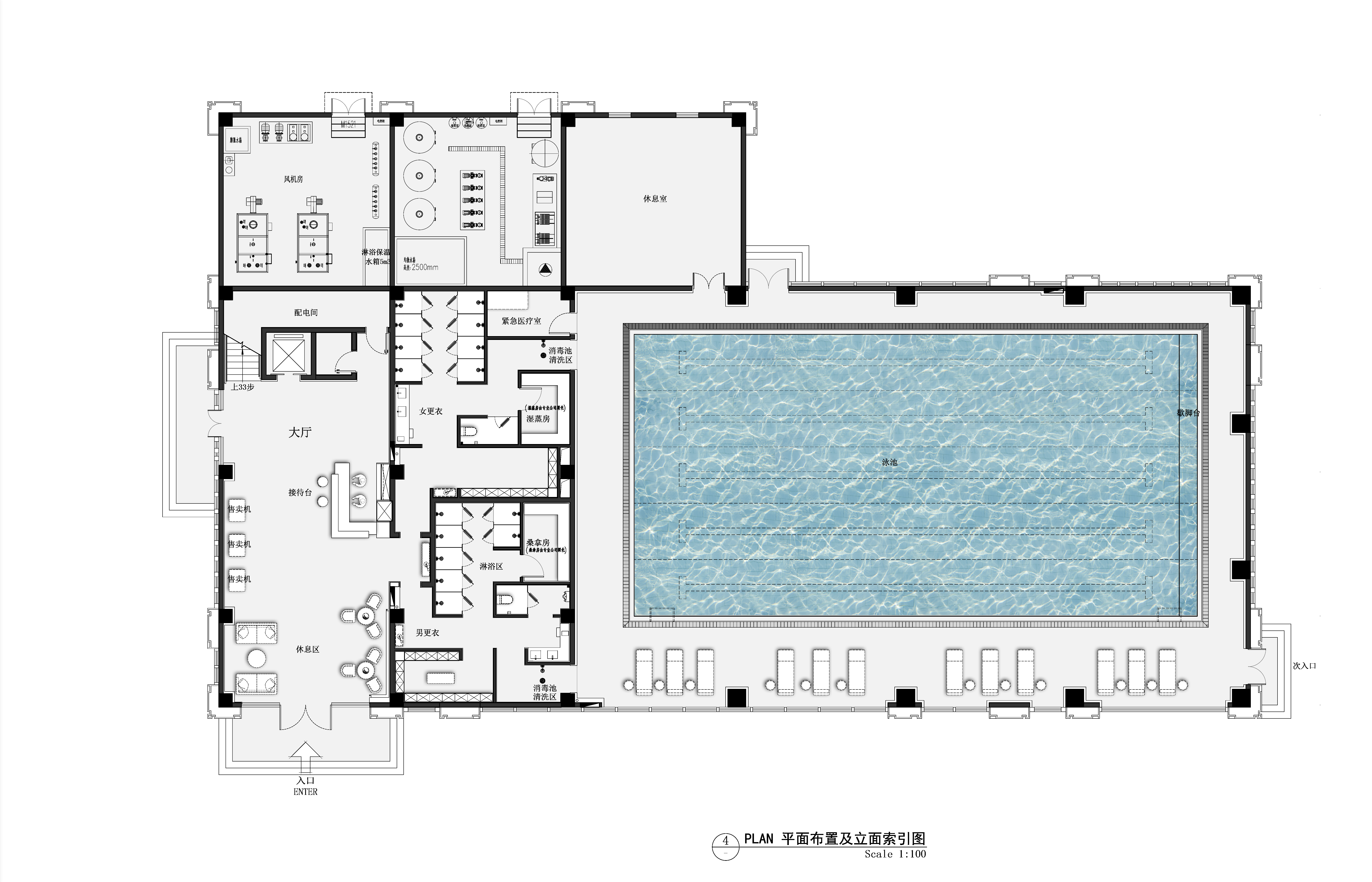 设计选材:大理石、木饰面、夹丝玻璃、金属板。