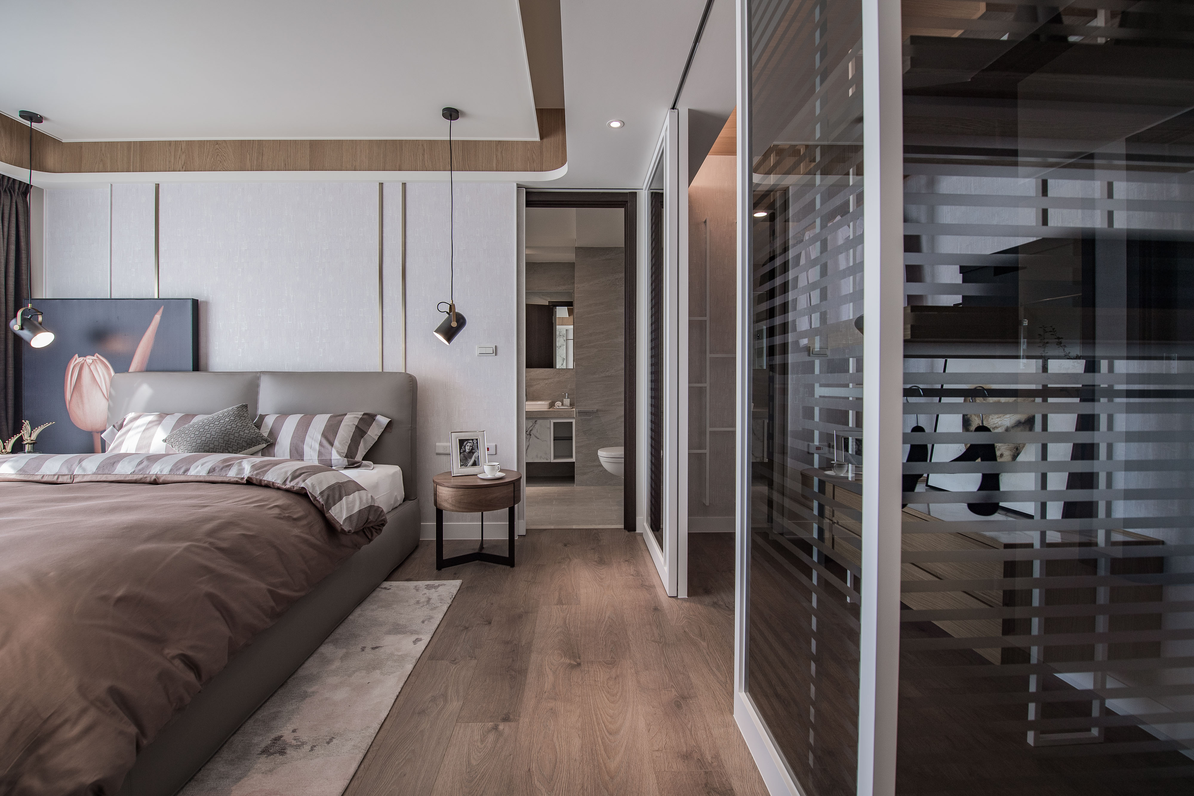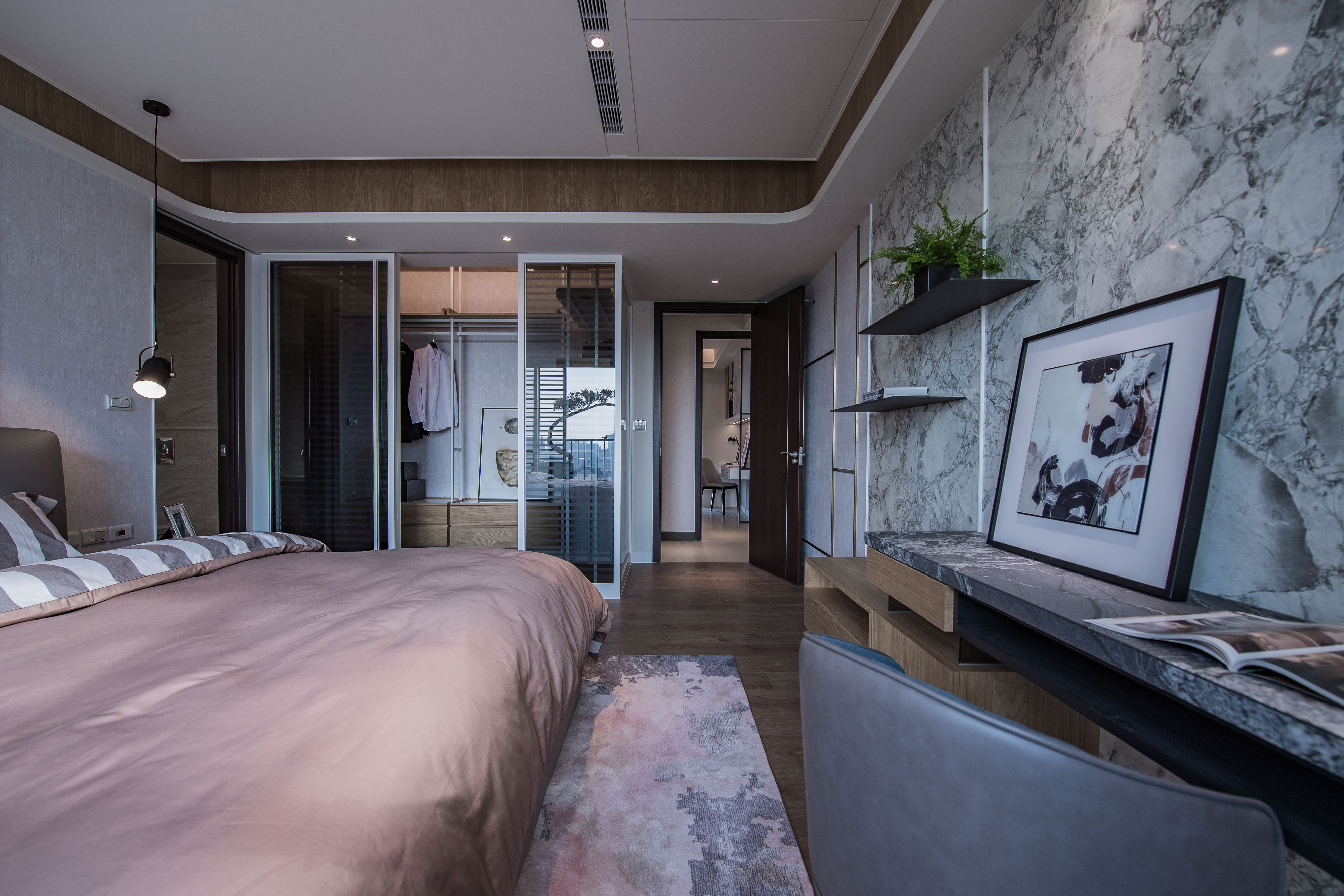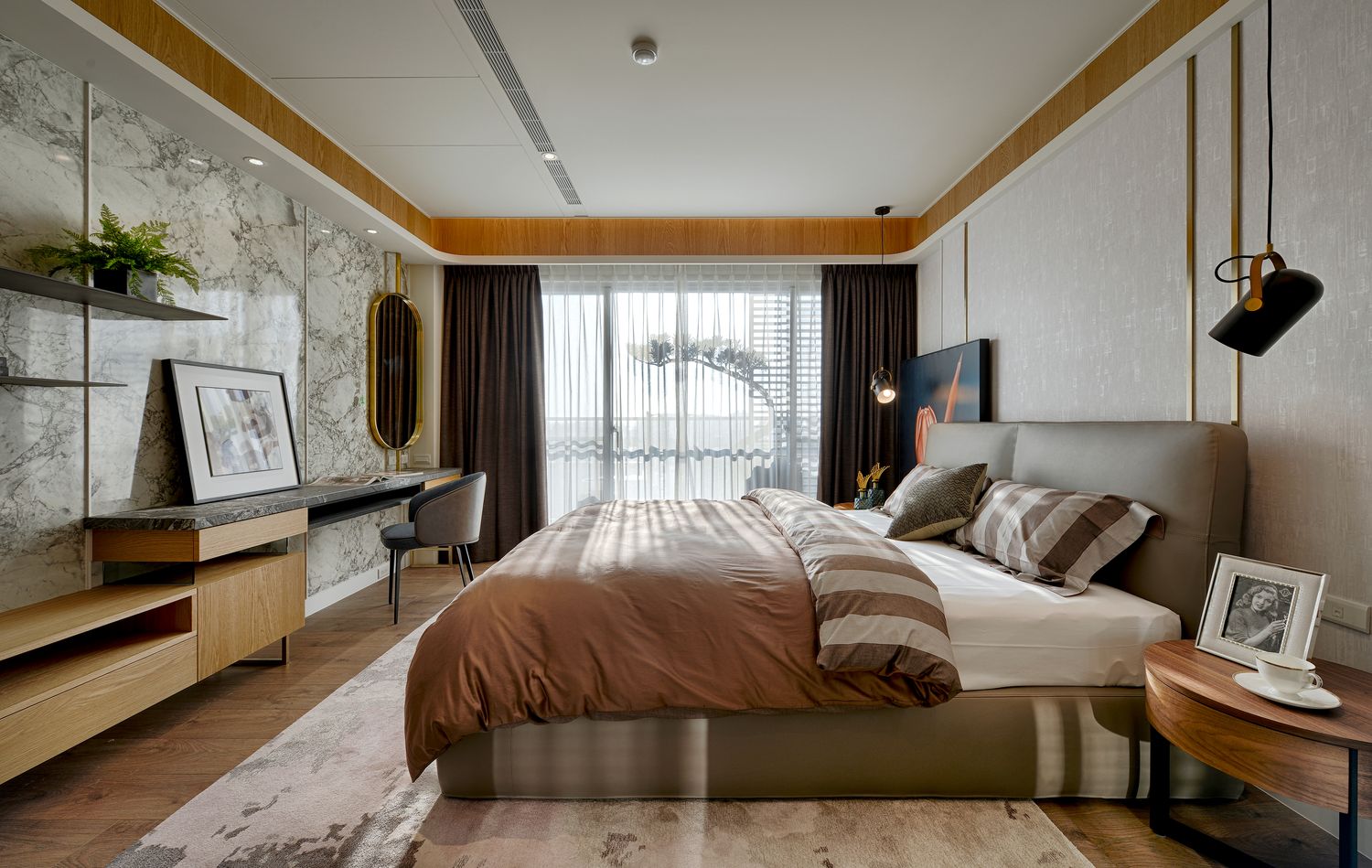 主臥在輕奢感中注入自然圓潤元素。