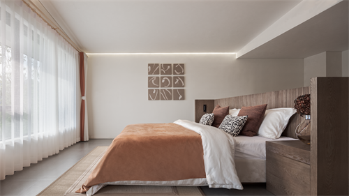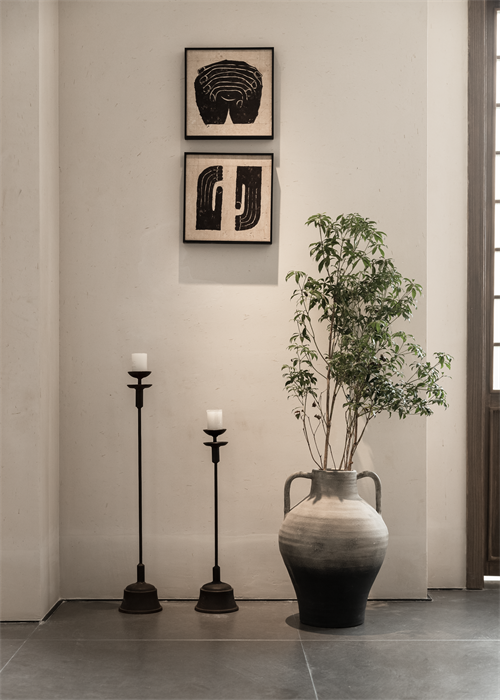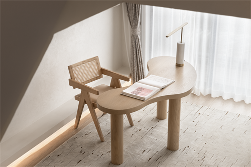 整体空间表达出一种野趣意味,辅以大地色系的软装叠搭,充斥着“落日余晖”,“空山新雨后,天气晚来秋”的无尽诗意。