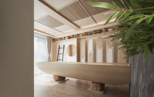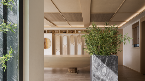竹元素贯穿于整个空间动线之中,它的形体、纹理、气味、触感,随着空间自然而然的改变、生长,以另一种形式与生活共生共息。