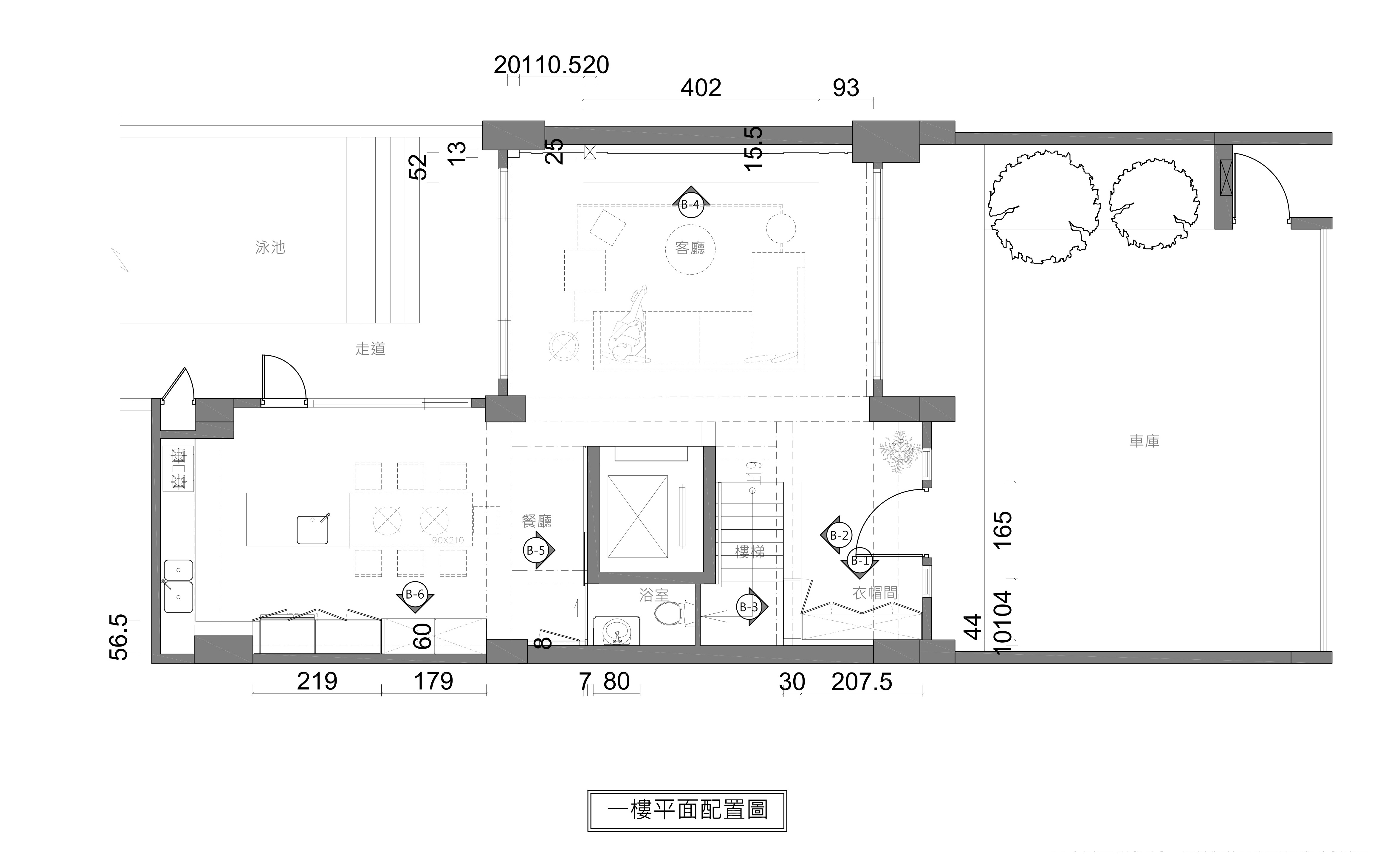 空间布局:一角一景,一物一用,室與室之間的過門與轉折,獨立與連貫,皆朝著創造一個得以宜物情,宜人性的住家空間為訴求。客、餐廳界臨水域,自然光感,讓室內的色度,可以清晰、溫潤而不顯沉厚。臥房皆臨陽台,輕重質量隨著光譜演繹,靜謐中活潑生動。