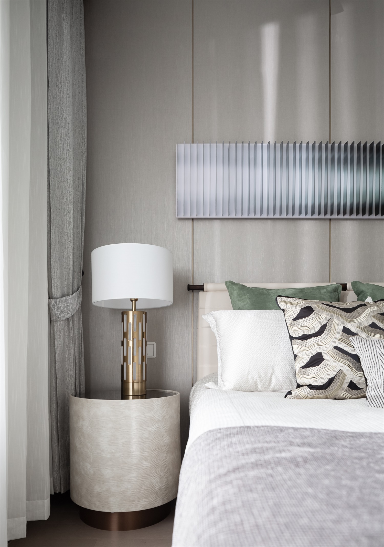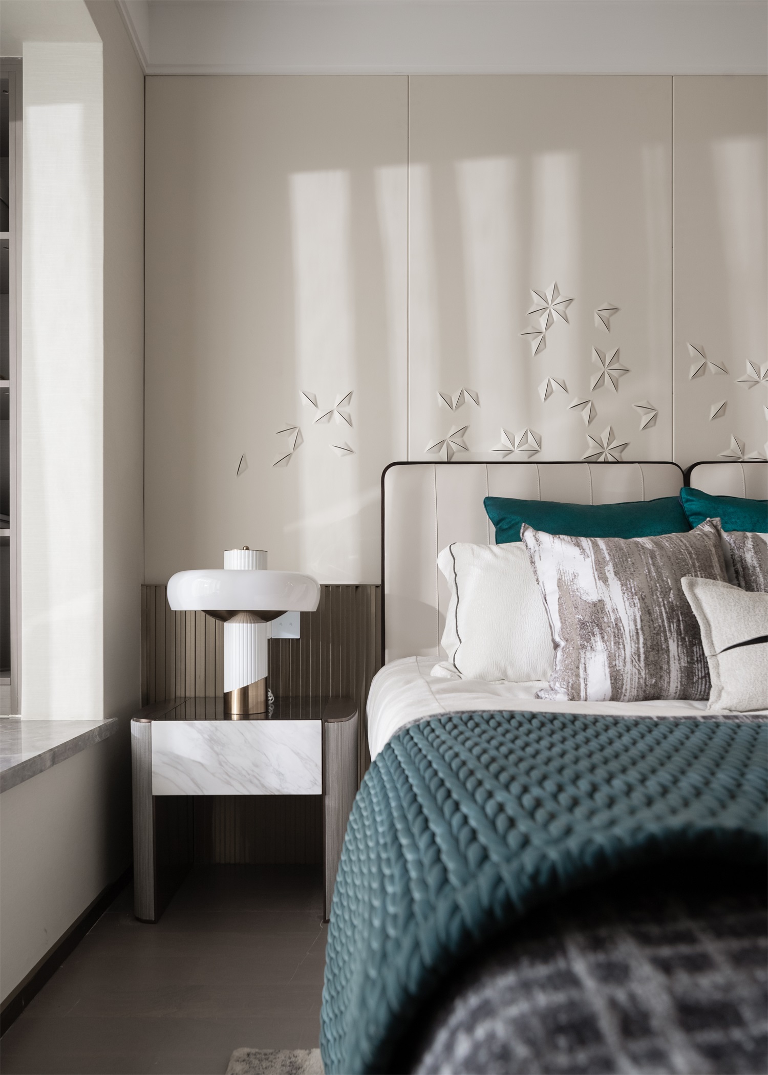 一缕缕阳光透过窗户洒入老人房,营造出空间的松弛感。家具和饰品的摆设恰到好处,精致而优雅,营造出沉稳内敛的场域,安抚了从身到心的浮躁与疲惫。