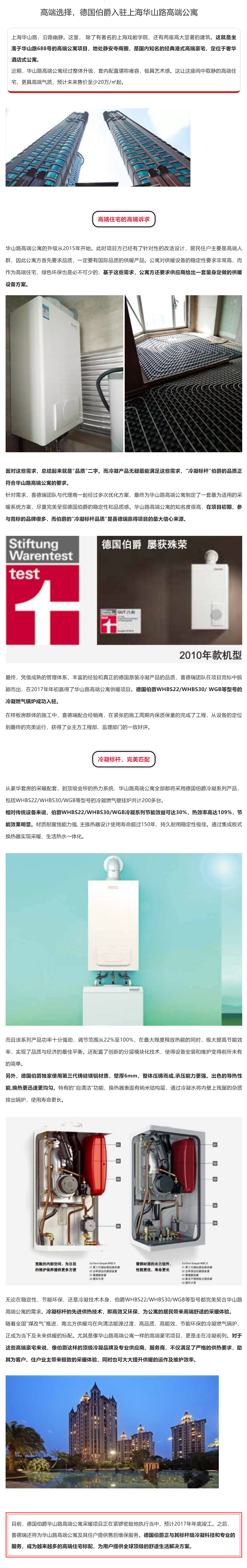 无论在稳定性、节能环保、还是冷凝技术本身,伯爵WHBS22/WHBS30/WGB等型号都完美契合华山路高端公寓的需求。冷凝标杆的先进供热技术,即高效又环保,为公寓的居民带来高端舒适的采暖体验。