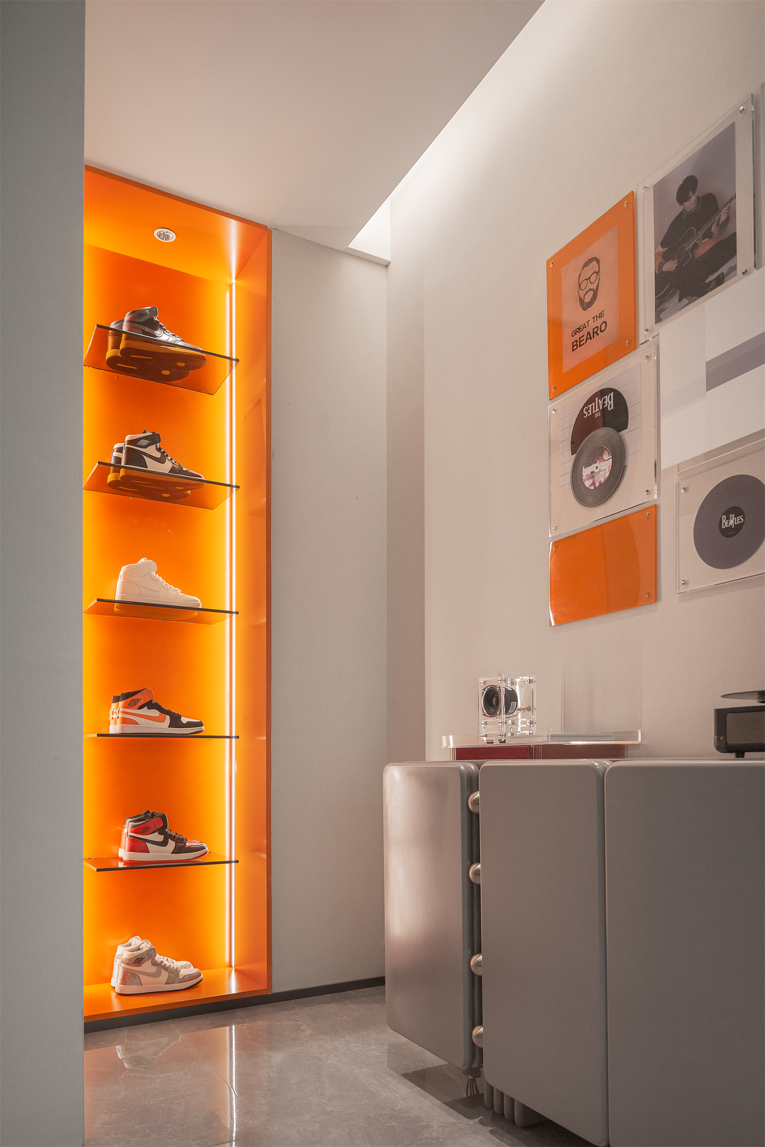 入户是从外界进入到环境的过渡区,入口右侧的3D背景墙面迅速抓住人们的眼球,给人耳目一新的惊喜,让空间增添了十足动感,为Robot主题做好铺垫。