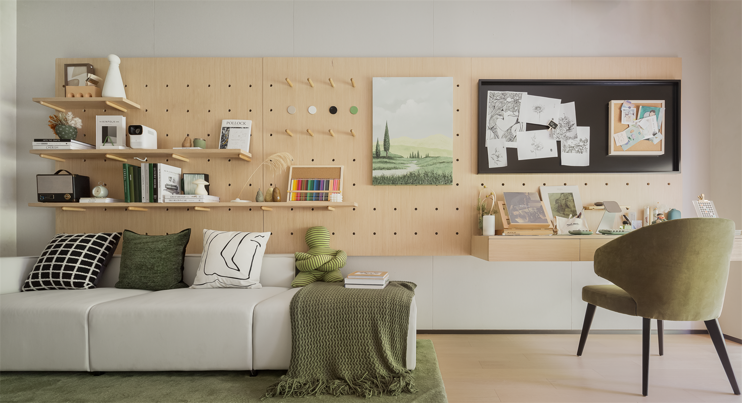 灵活多变的洞洞板,容纳居者的所有爱好和灵感,让每个角落皆趣闻横生。