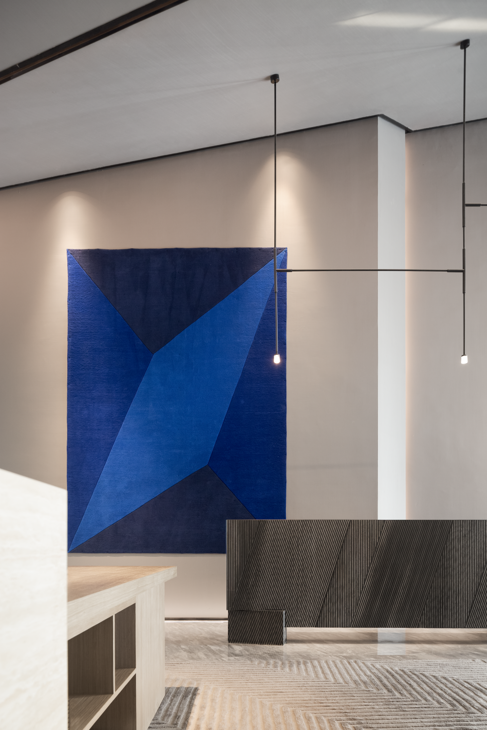 大客户接待区在软装上以品质为主,整个场景传递潮流和精致氛围。开阔的布局,流畅的线条,沉稳的色调,让简雅的内敛气质俨然而生。