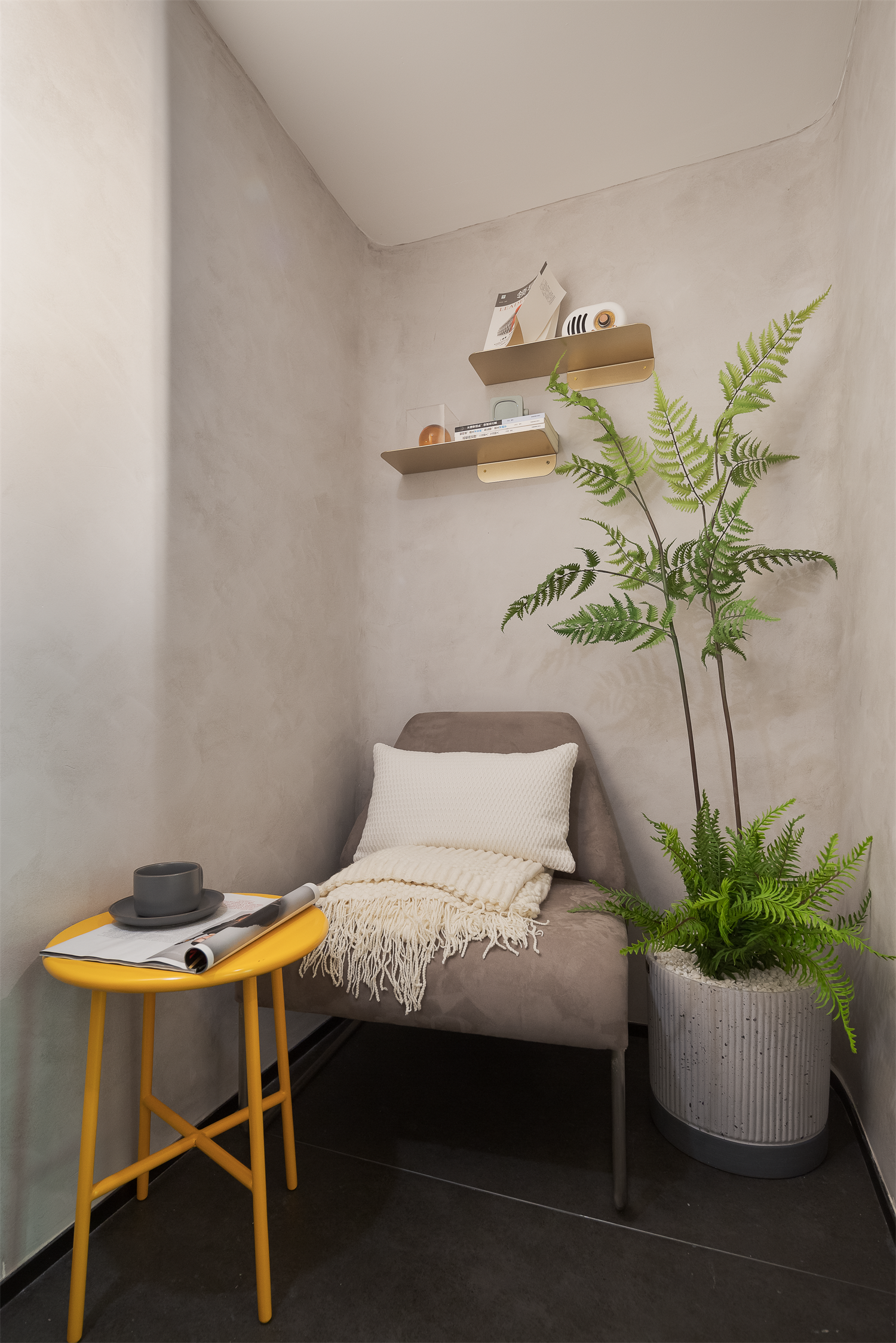迷你树洞区以微水泥打造一隅轻松之地,是工作之余的加油站。
