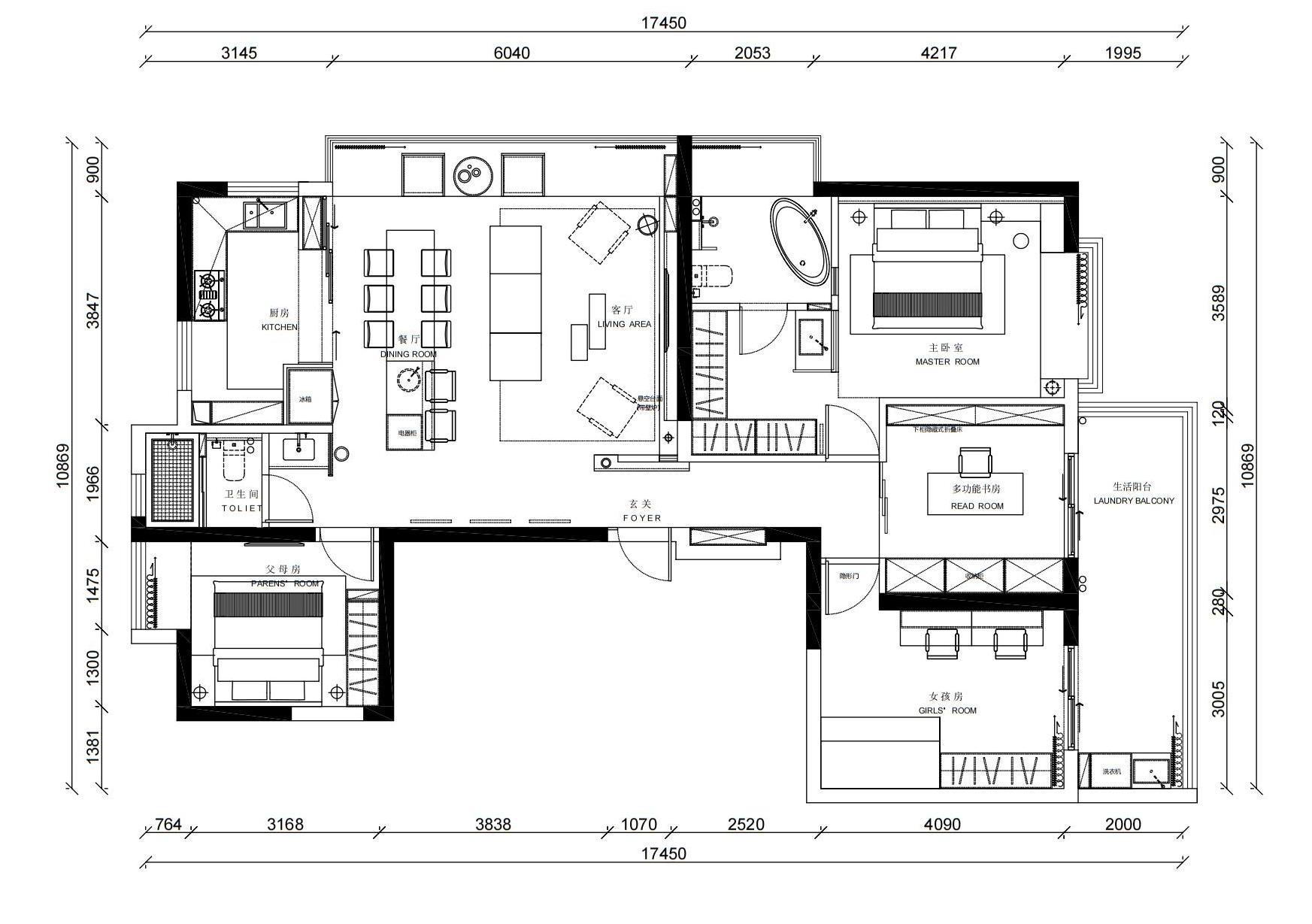 空间布局:此户型有些特色,客餐厅在一入门 同时有贯穿客餐厅的观景飘窗,南阳台在书房尽头,连通儿童房,空间尽可能优化了主动线, 书房成为静区中心,同时双面为移门 打开阳台与客餐厅的视觉景深,日常使用也更方便。老年房紧连公卫,适老化同时也更方便。