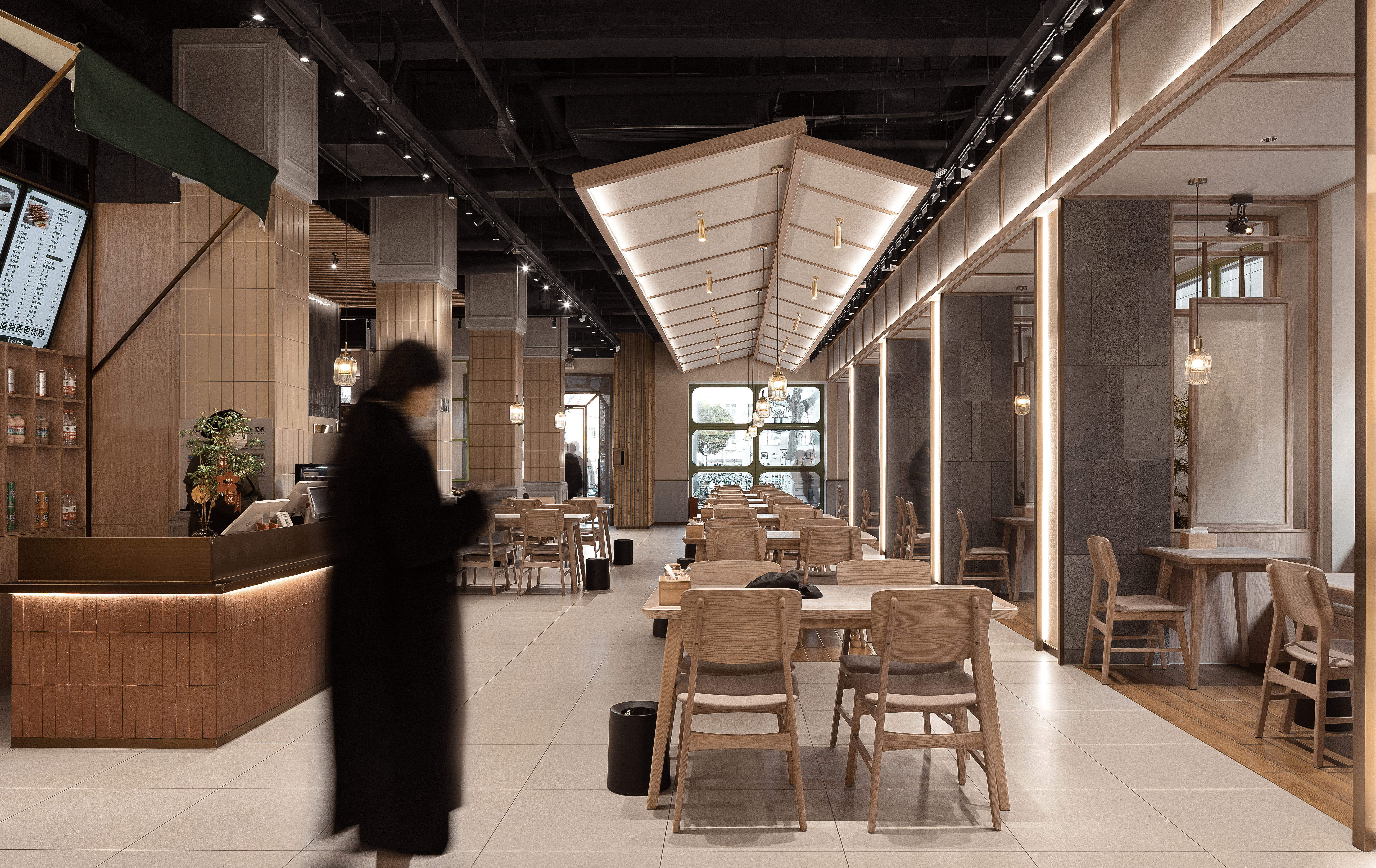 空间布局:空间主体以绿色、木色、灰色为主色调。宋代美感追求风雅,整个空间便是宋式美学元素与当代空间艺术的融合,将隐匿于世的风雅穿越时空,绽放于当下。