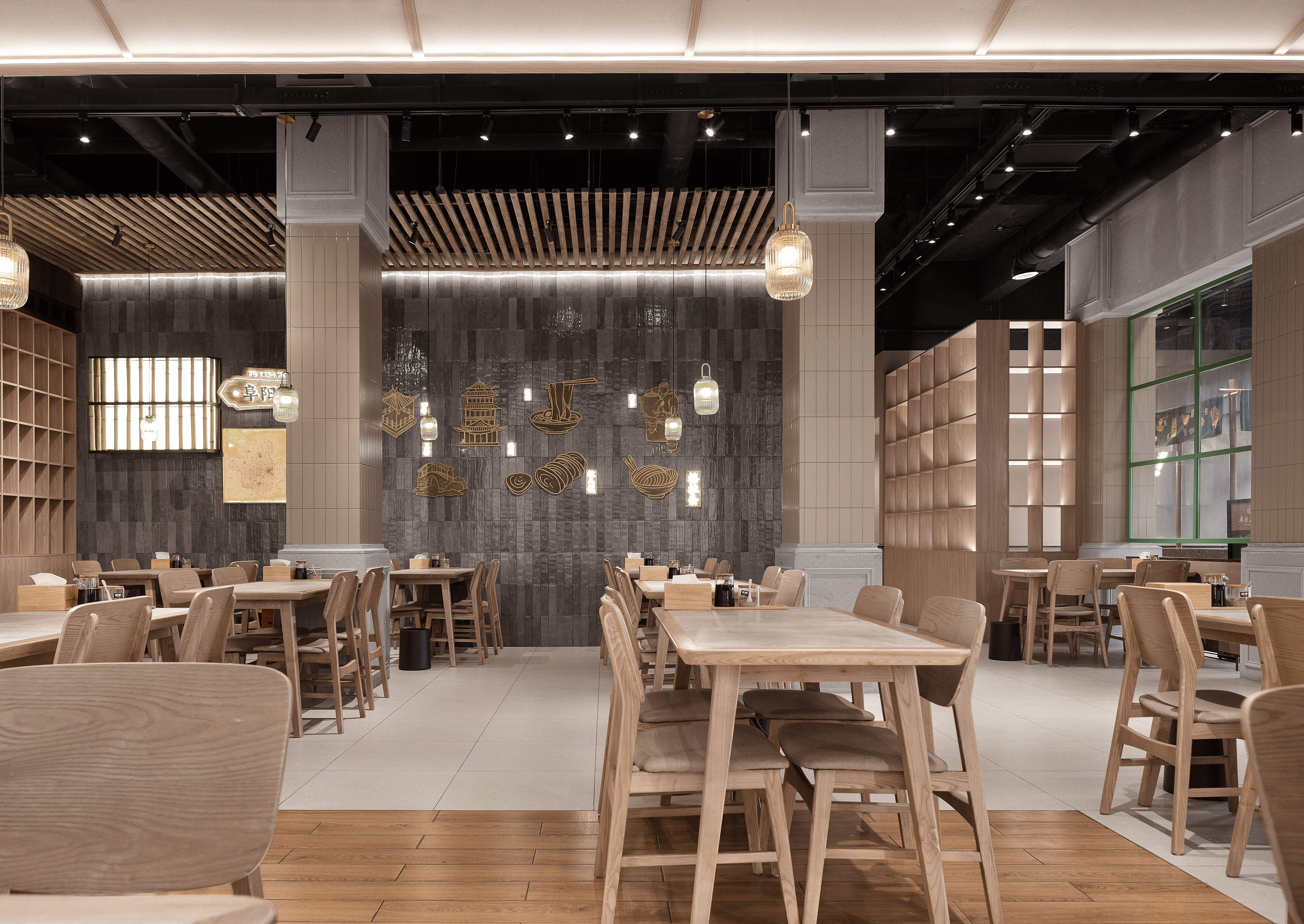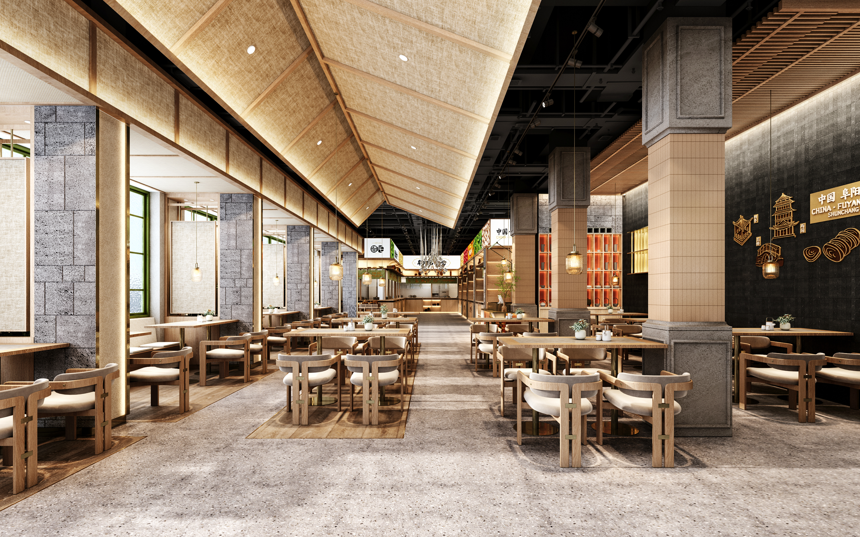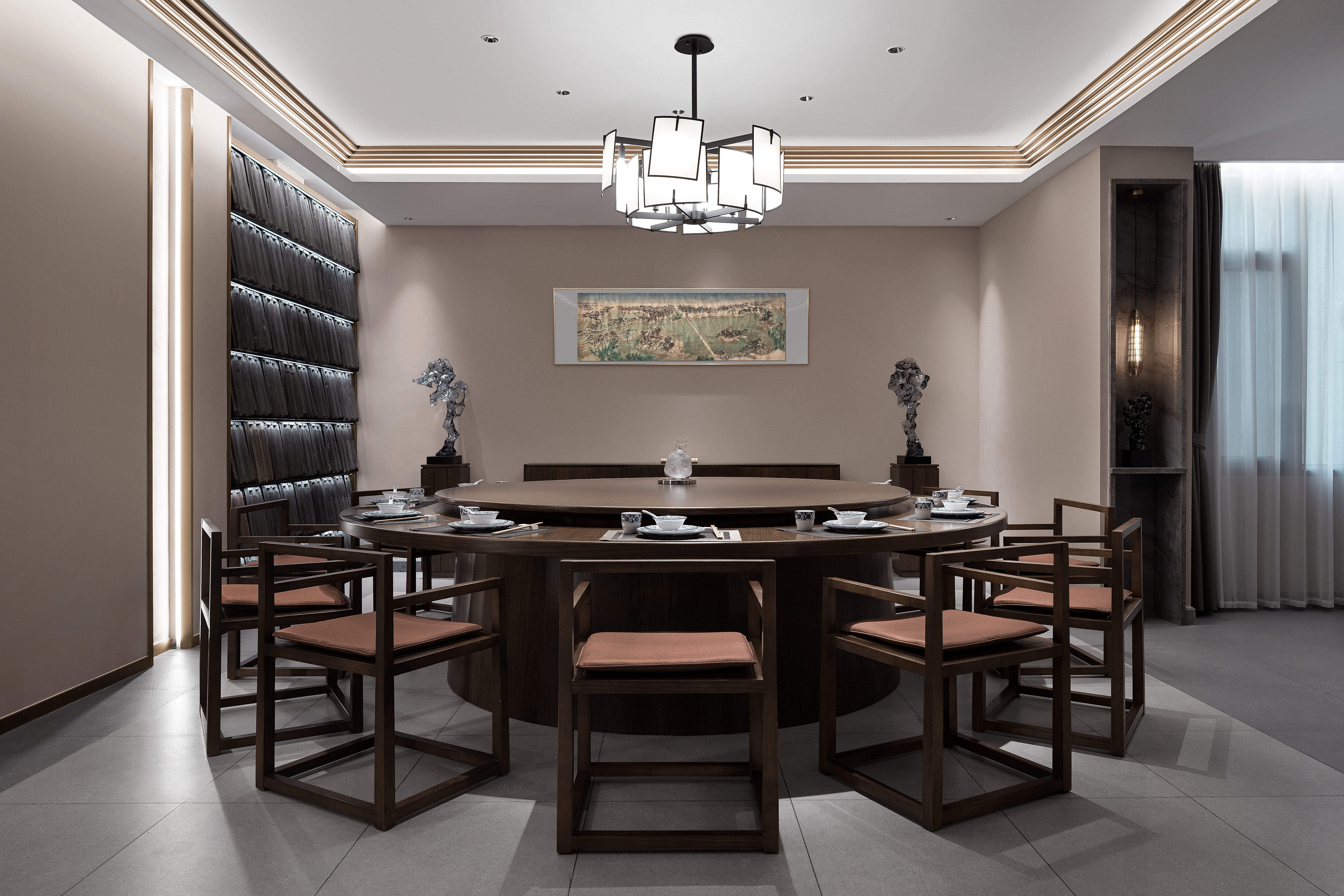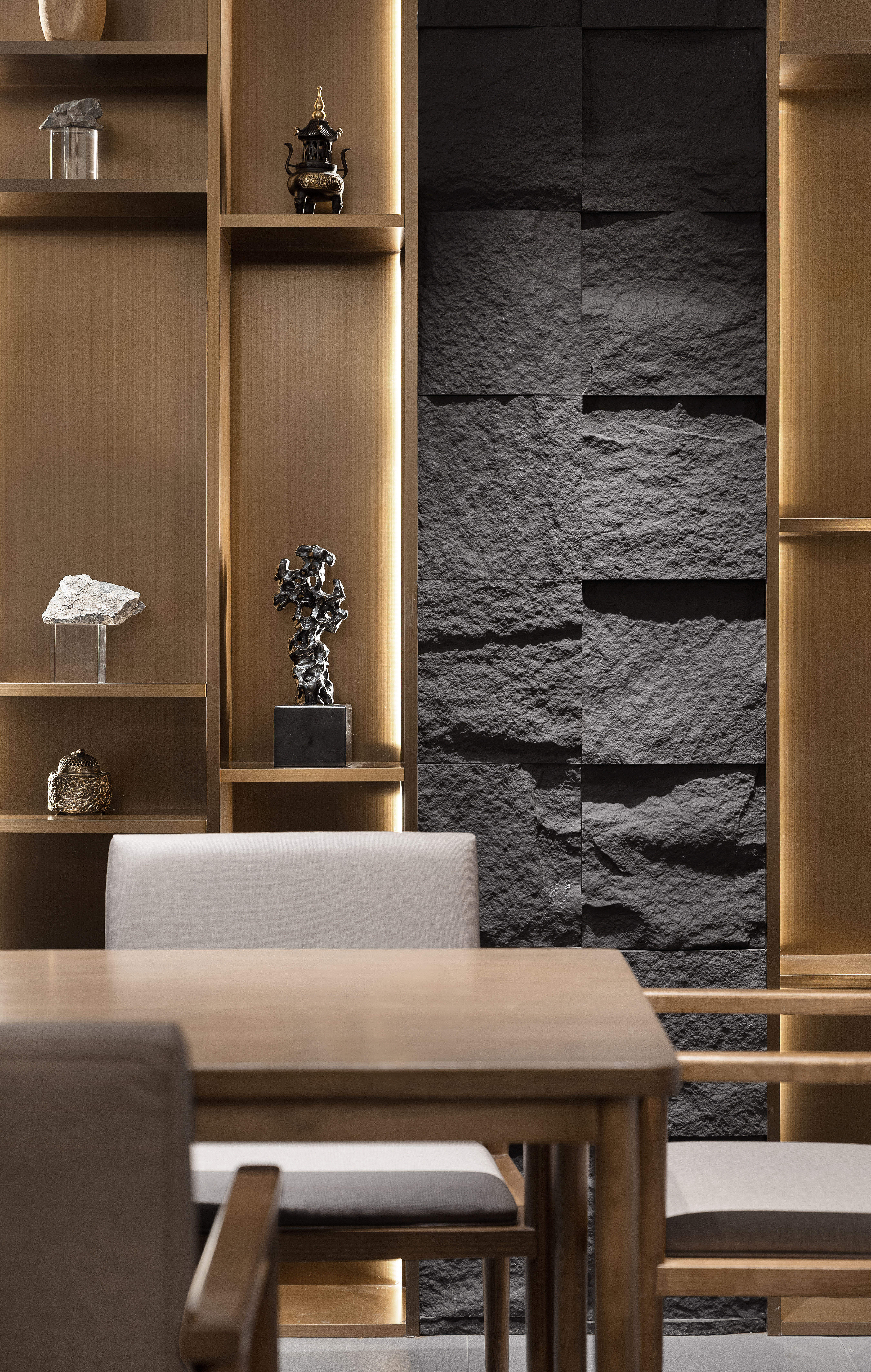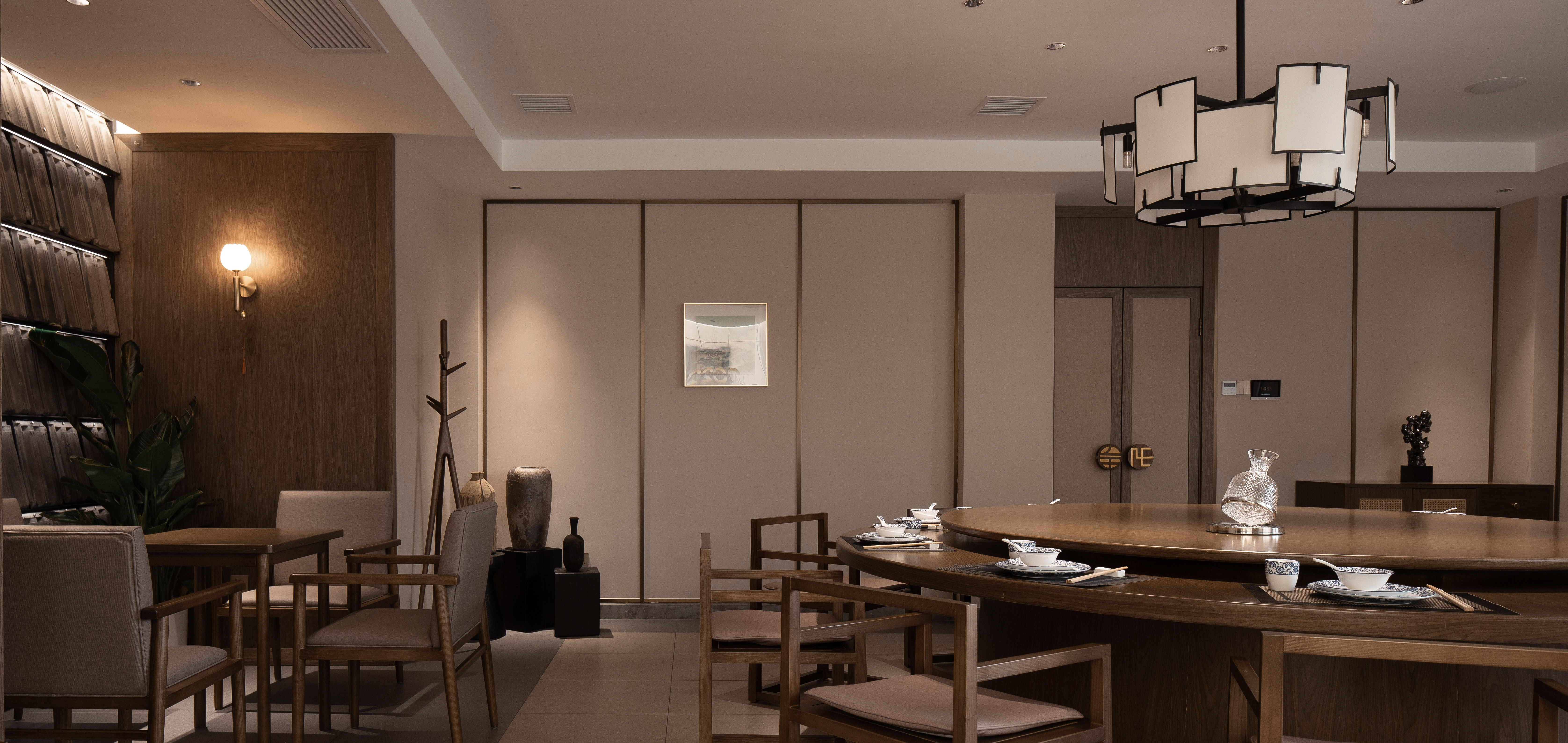项目定位:”一口吃出阜阳味“ 特色地方餐饮除了有味道的传承也要有文化的传递,文化传递需心领神会。本案以东方传统文化古韵为灵感,东方暗调宋雅美学空间,寻找美学与功能的平衡,探索器物精神下的美学创造,整个空间清新自然,典雅含蓄,没有过多的装饰,回归质朴。家具通过现代的设计手法和材料,将传统宋雅的语汇,转译为一次东方美学的现代表达。