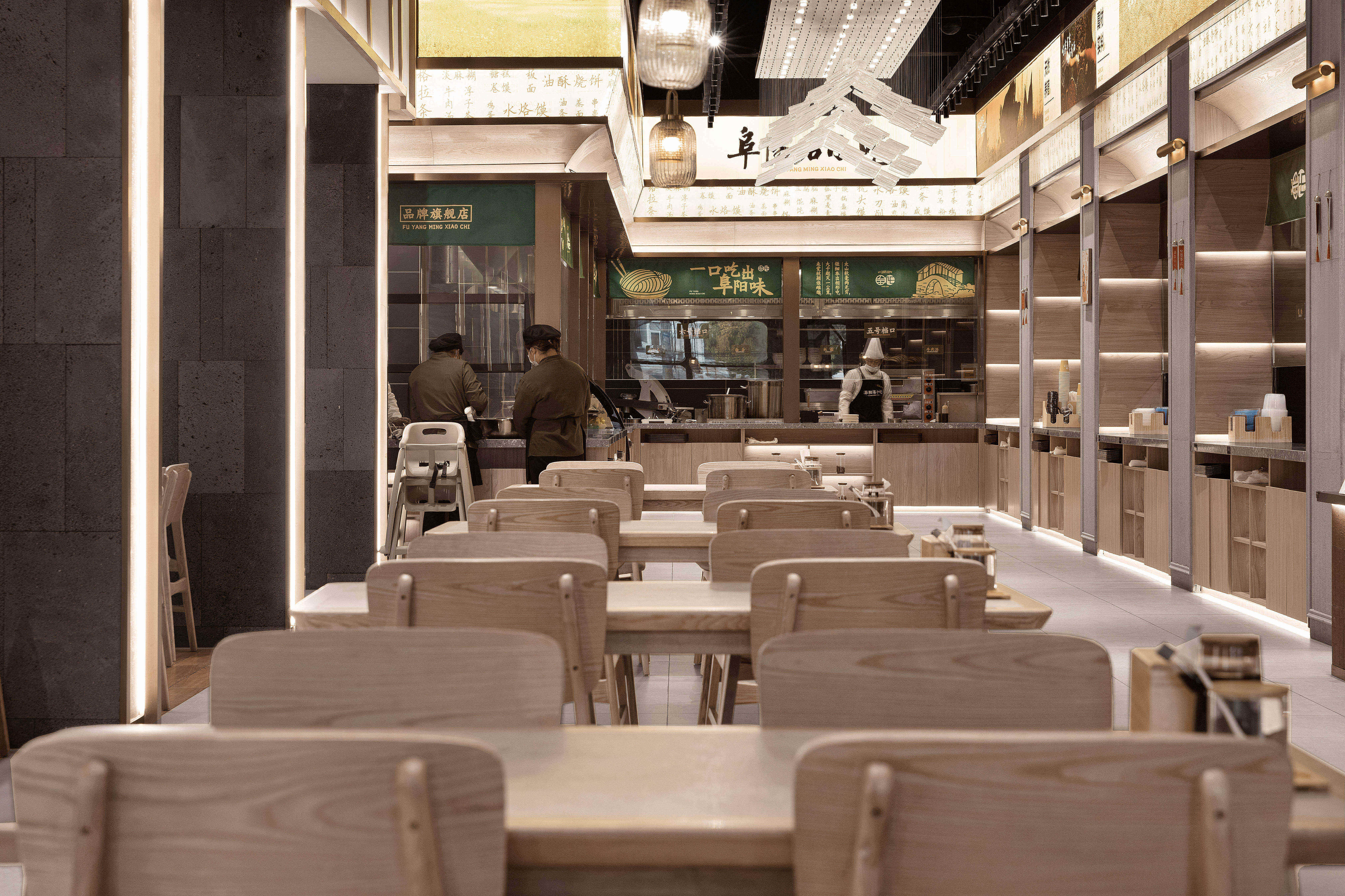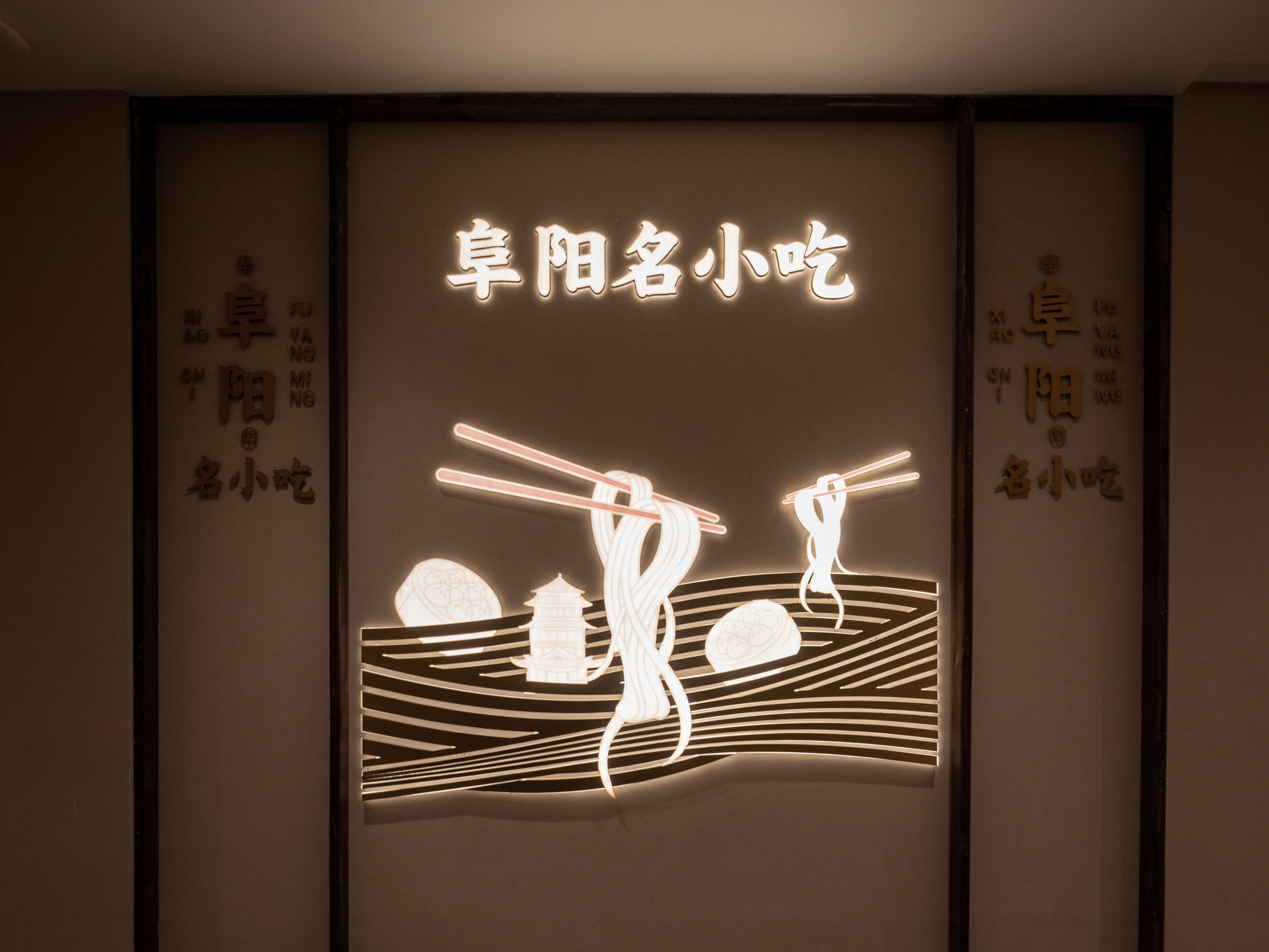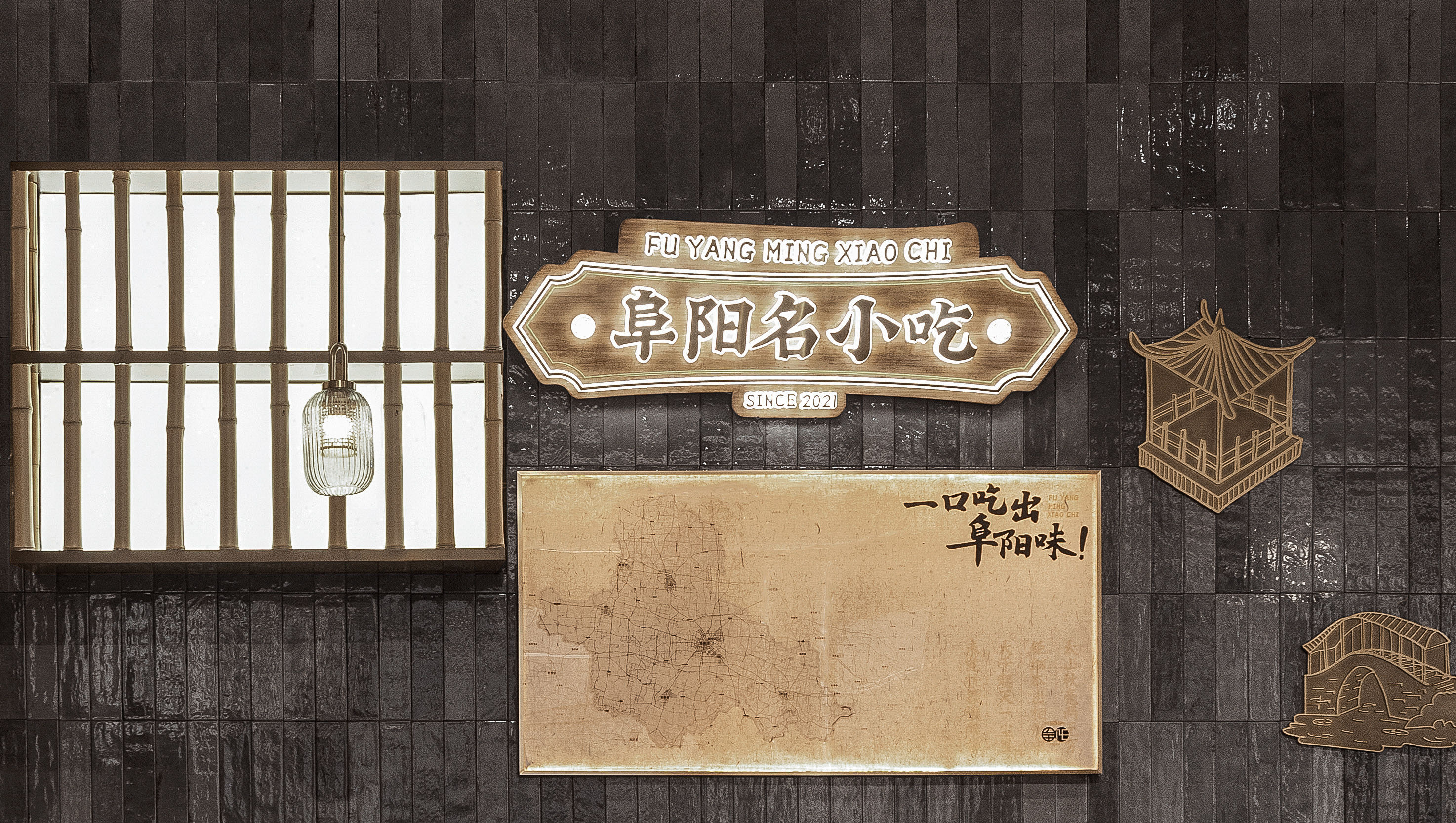 空间意境:挖掘阜阳文化元素,收集阜阳的文化特色融入店内,四亭、三桥、两阁、一面,是文化的传承,承载着人们对阜阳丰富的感情。
