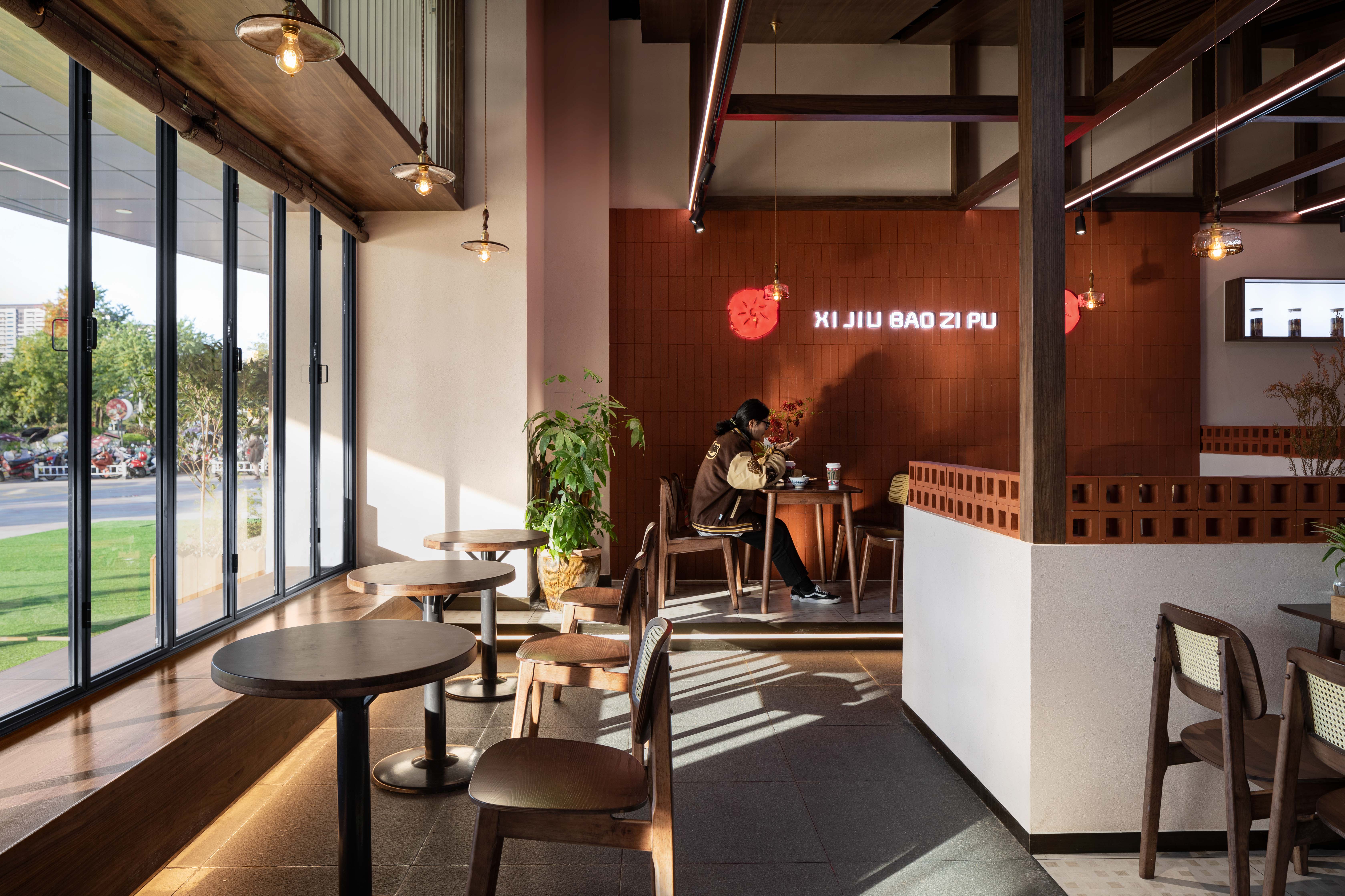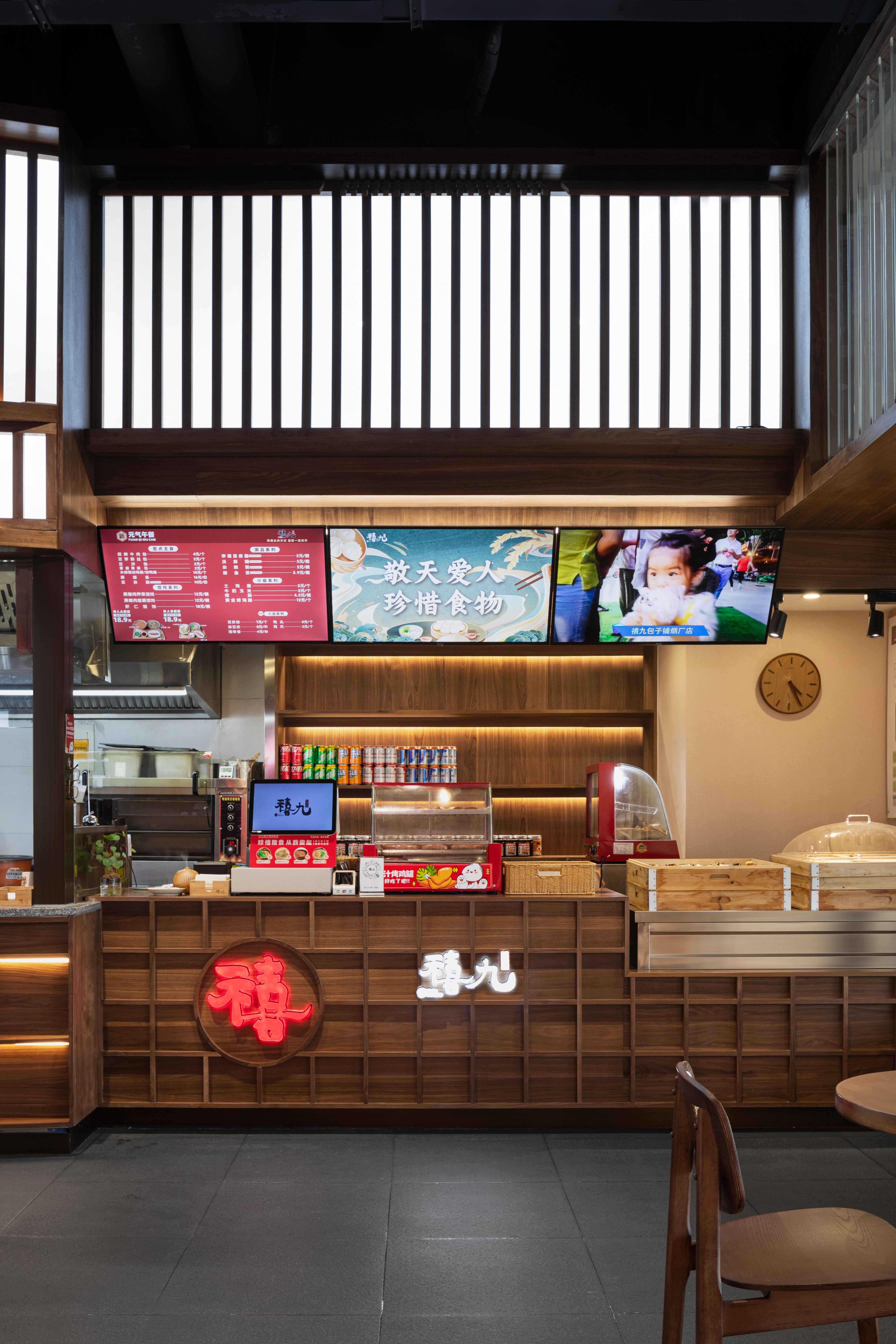本案为宋式风格的市井社区餐饮空间设计,提取阜阳的文化地域元素,融入其中,让空间形成历史沉淀感、厚重感。宋代风俗画为灵感,将繁杂的街市景象纳入统一而富有变化的设计中。店铺为包子铺, 但店铺为更有温度的空间 “健康有温度,禧九包子铺”。