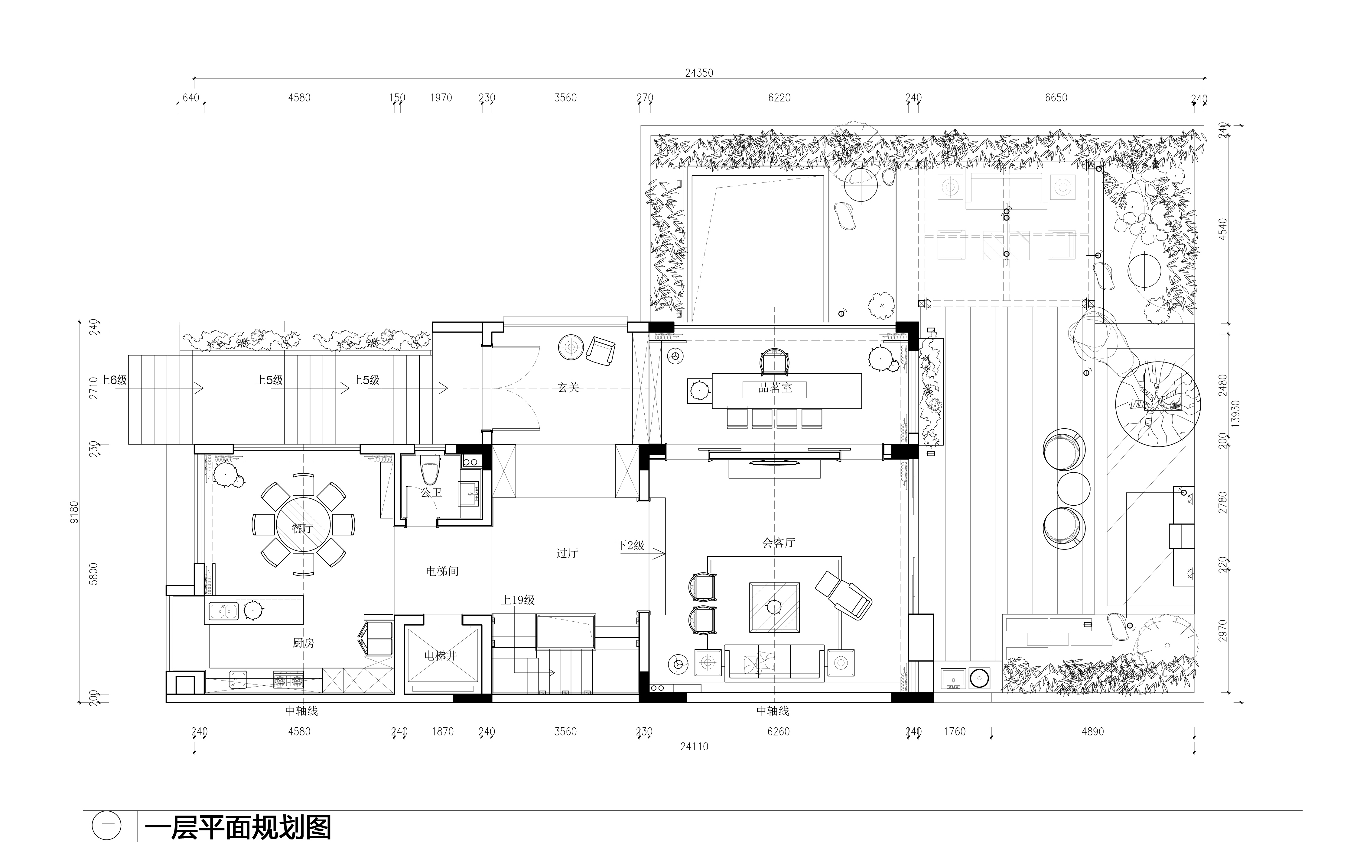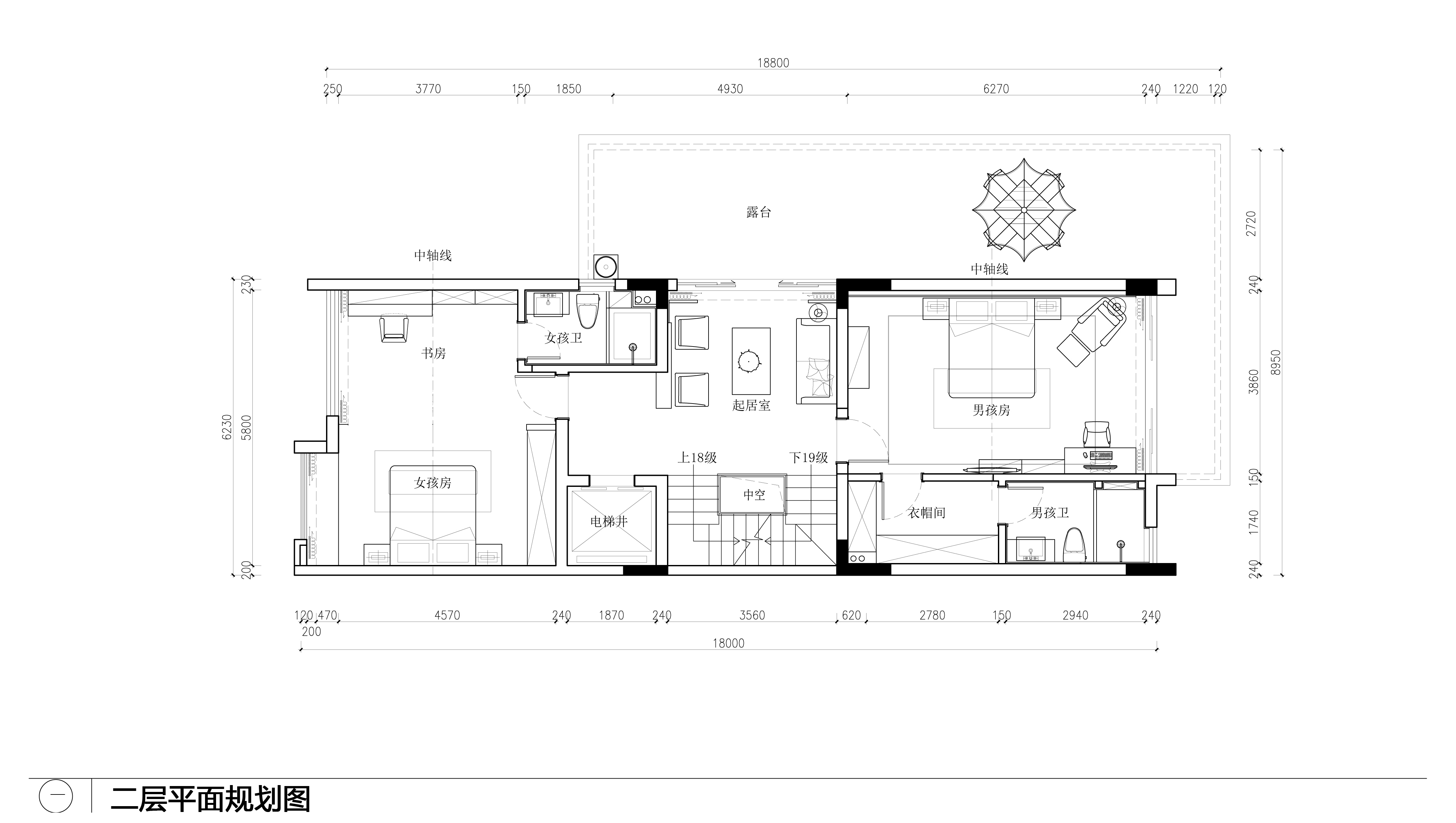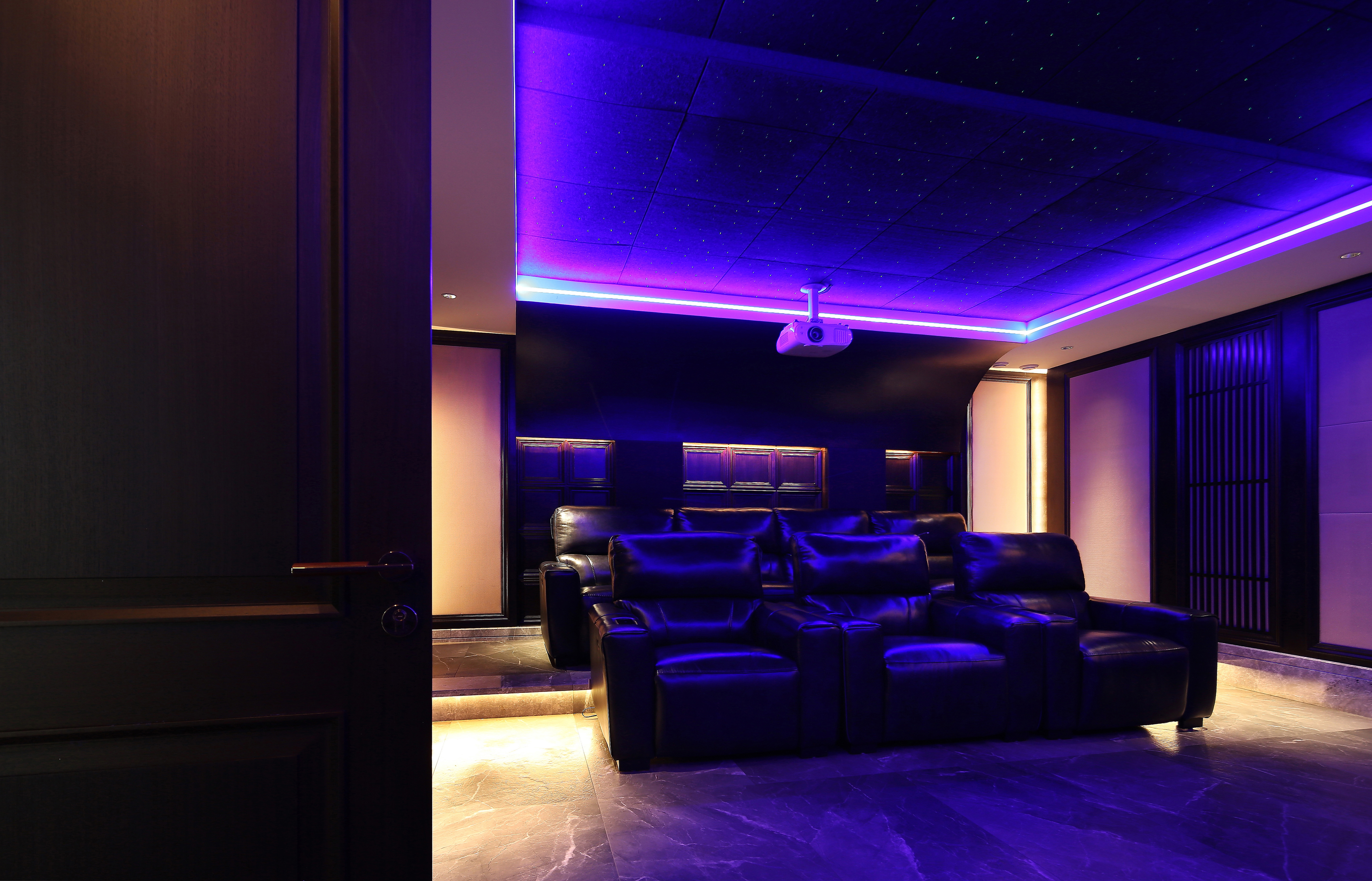 空间布局:中轴对称的设计手法,使空间格局的庄重,并富有仪式感。地下室主要作为男主人呼朋唤友的接待空间,与楼上居住空间动静分开。