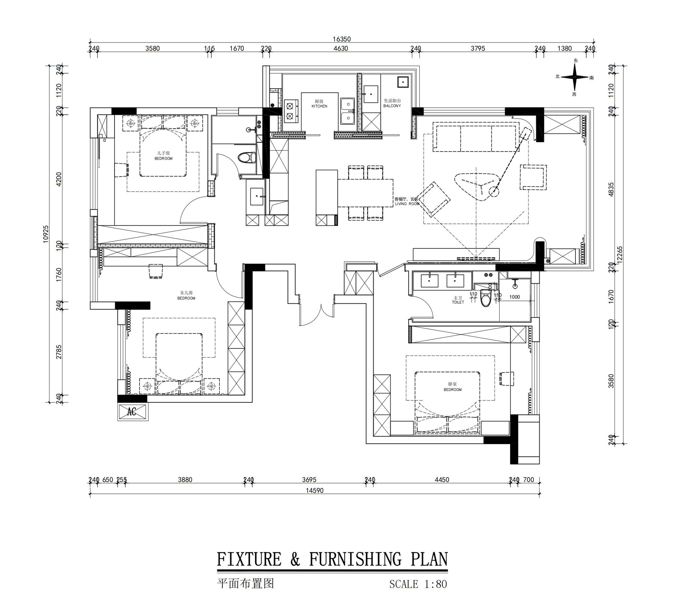 项目定位:该案是为一个四口之家打造的居所,因为喜欢热闹所以父母、妹妹都在同一小区同一栋楼购置的房子。因为家人在楼上楼下所以不必单独预留房间,将套四改套三。公共空间以玄关、厨房、餐厅,卧室以三间次卧为主要改造对象,对其面积重新拆分进行组合,最后呈现出通透、开朗的区域关系。两间儿童房也获得更大的使用空间,配以更完善的功能需求。