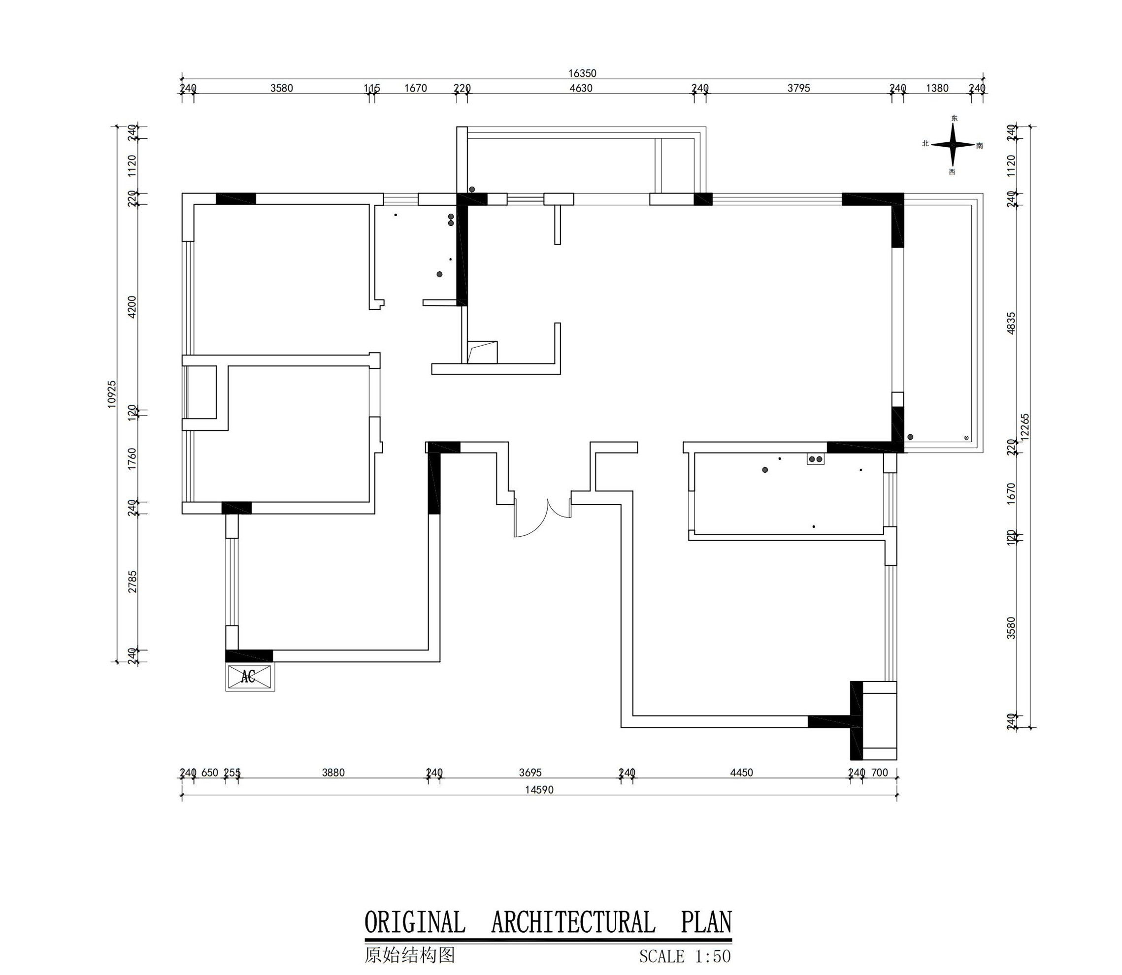空间布局:❶ 厨房位置墙体直接阻挡玄关采光,又因距离有限,无法设计产生深邃幽静的端景效果,让原本大户型入户舒适感变差。