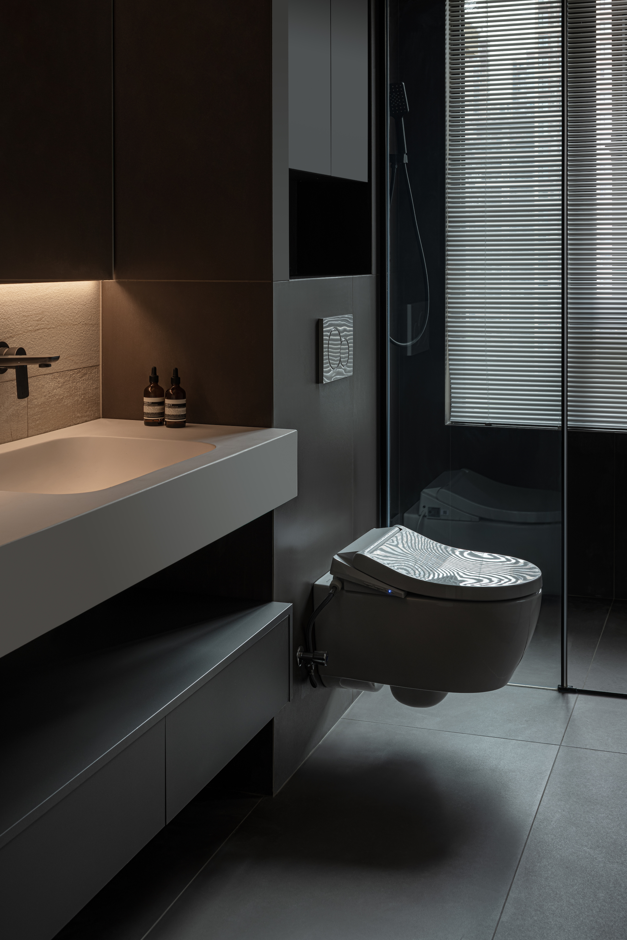 因有足够宽阔的面积使用,所以选择定制双盆台面,方便两人使用需求,全方位提升生活质量。墙体则选择富有肌理纹路的方砖,错缝的铺贴方式,让空间显得更加自然、氤氲。