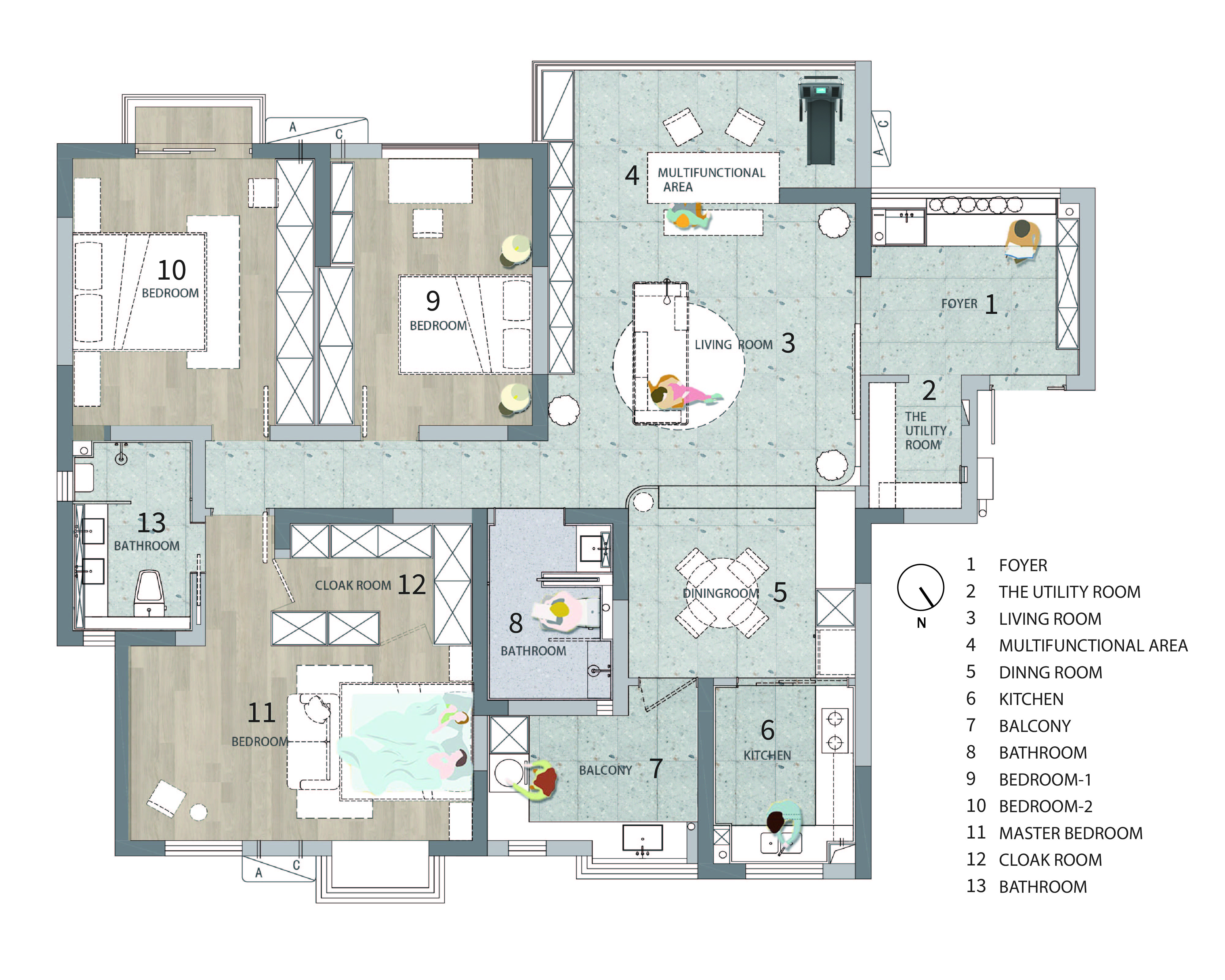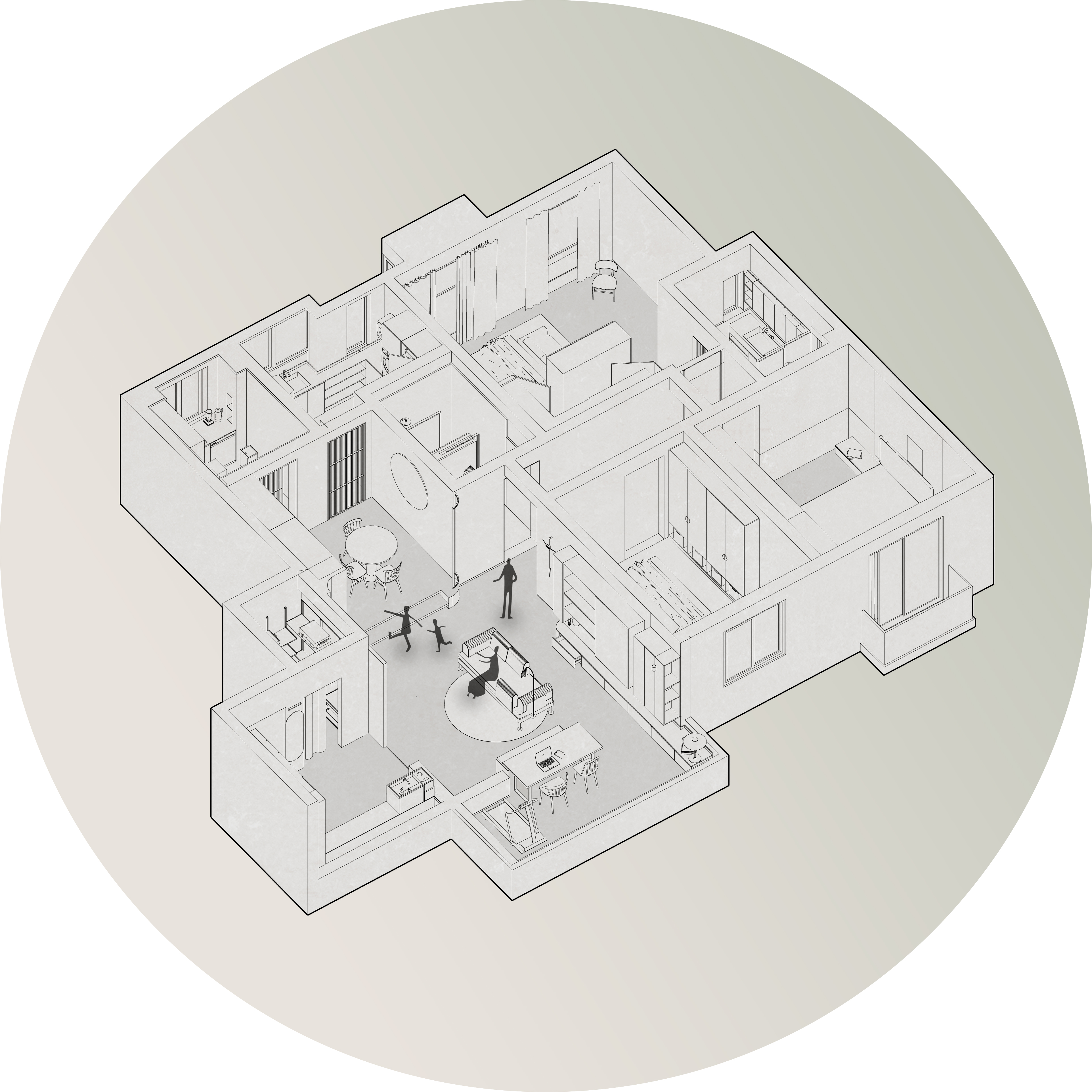 项目定位:这是一个五口之家,屋主是一对非常热爱生活的夫妇,对家居设计抱有浓厚的兴趣,喜欢阅读,平时有看许多关于家居设计的书刊杂志,希望设计创造出属于他们的新居家体验;小主人六岁,是个爱思考,有探索欲的小伙子,喜欢玩乐高和动手“维修”家里机器,外婆是家里的大厨,擅长研发美食,外公则是电脑和摄影达人,他们共同的爱好就是疼孙子。他们期待新家是一个开放的,可以共度亲情时光、共同成长的空间,希望简单朴素又优美耐看,久待而不腻。