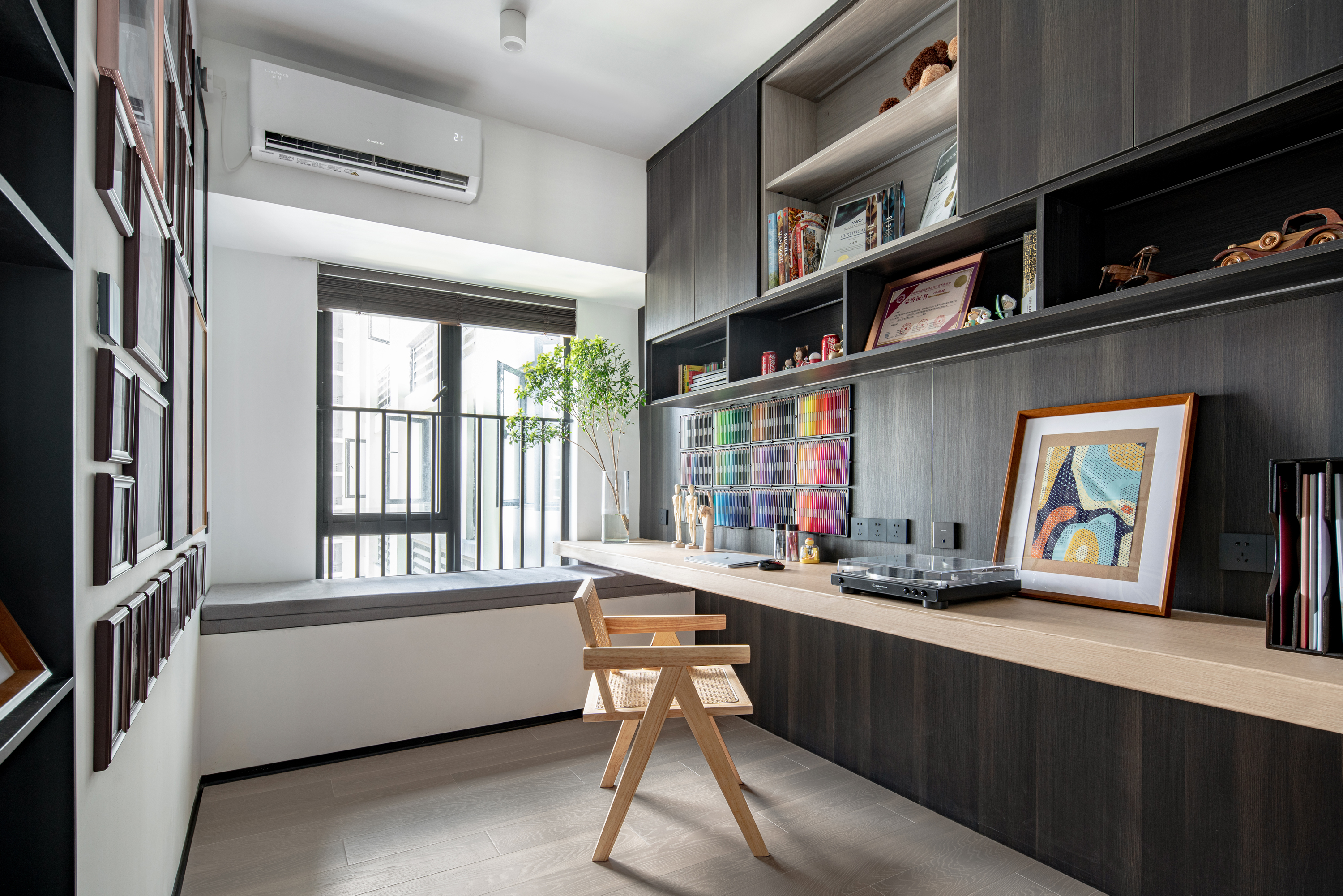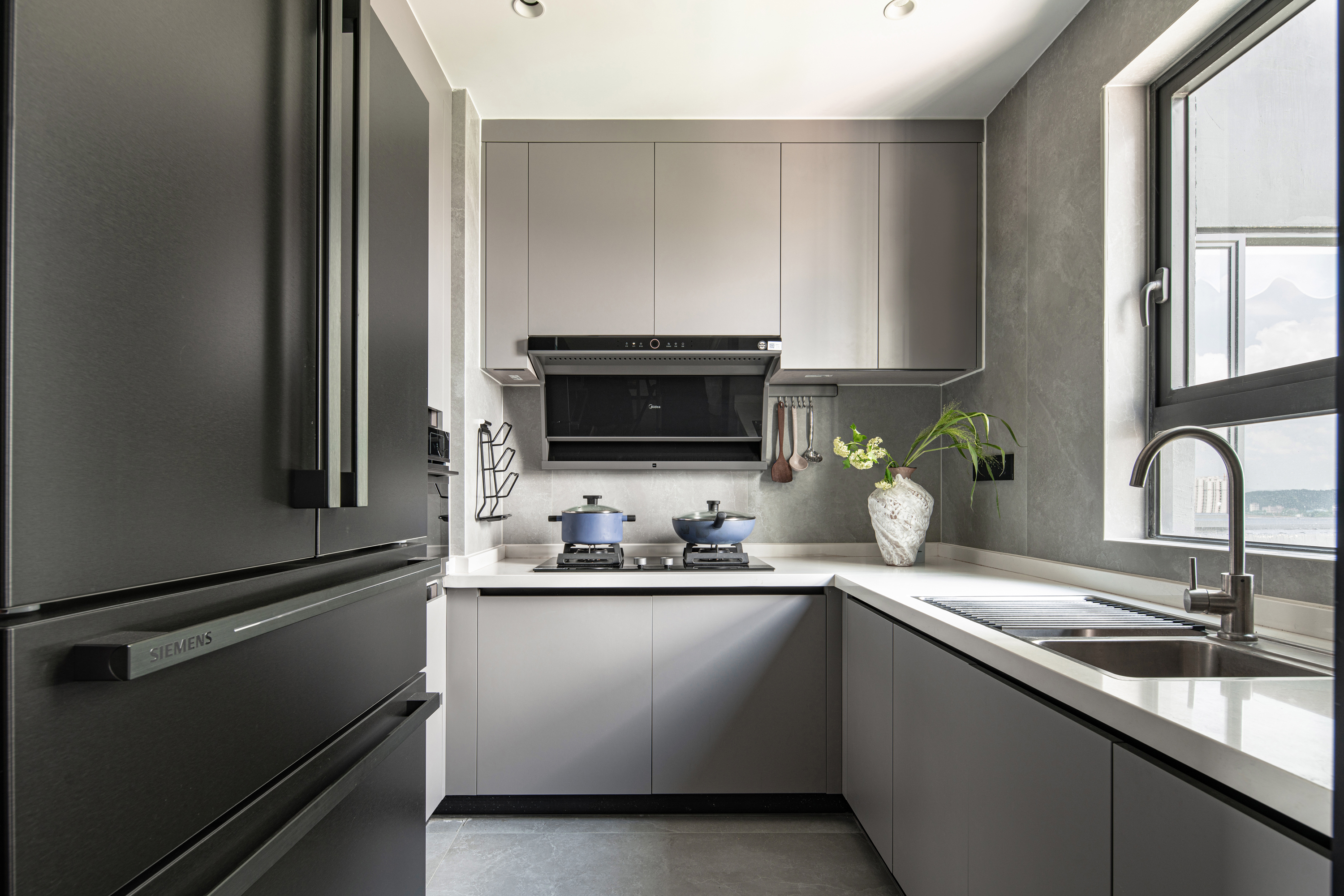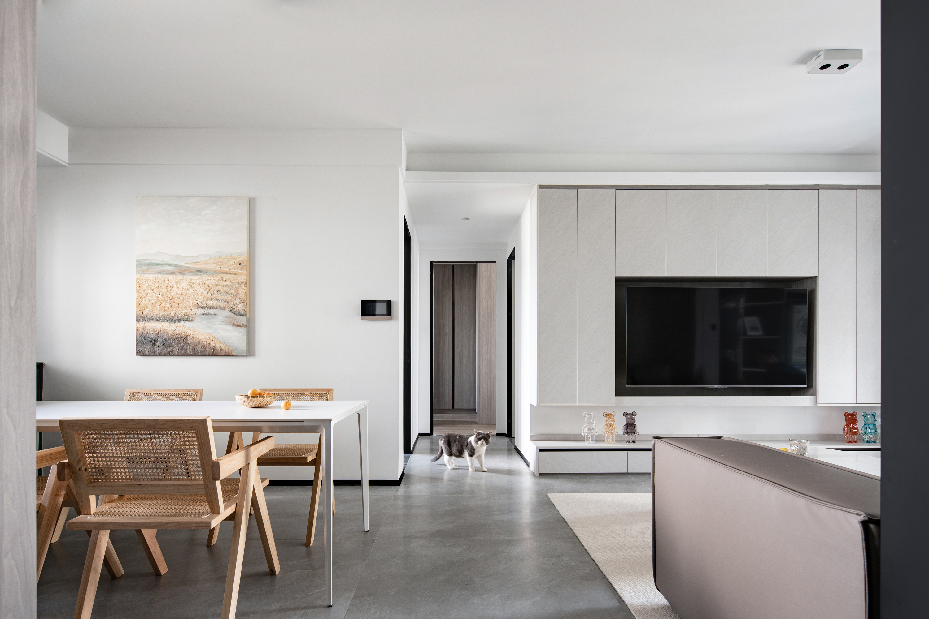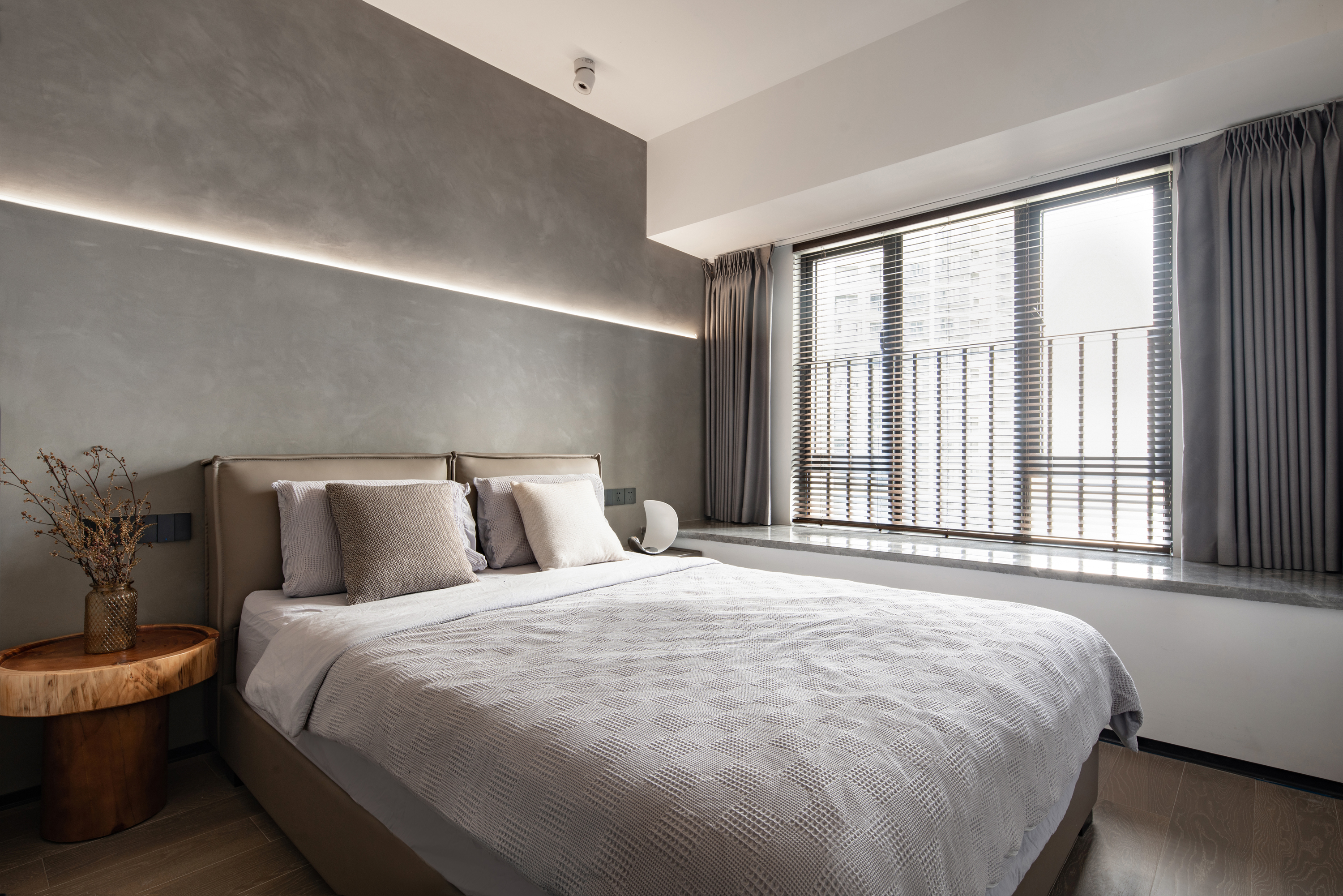 项目定位:定位现代简约风,加入家的生活质感,用储物功能收纳杂乱物品,让空间更加简洁。现代灰调加入原木质感,让空间更有家的温度。
