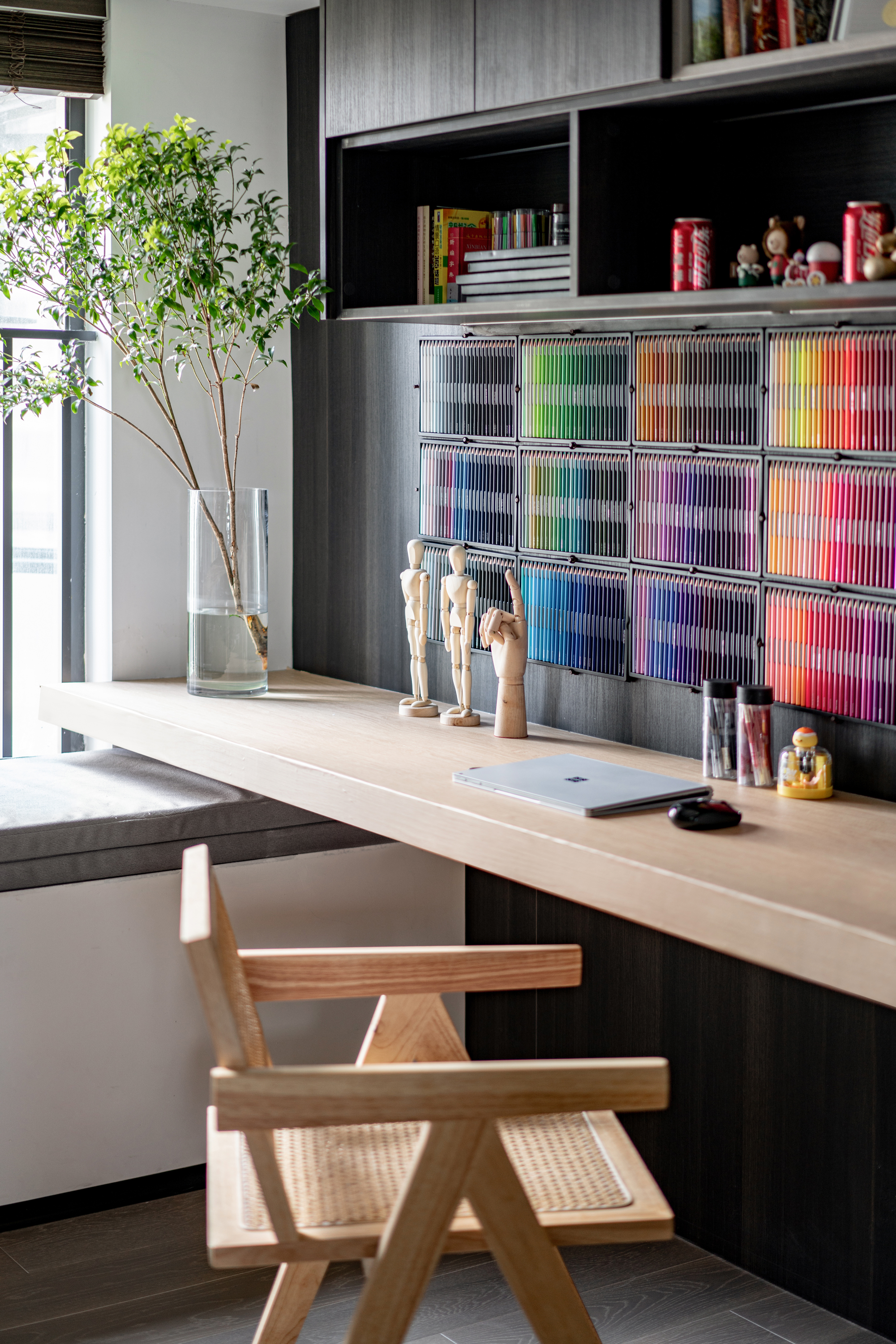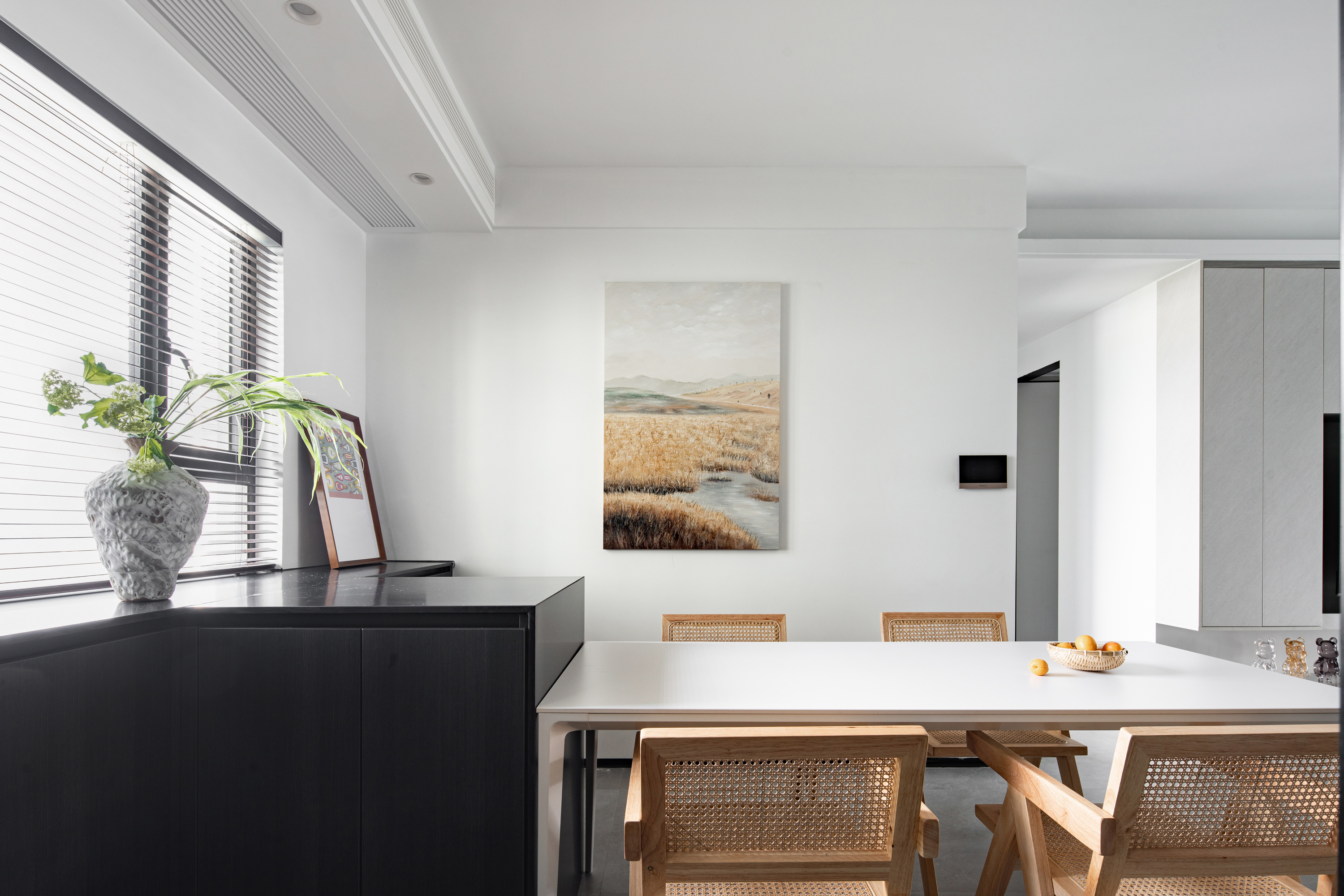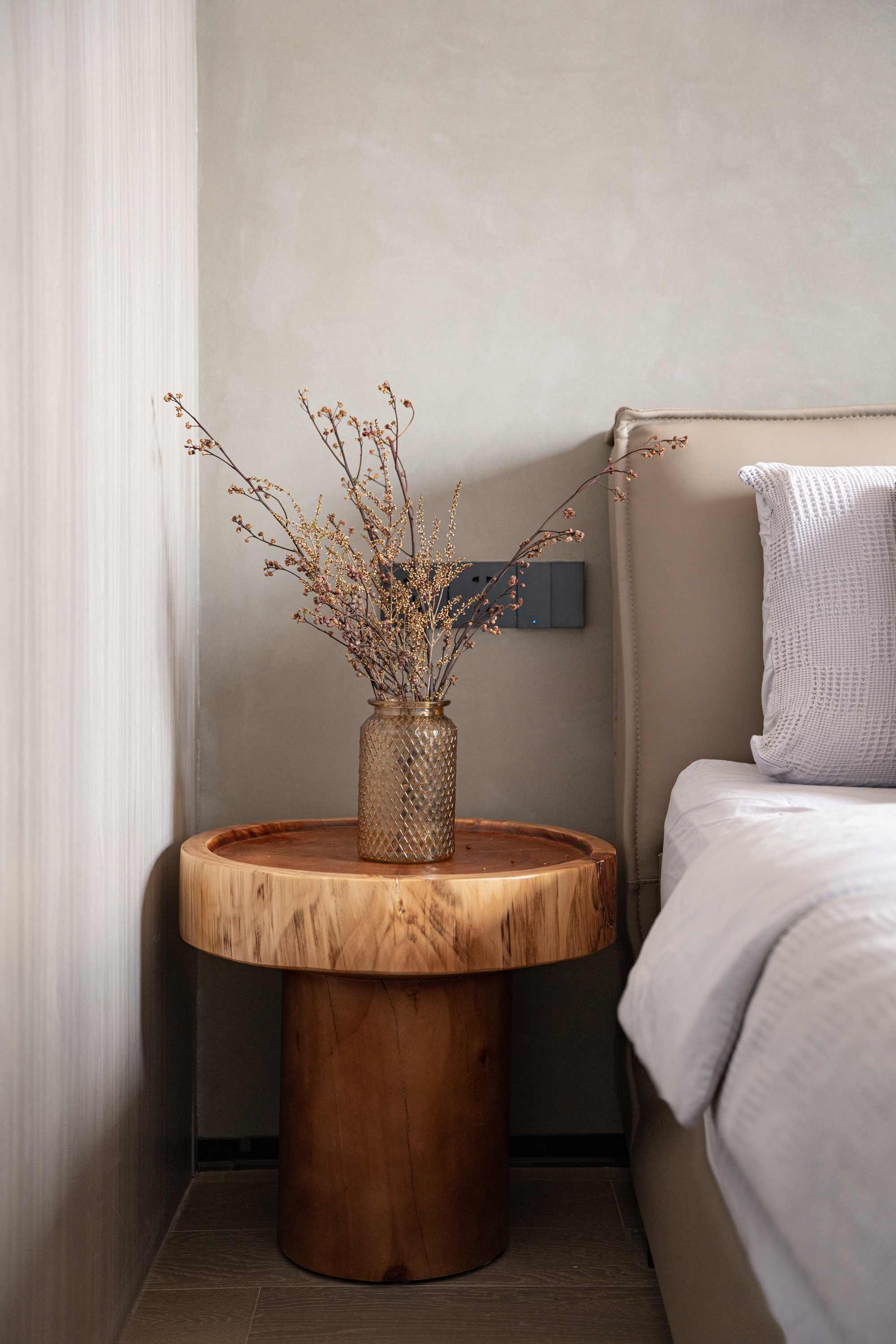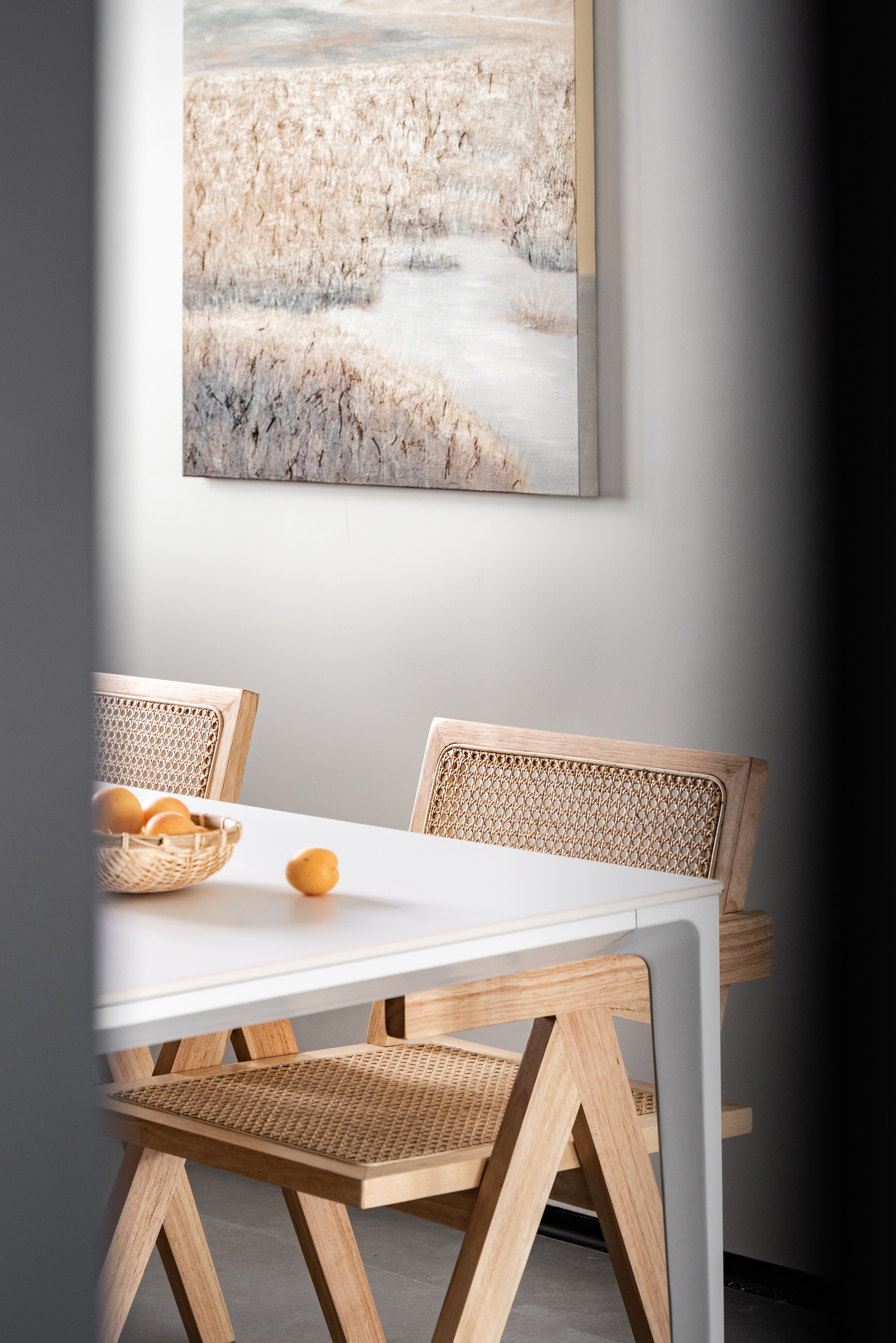 空间意境:风格上现代简约,加入原木风,让简约风格增加了生活的温度。