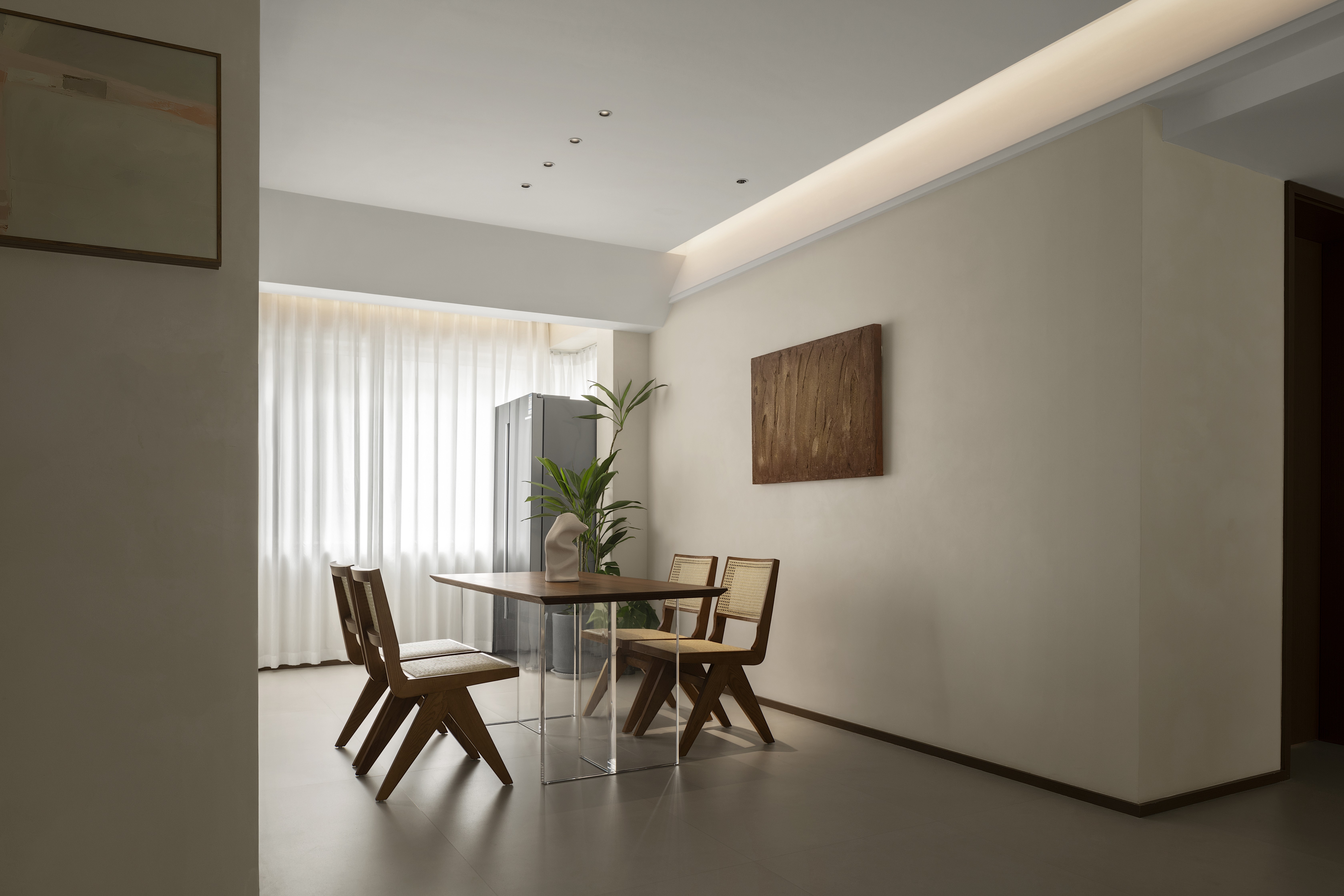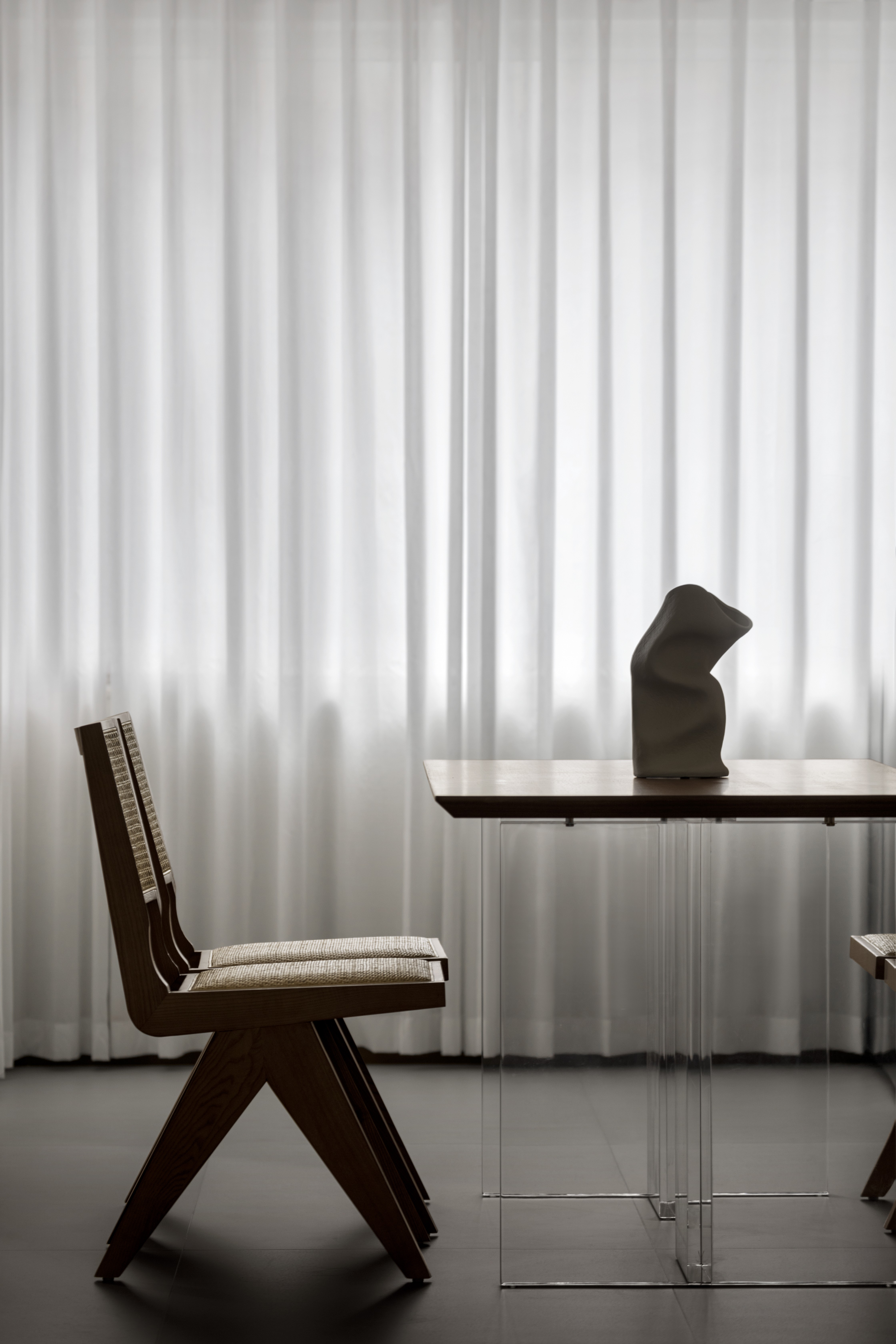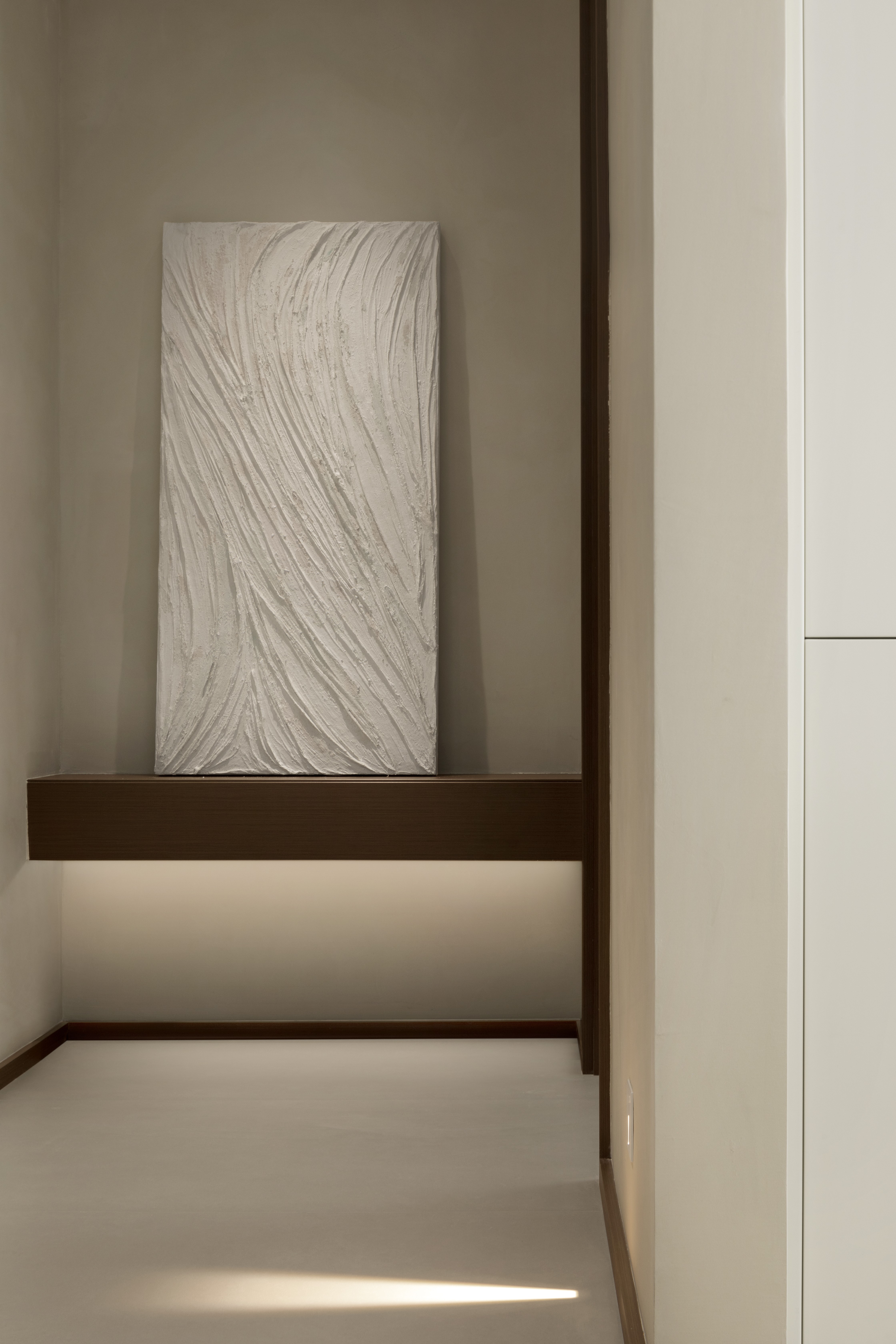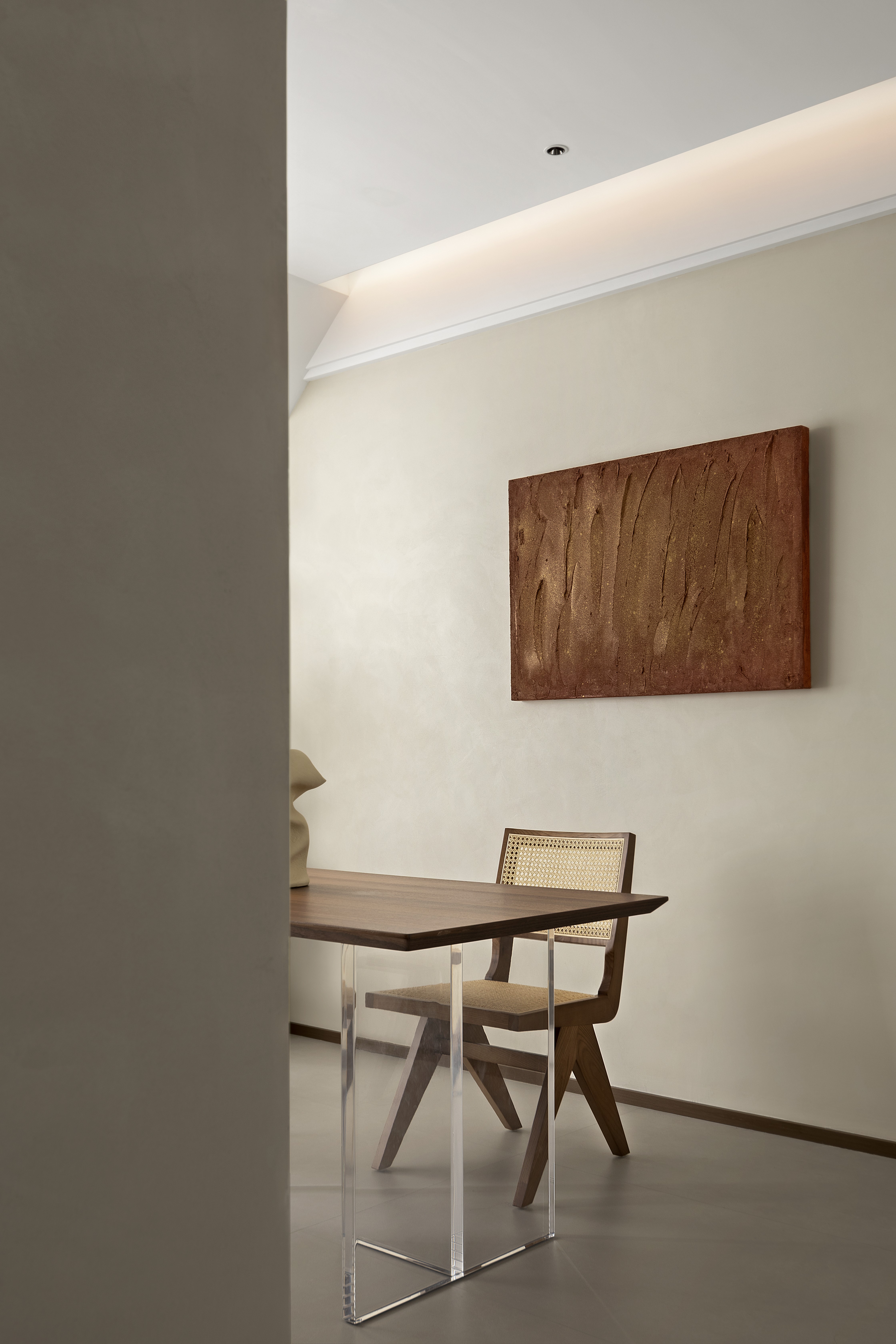 空间意境:行走的空间转换,亦有移步换景的心情,尽管所有的空间相互穿引、有机融合,但并没有置身于大空间的空寂之感,以舒适度作为空间设计的衡量尺度辅之以放松的家具,打造一种细腻且亲密的体验感。