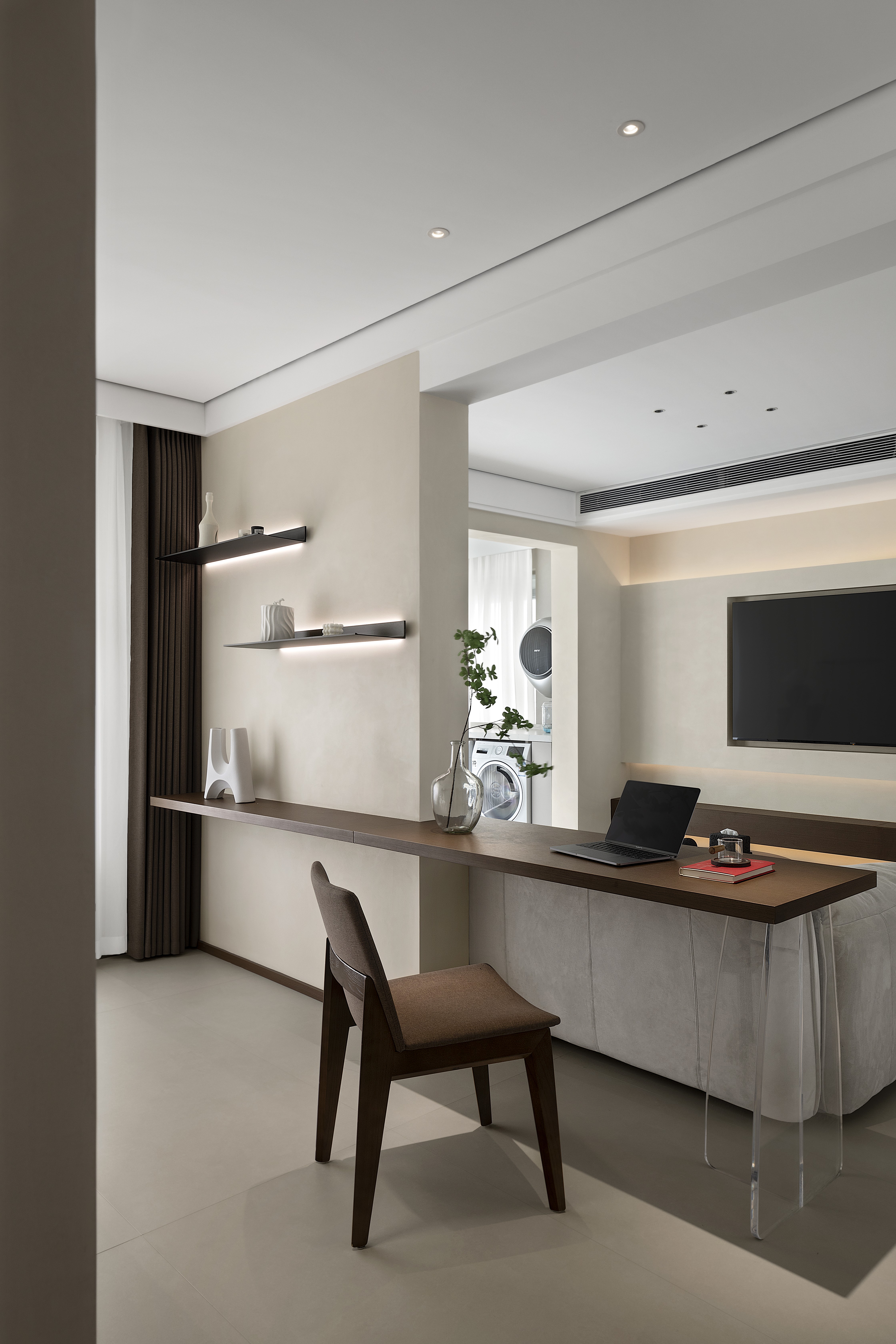 空间布局:将书房与客厅打通,将原本略显拥挤的空间敞开,给居住者创造了一个舒适的空间尺度。