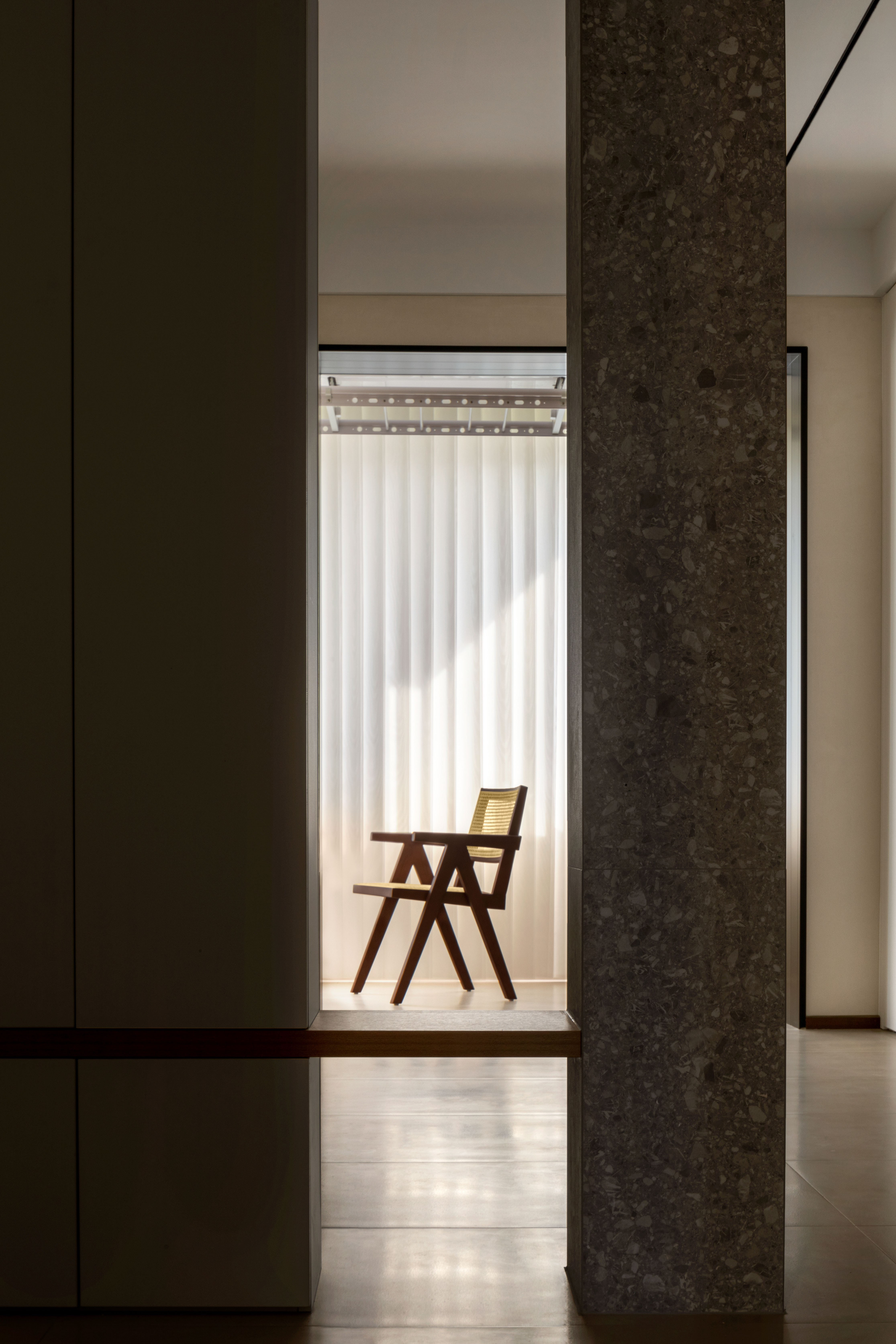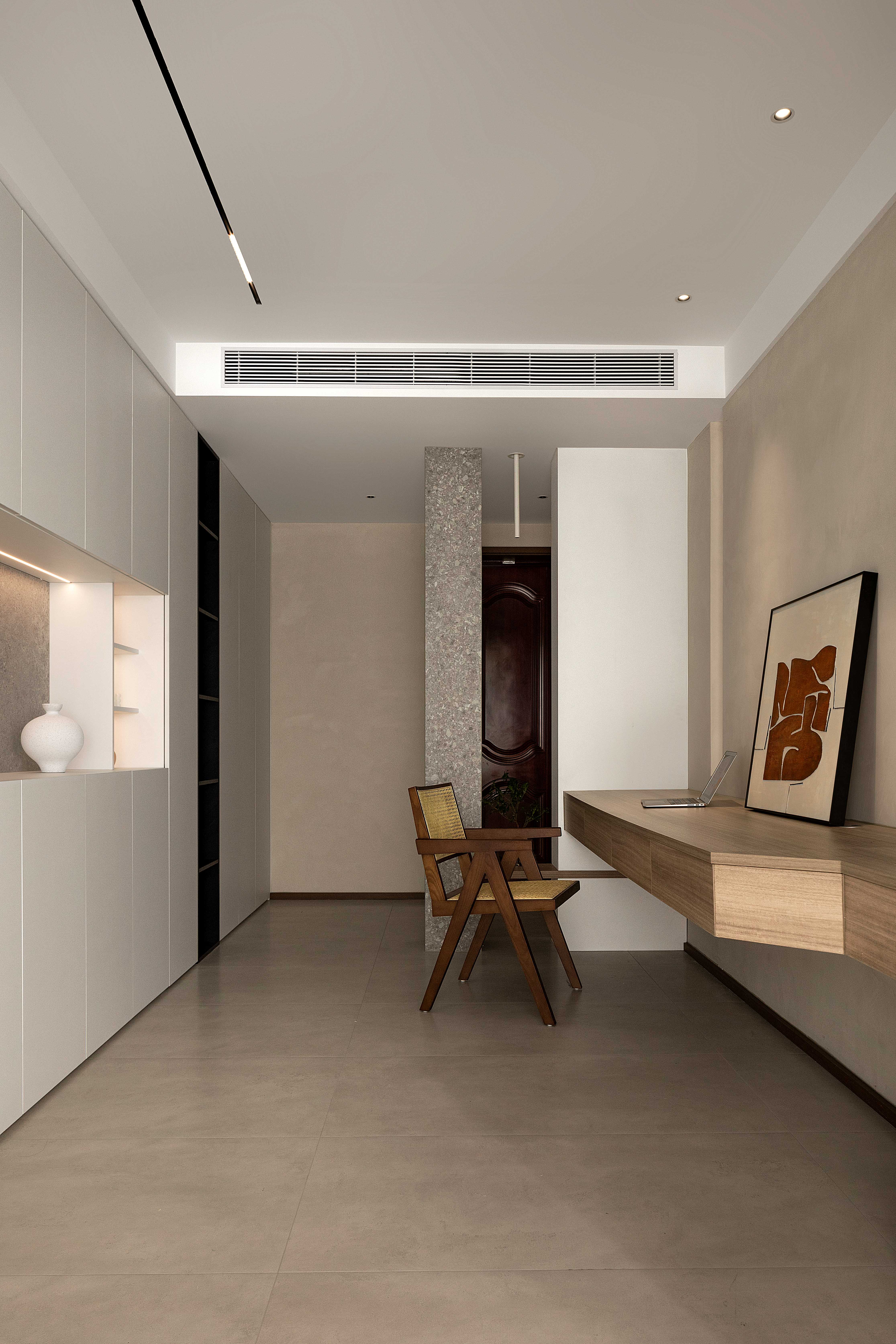 空间布局:书房于客厅是两个空间,通过设计,让视线得以穿透,彼此既独立,又融合