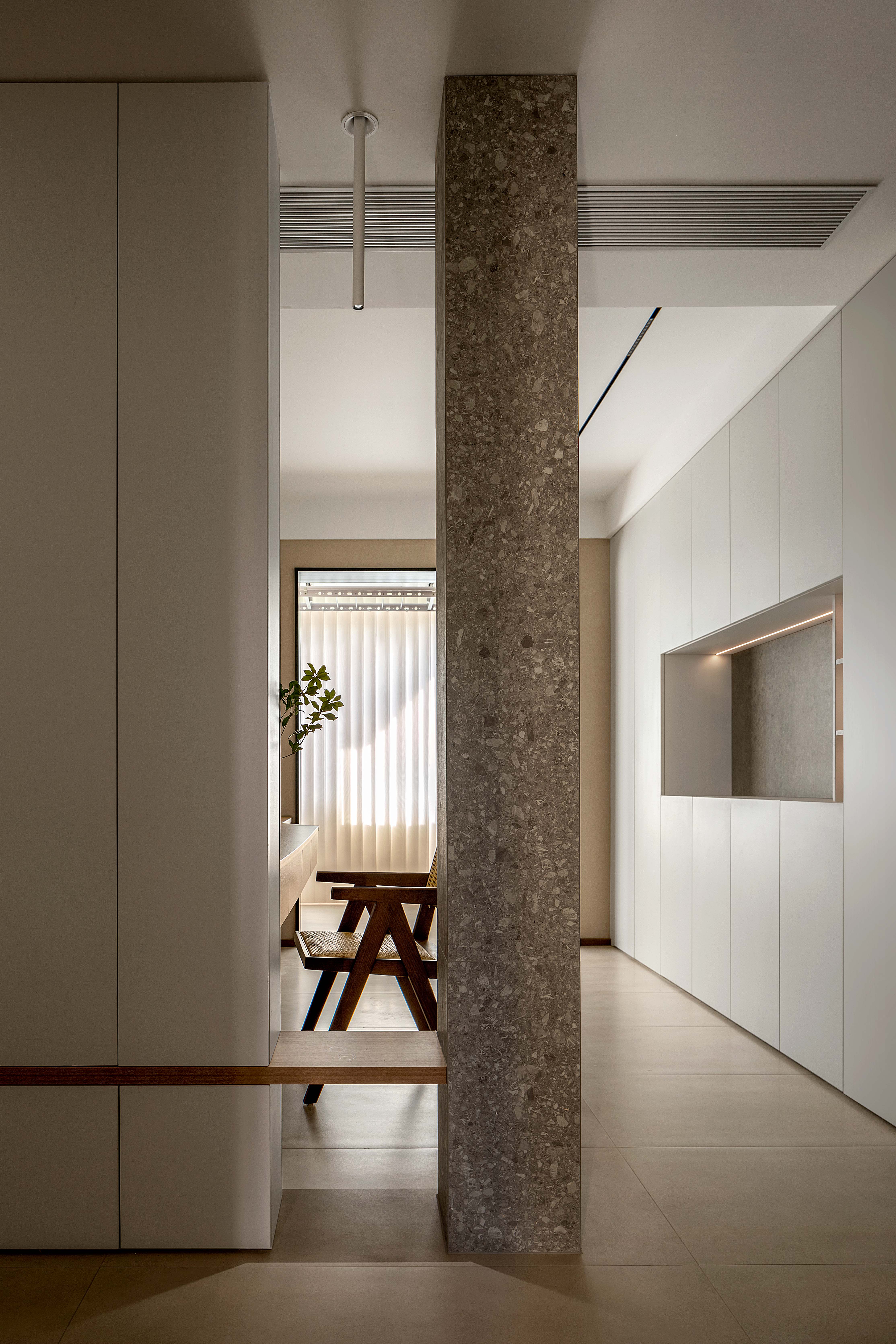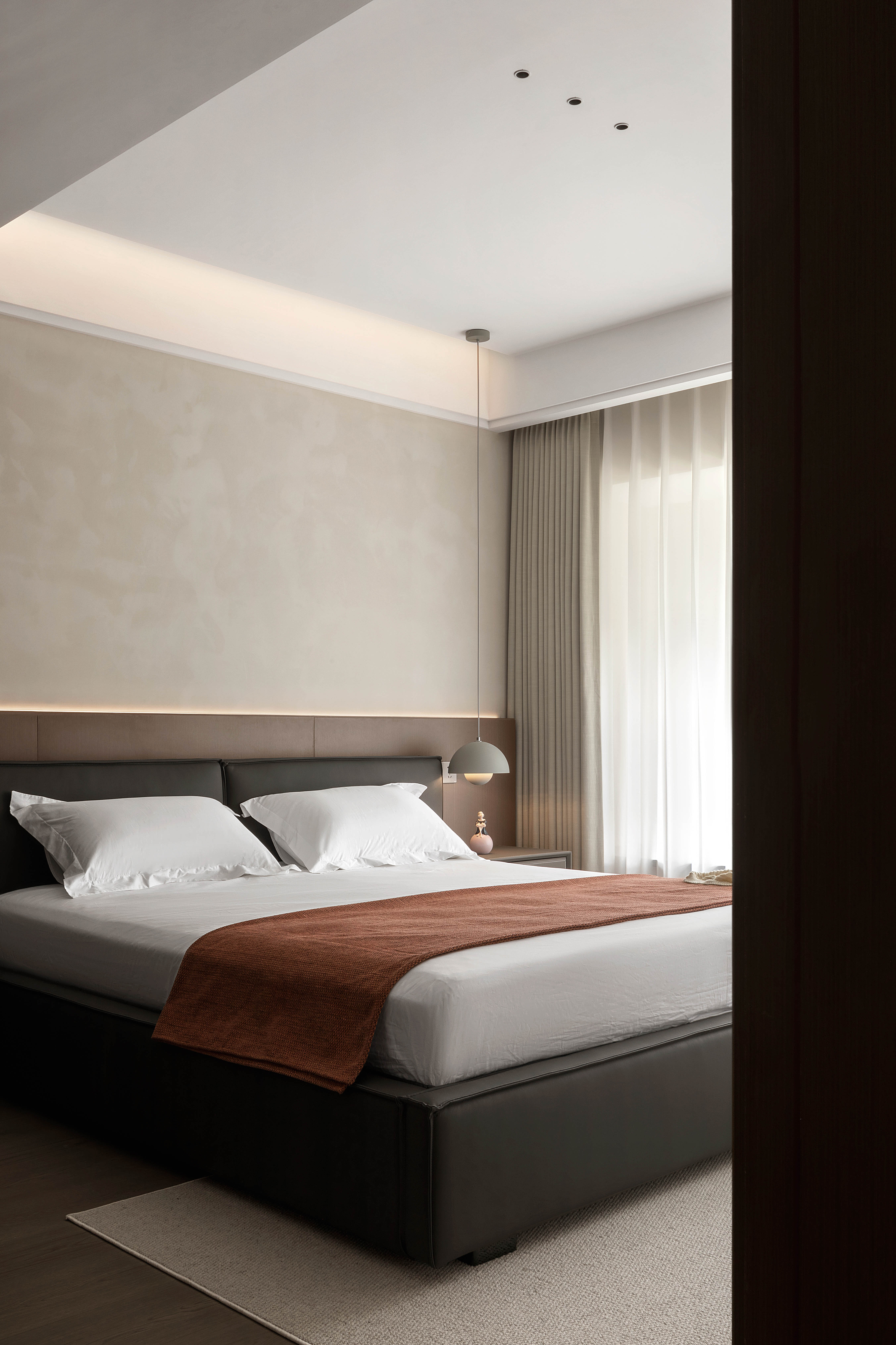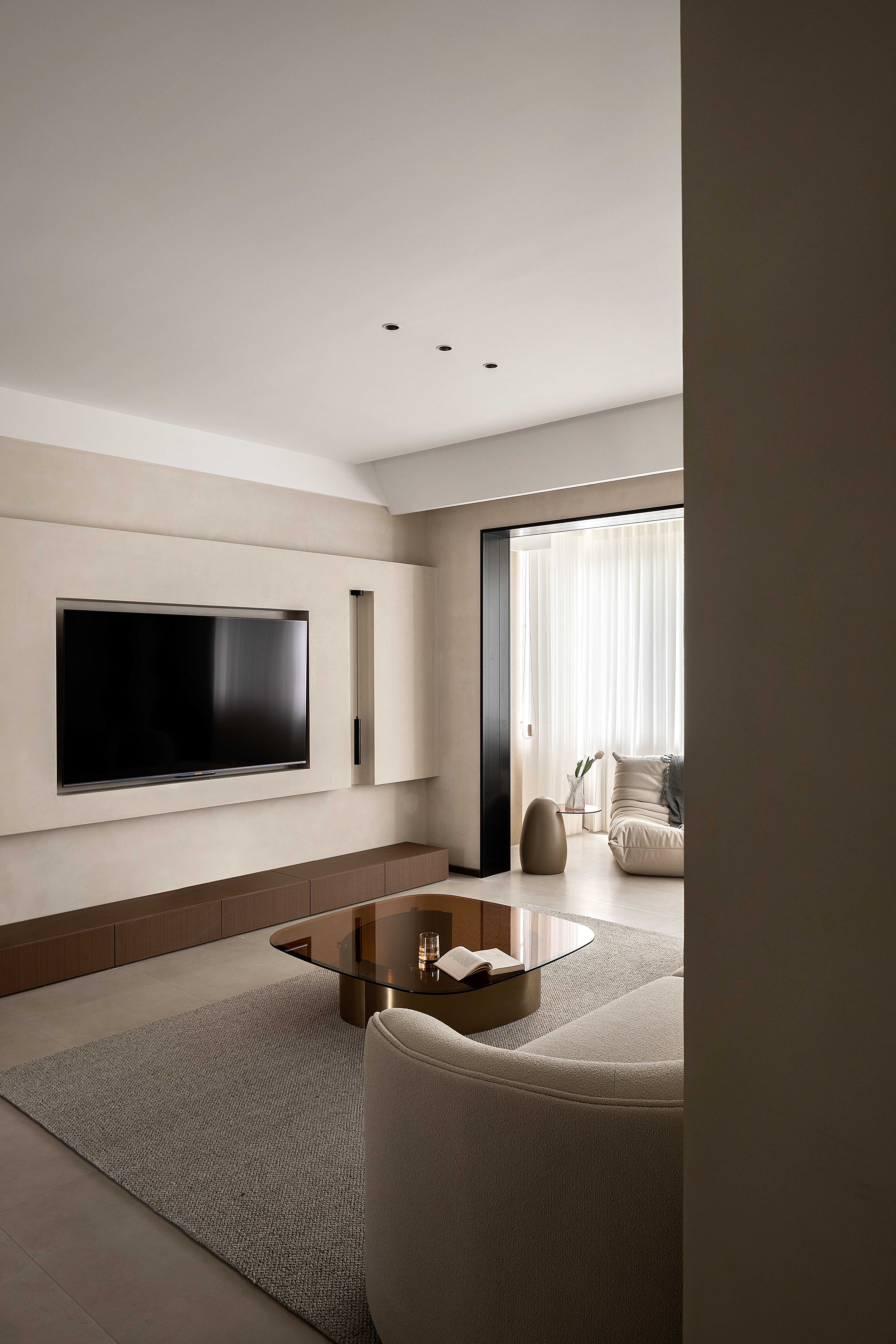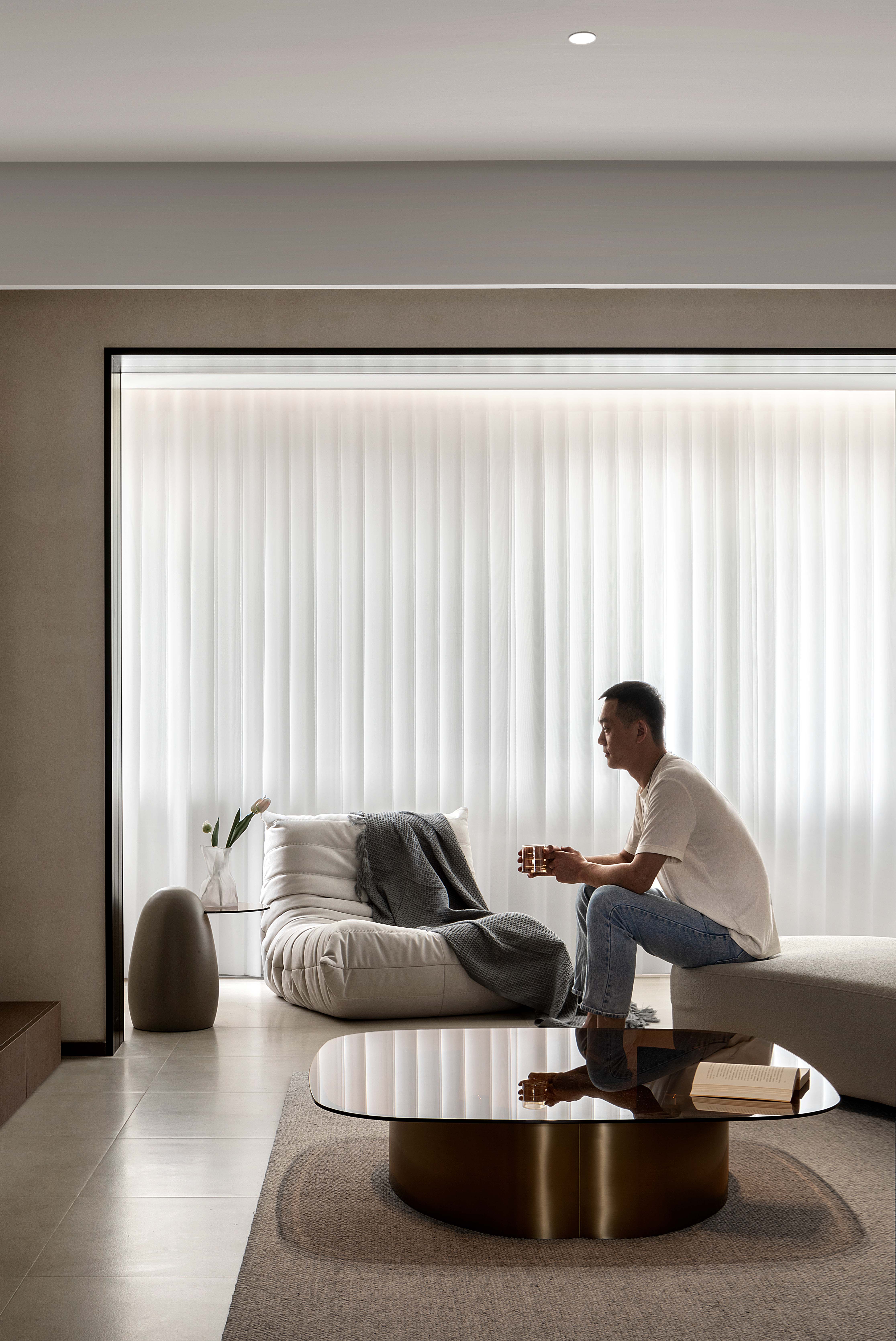 空间意境:光线在空间中的肆意游走,重新划定生活的节奏。在米白的空间底色之上,诚实地反馈着昼夜晨昏的变化,居于此间,将一切的节点交还给时间去安排,玩味生活本真。