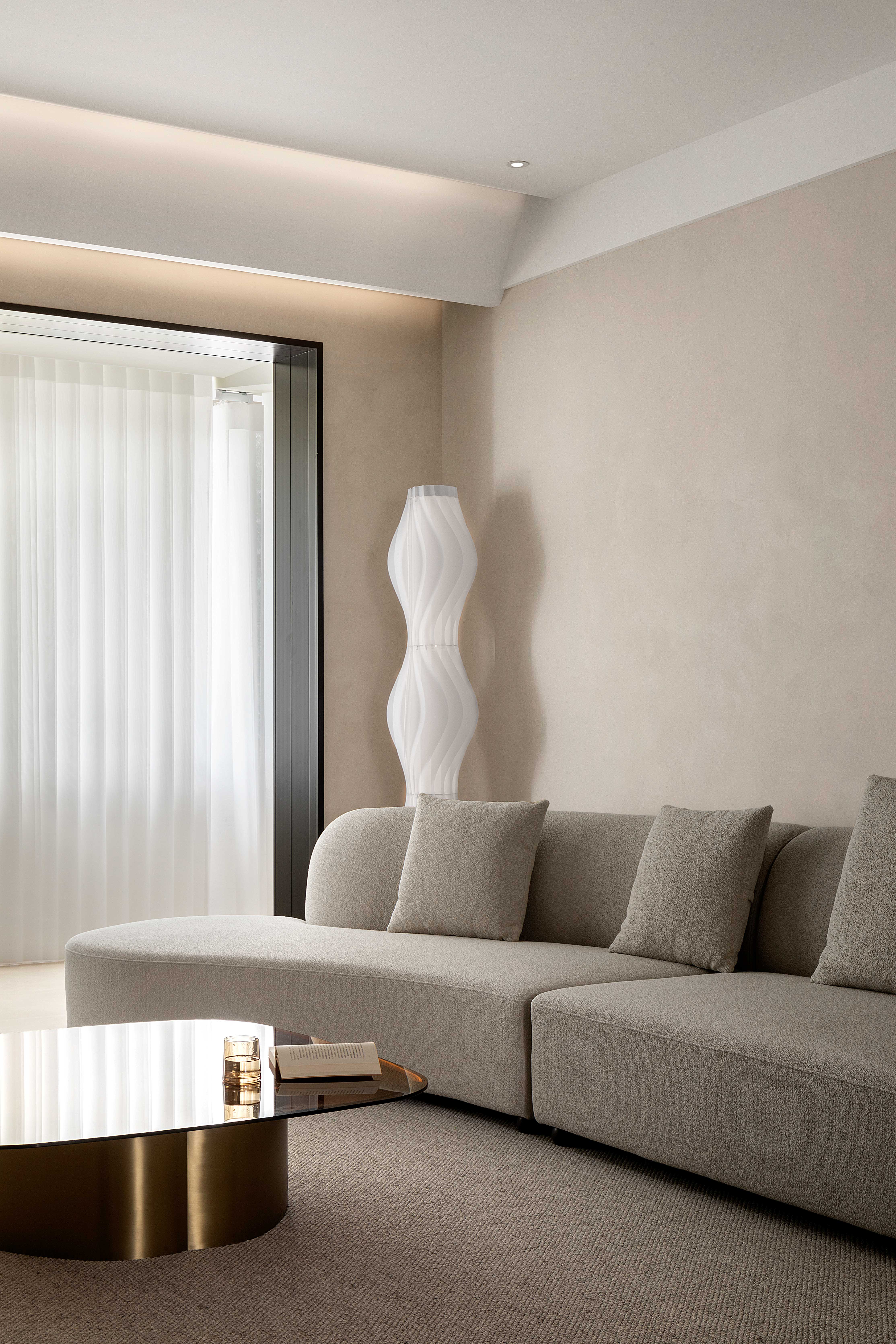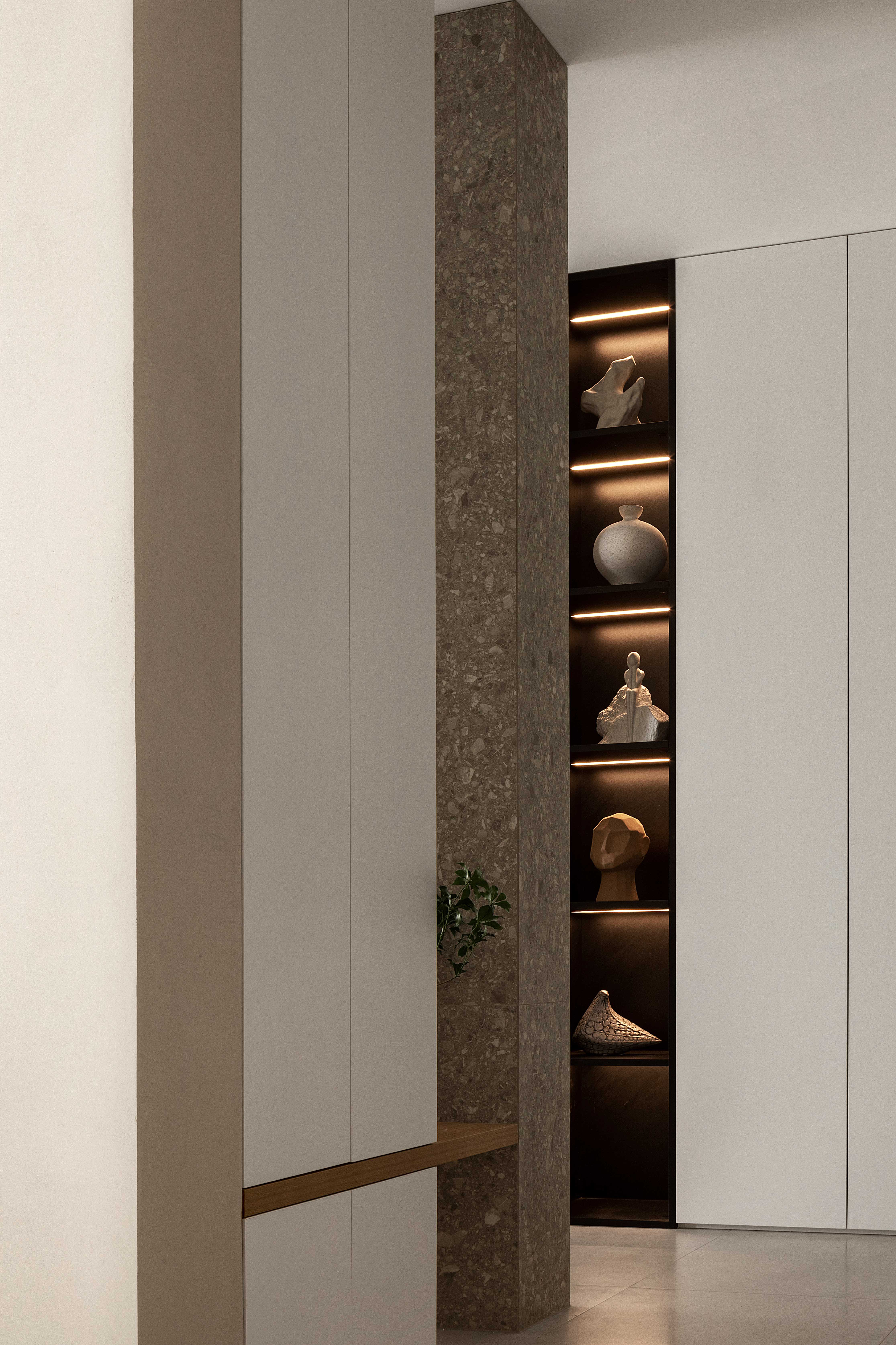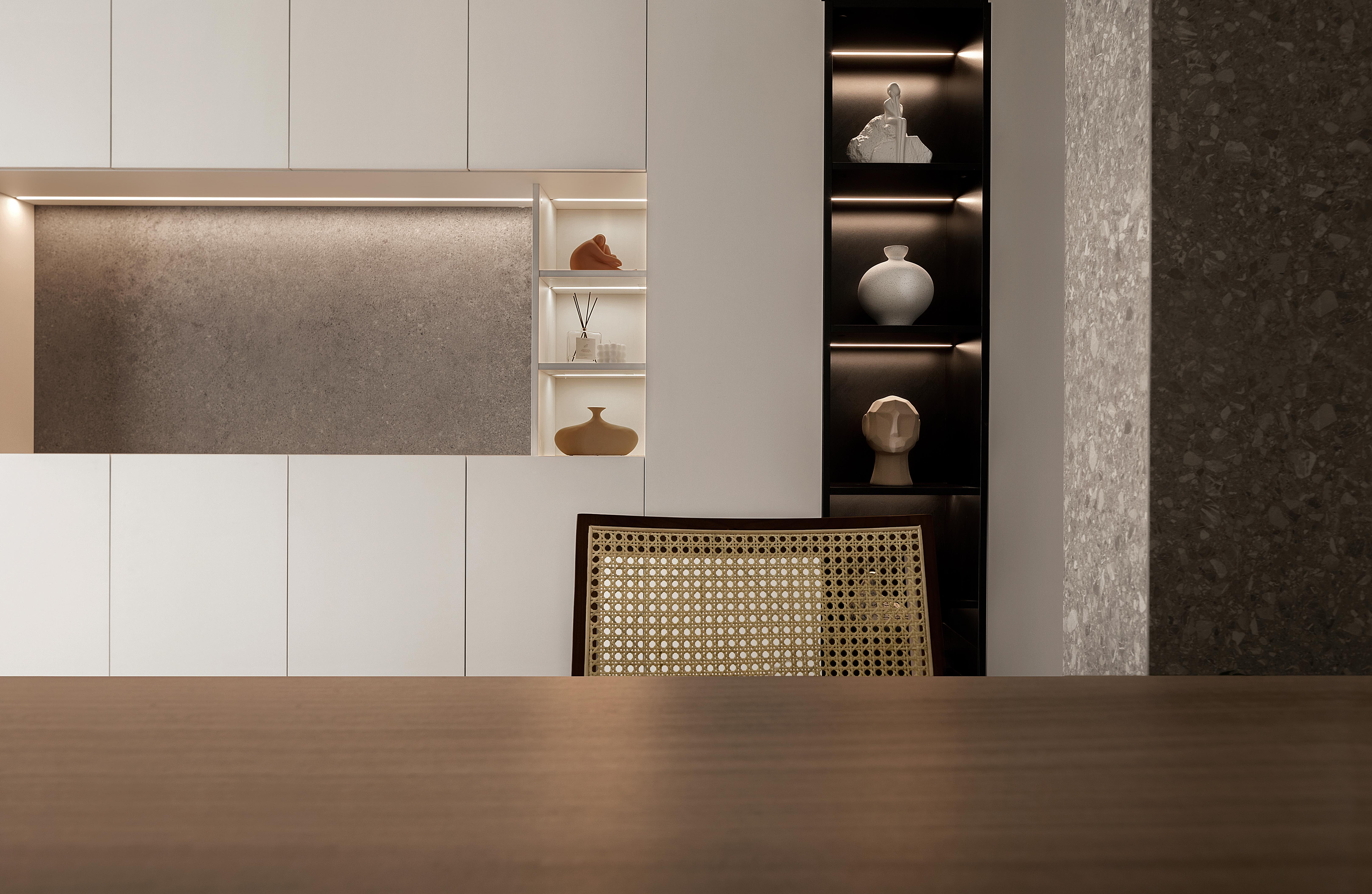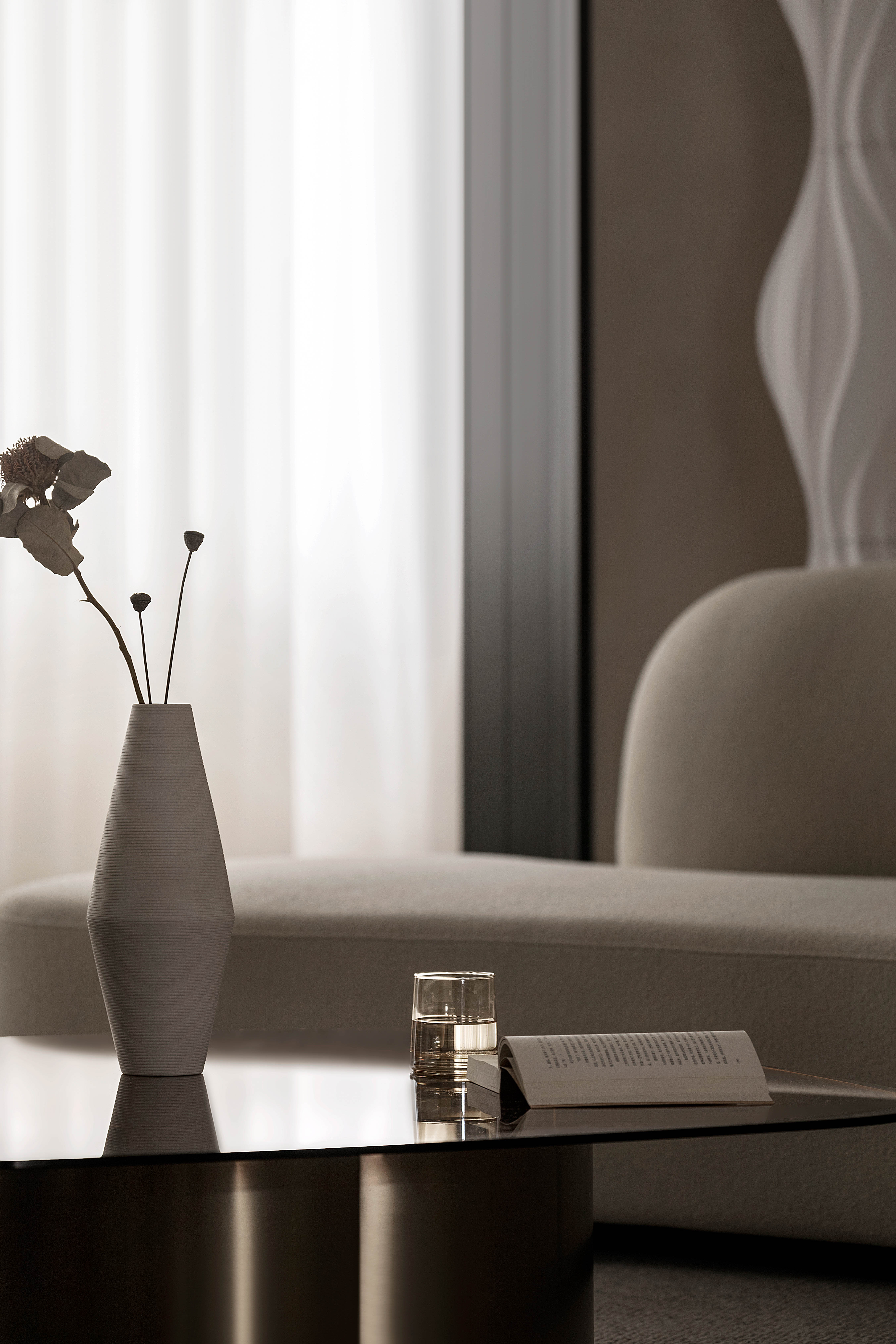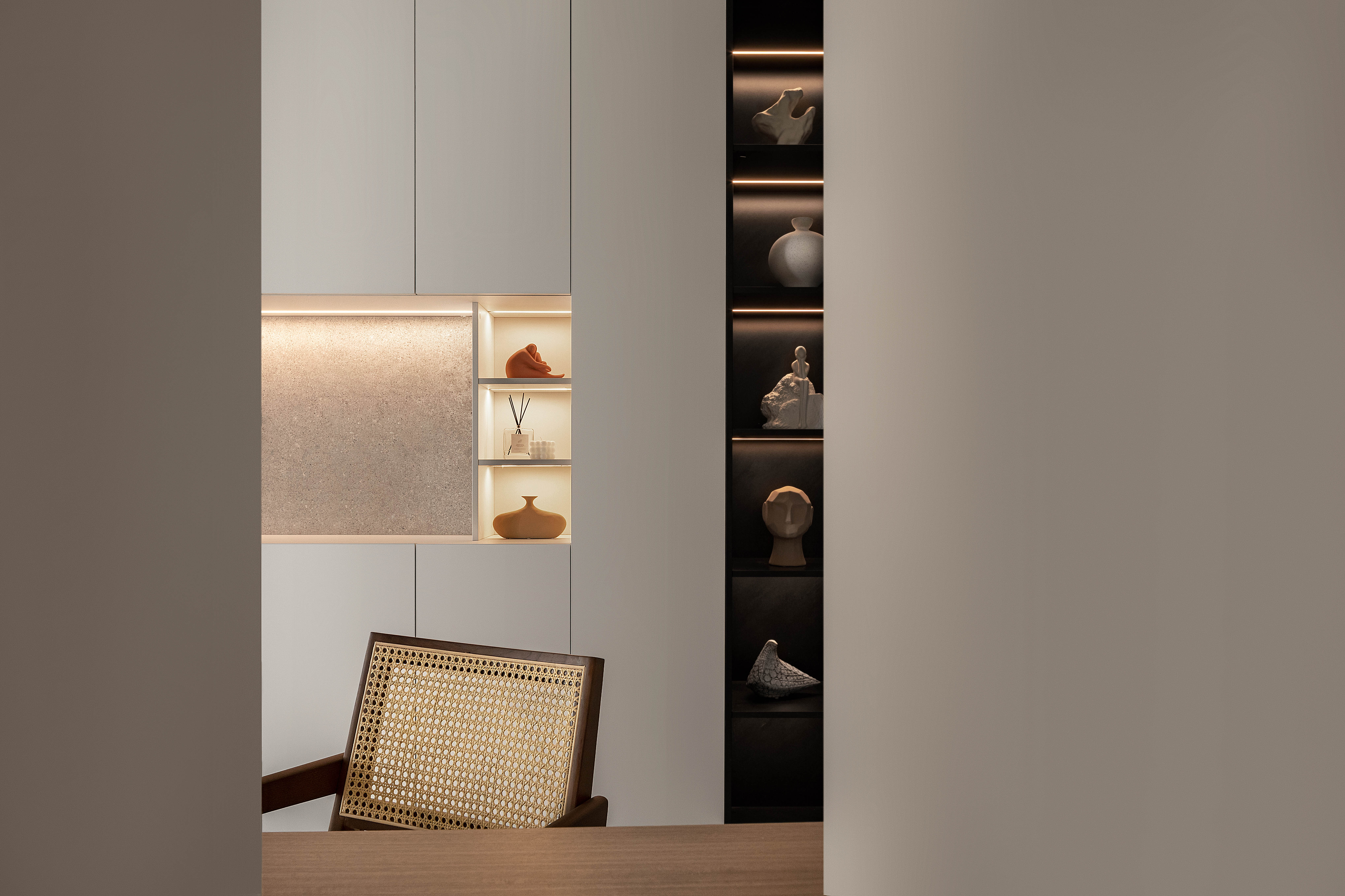 空间意境:光线在空间中的肆意游走,重新划定生活的节奏。在米白的空间底色之上,诚实地反馈着昼夜晨昏的变化,居于此间,将一切的节点交还给时间去安排,玩味生活本真。