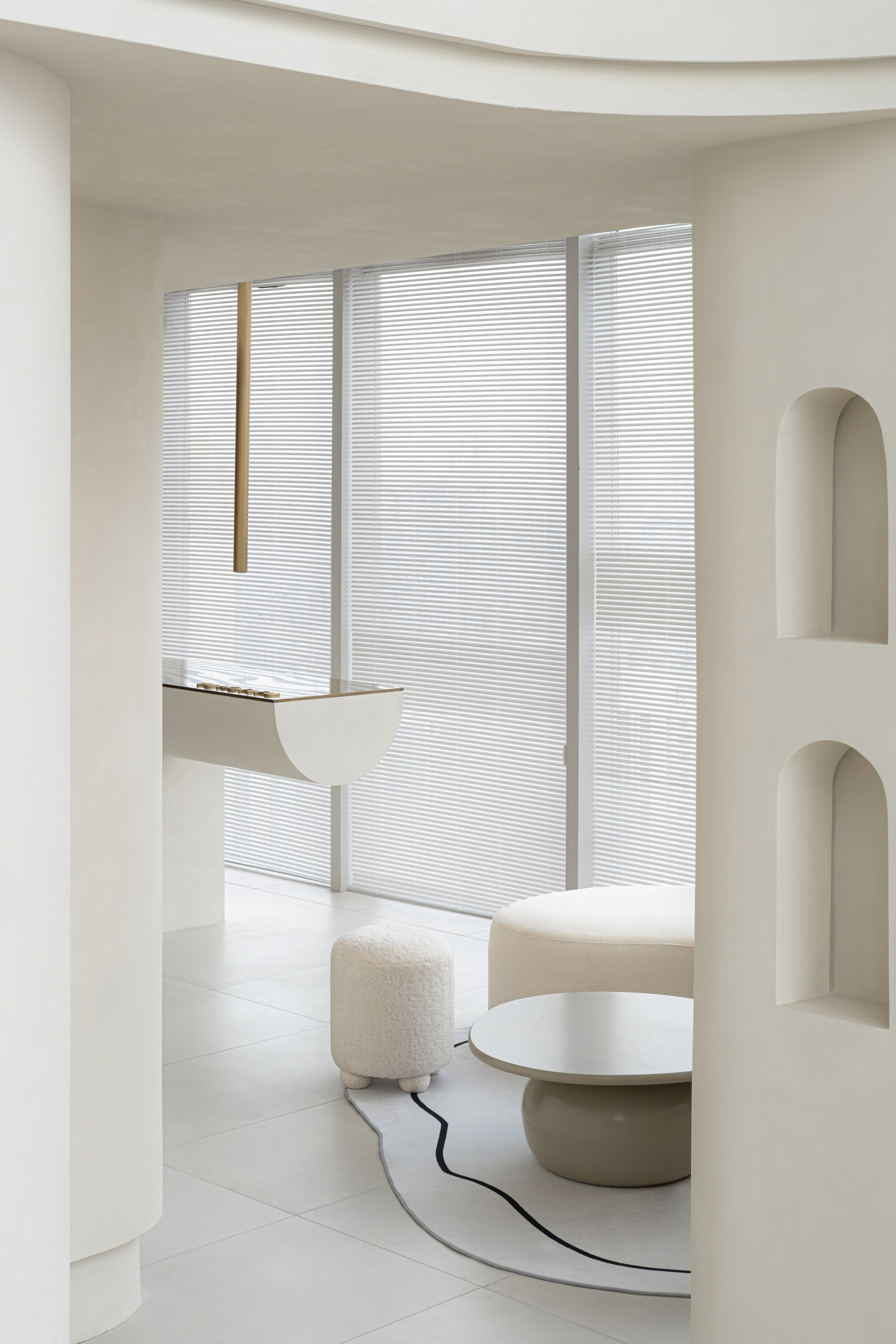 空间意境:①先有“心灵”的疗愈,再有“皮肤”的健康。我们设计的过程中想通过这样一种柔美、放松的形体及空间气质的表达方式,来诠释屿后品牌的定位跟气质。