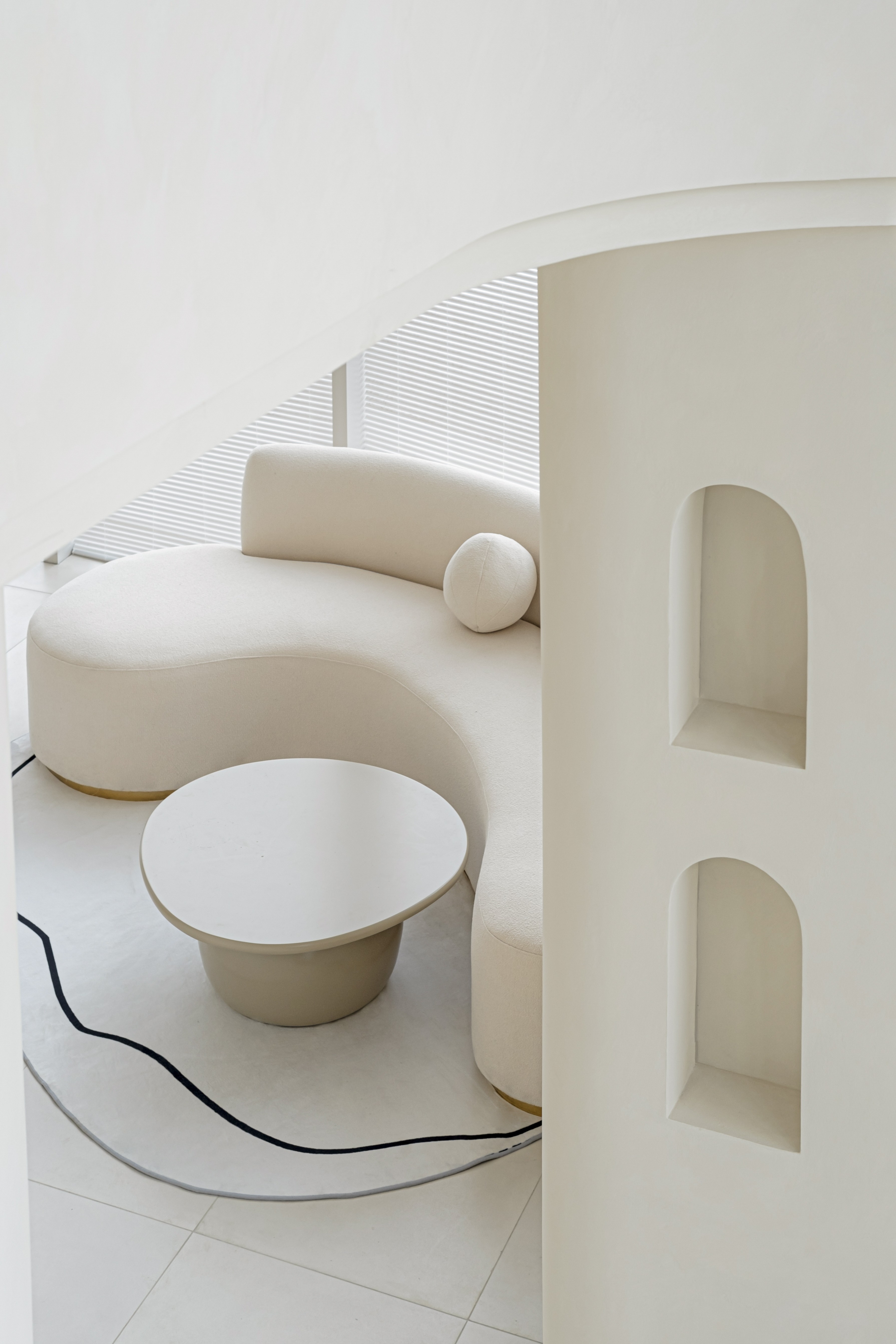 ②通过适量的弧形,柔化空间的气质。刻意营造一种放松、自由的空间氛围。
