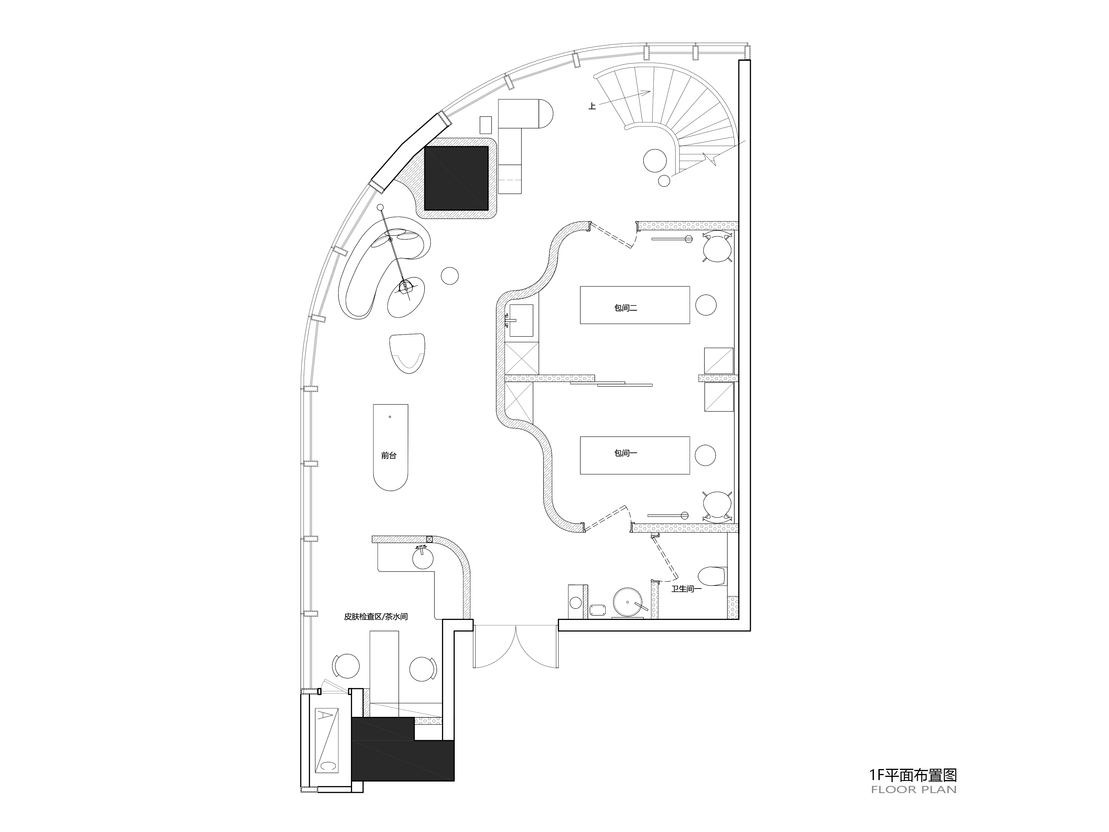 ③让建筑空间形态结构与建筑本身产生共鸣。利用曲面形态重组空间分区,模糊了空间分割感,也更具有融入感和流动感。 -