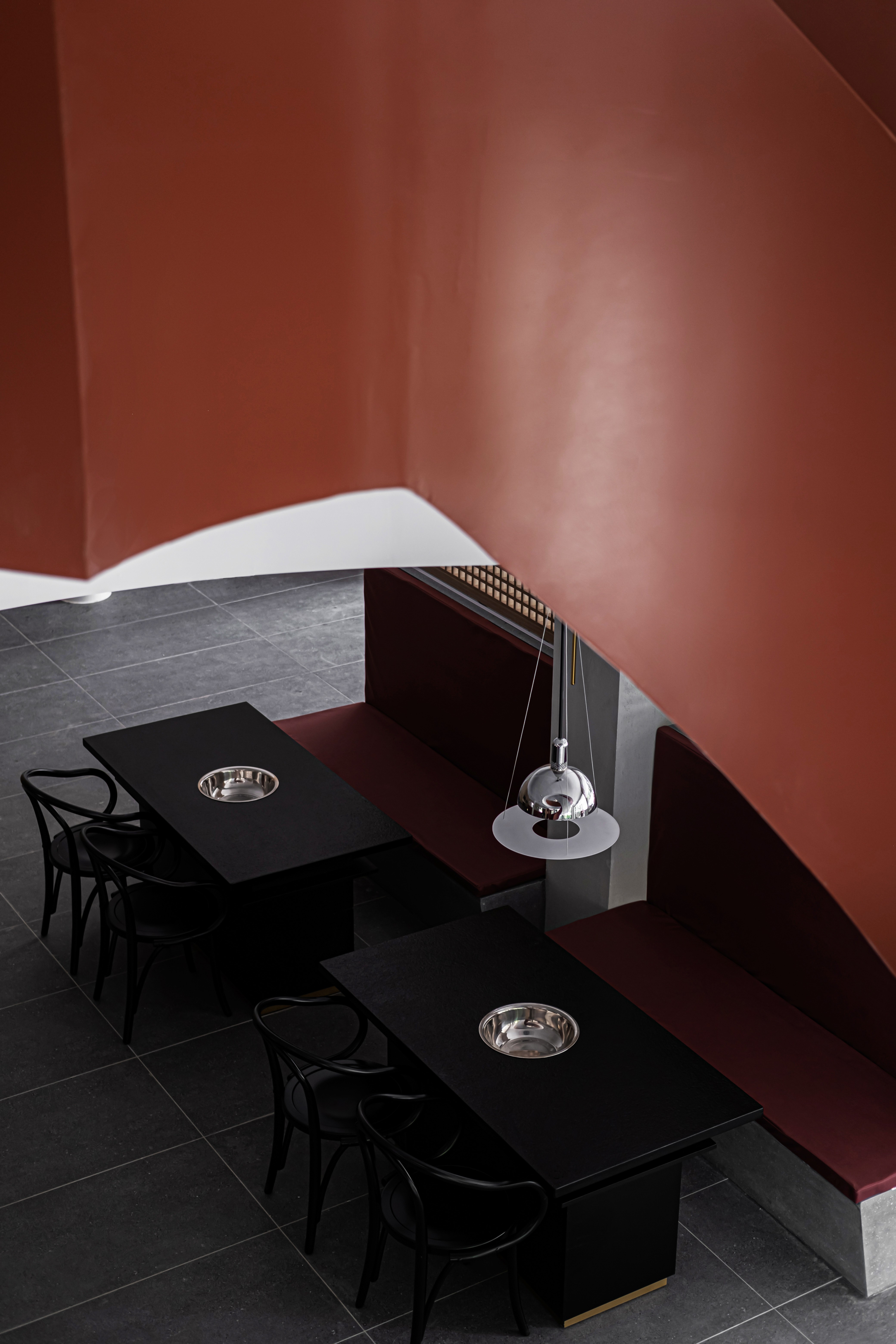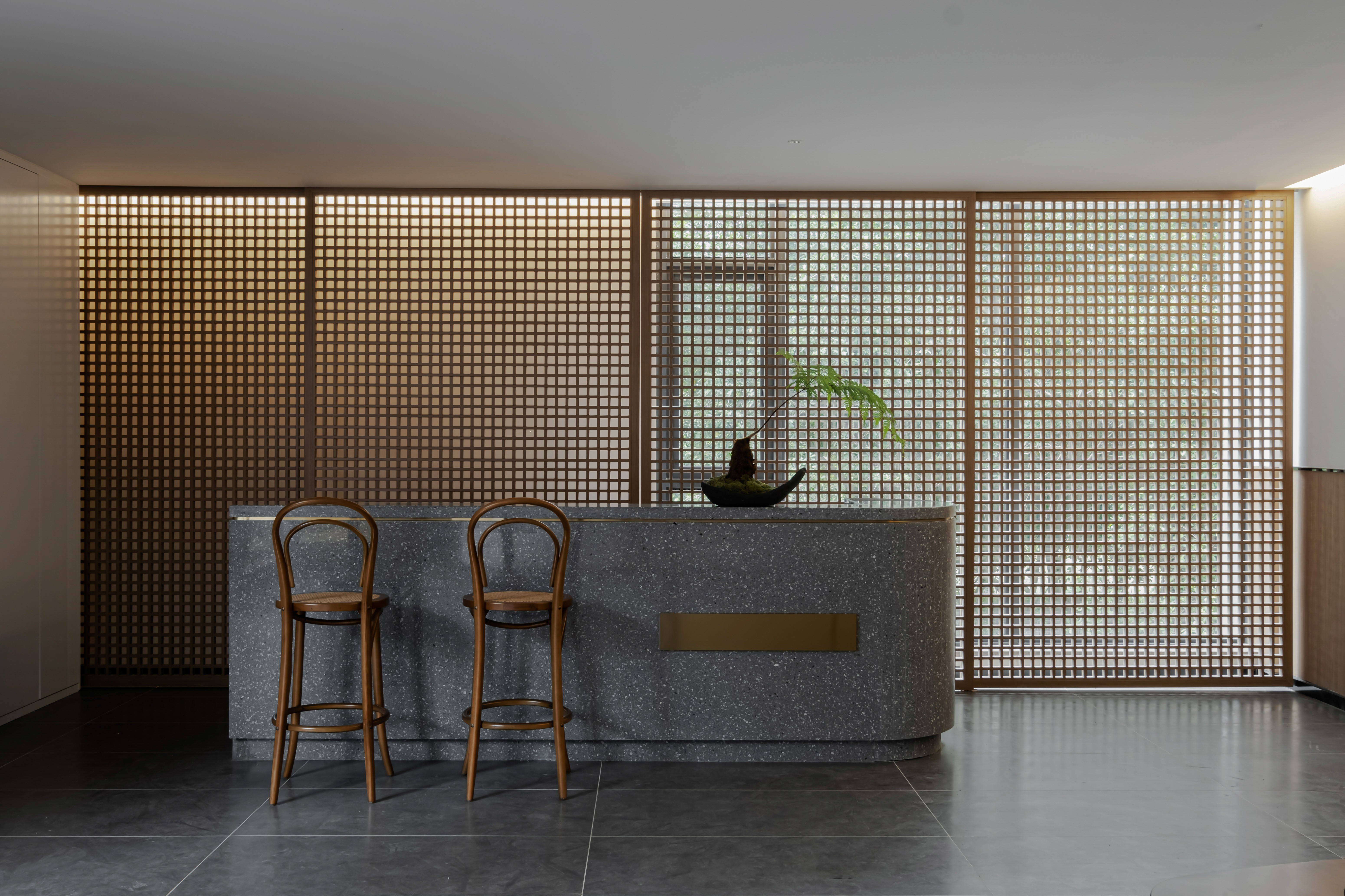 空间意境:①设计以「穿透介质,模糊空间边界」为架构,由天方地圆的形式展开,打破既有轴线的安排,利用弧线型的动线活跃空间的体验感。