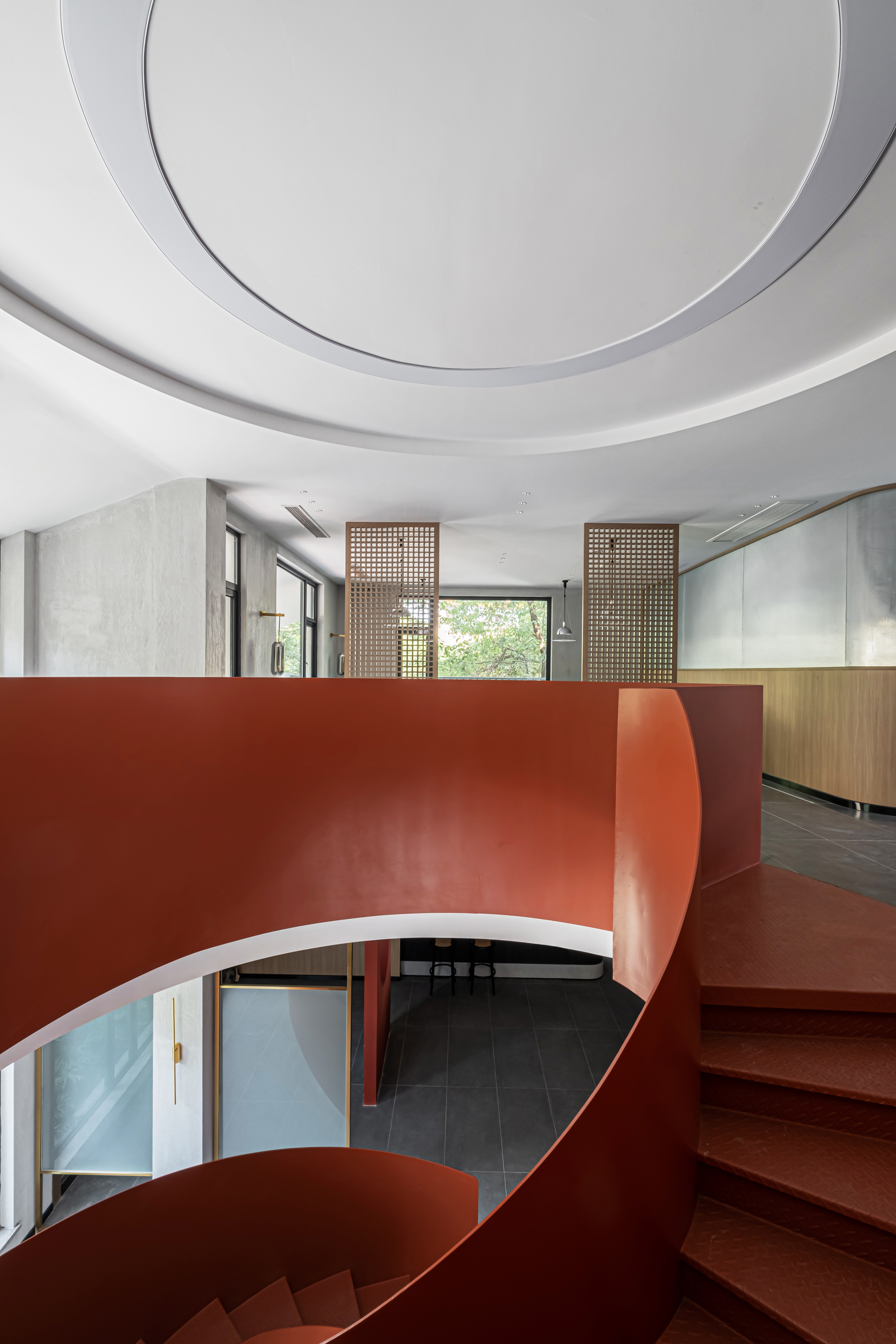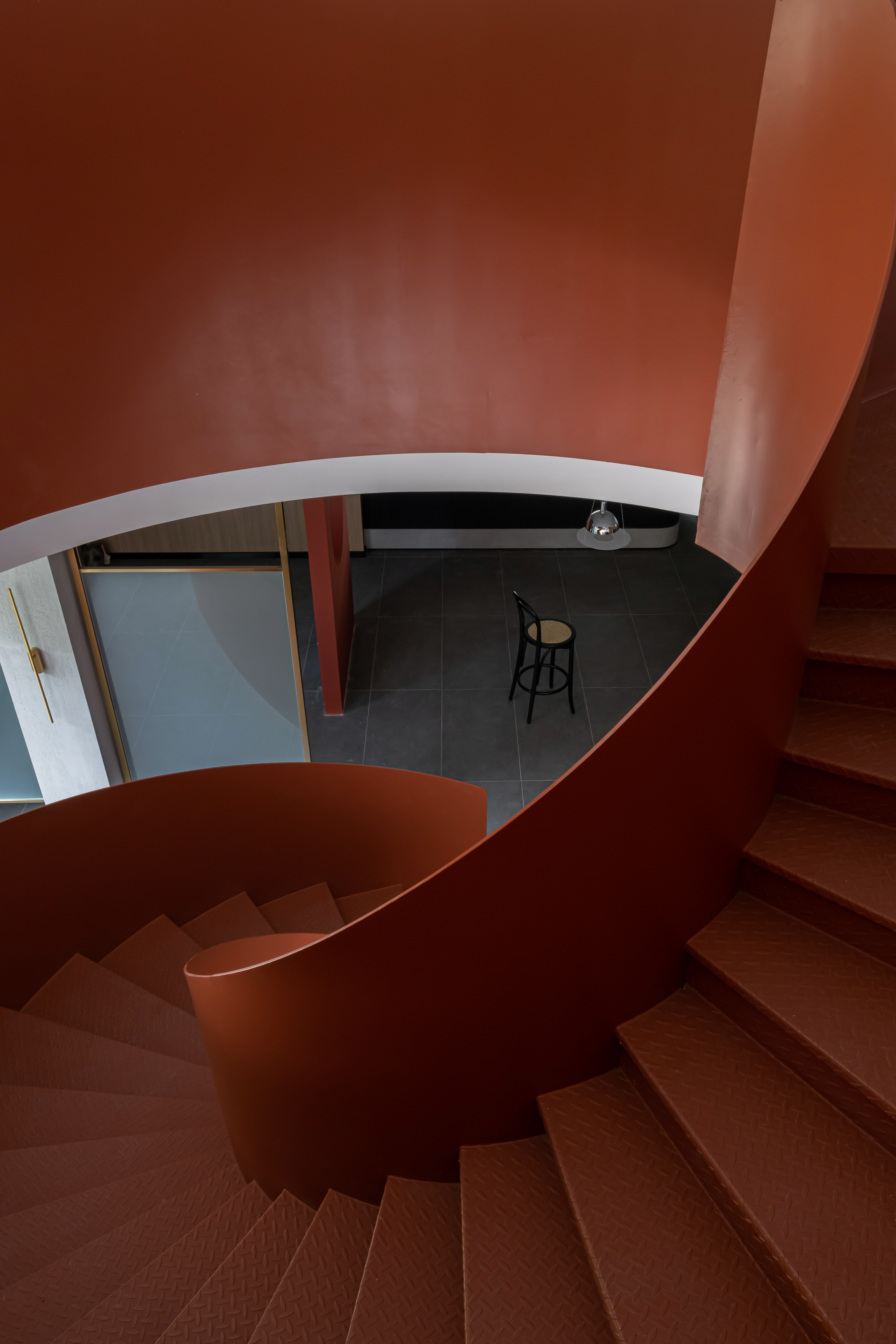 ②设计将功能与展示相融合,让弧形楼梯成为便捷的空间使用装置的同时,也作为一个空间亮度放置于靠近窗户的区域。 -