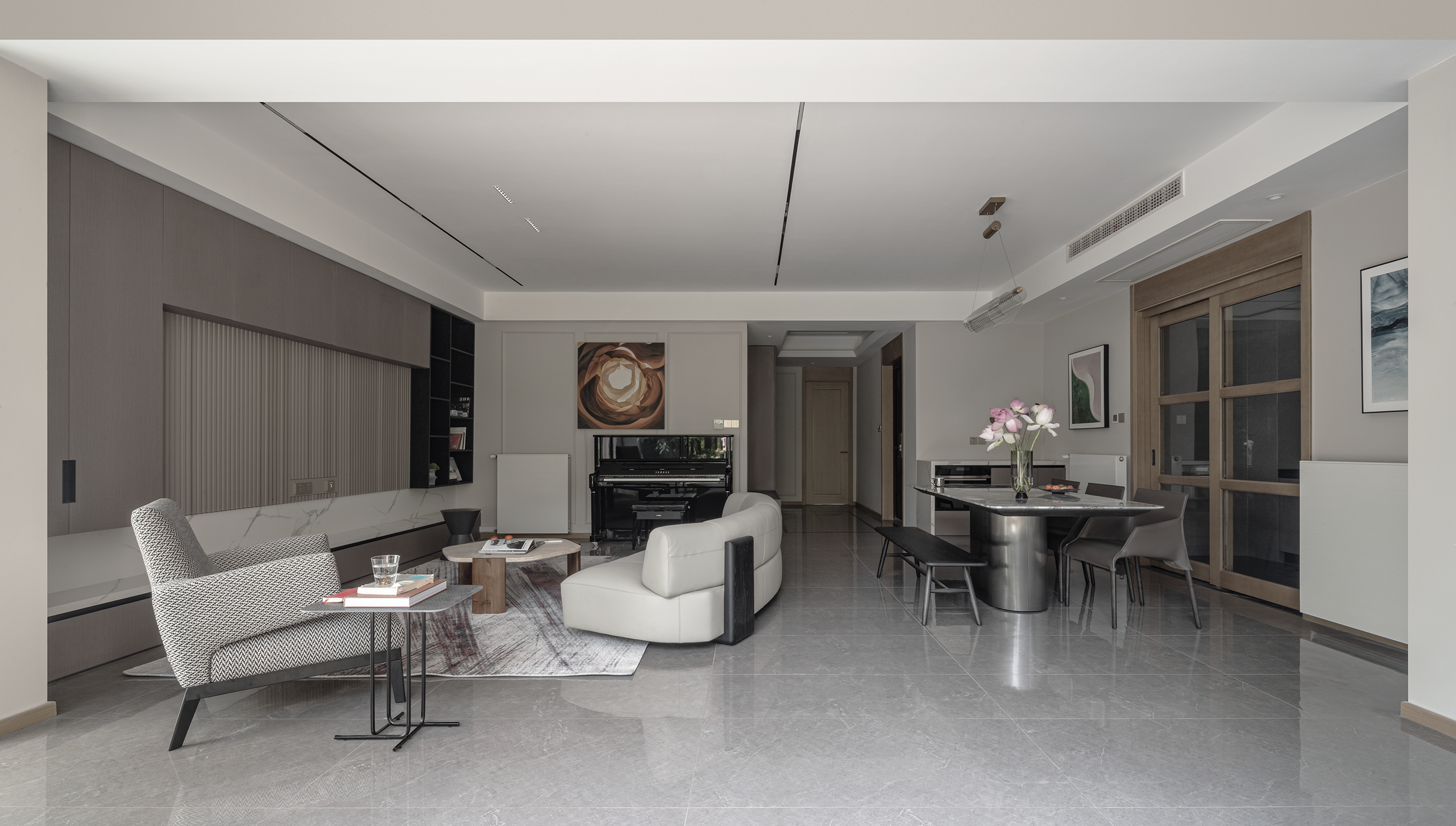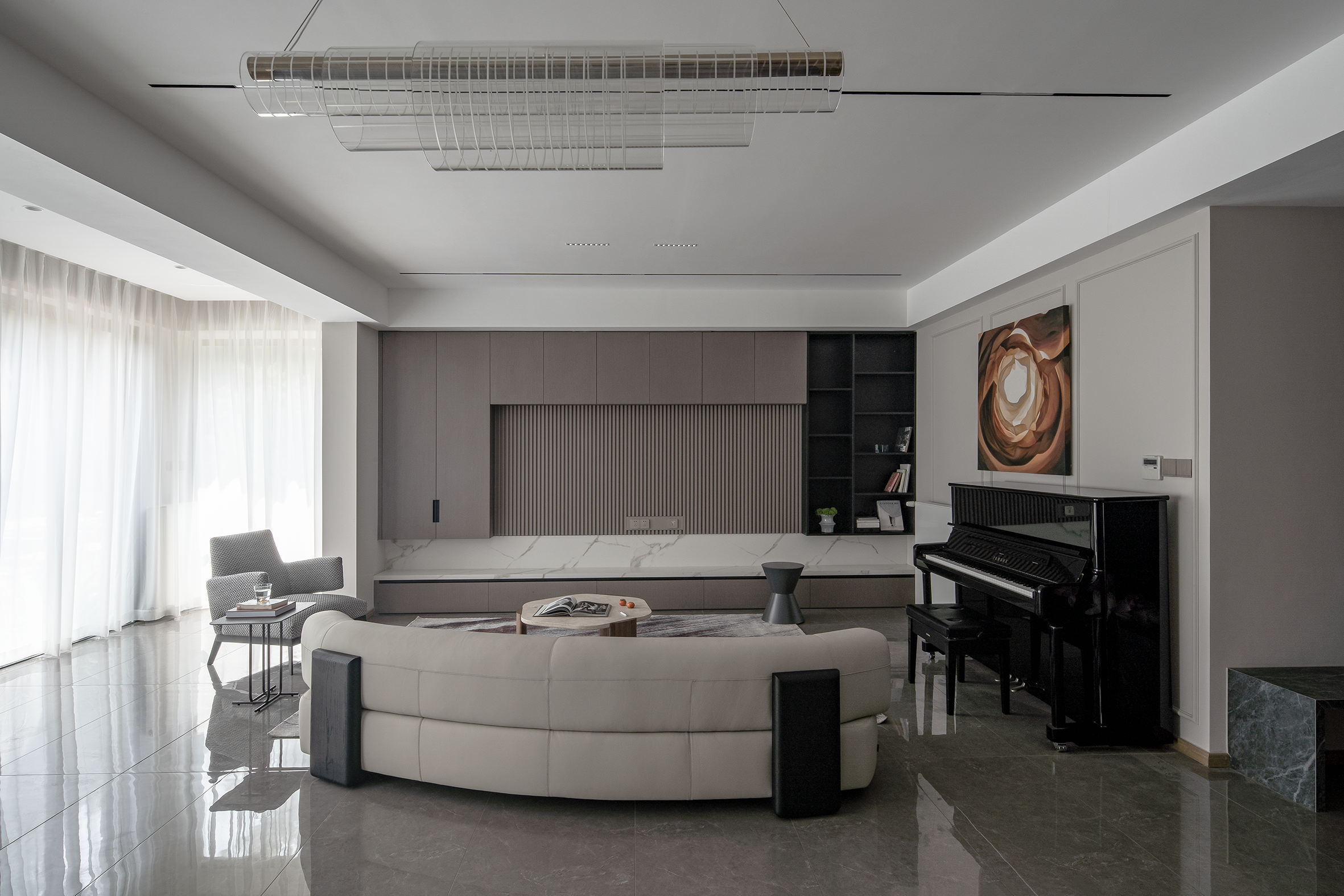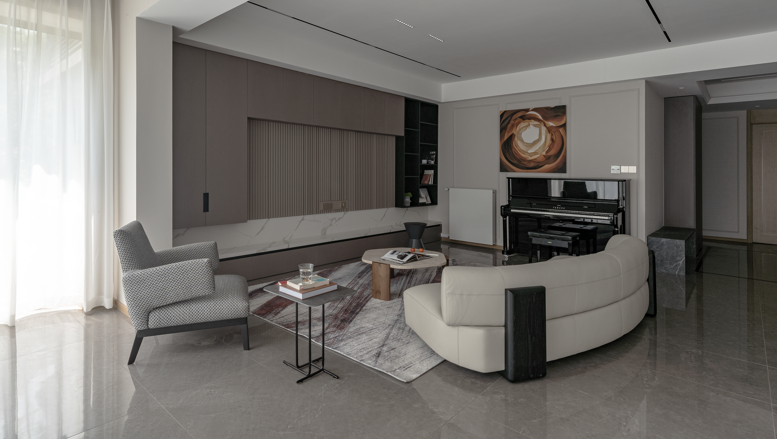 不仅能满足男主在客厅放置钢琴的需求,也可以满足小朋友日常玩耍活动部分,还让女主希望的一家人其乐融融在空间里面的有效互动更具有氛围感。