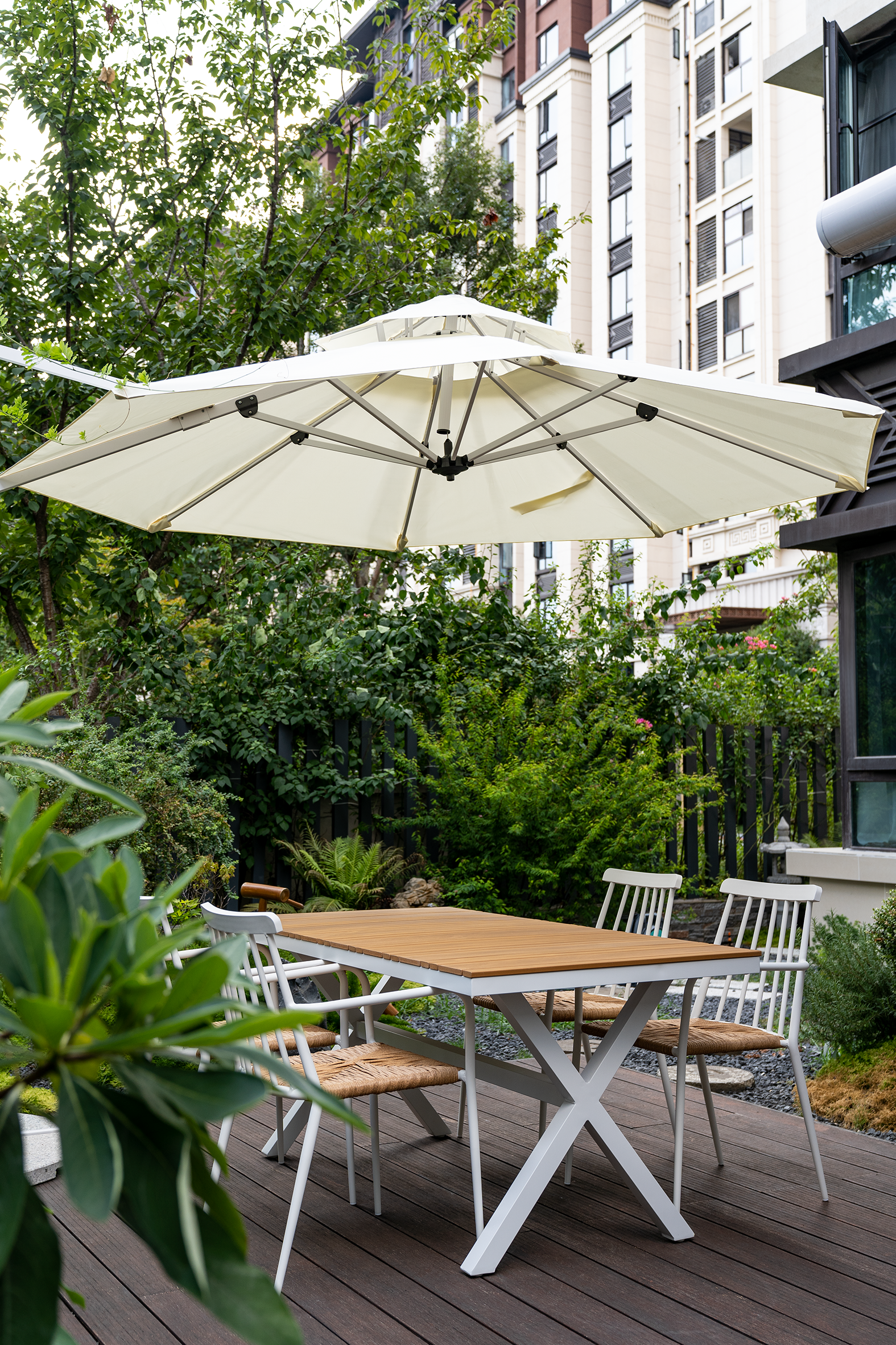 花园是指种植花木供游玩休息的场所,所以本案在充分分析花园现状以及倾听业主诉求后,把花园重塑定位于家庭活动、亲朋聚会、亲子娱乐、花草种植、健身运动等集于一体的多功能、立体化而富有禅意的现代化花园。