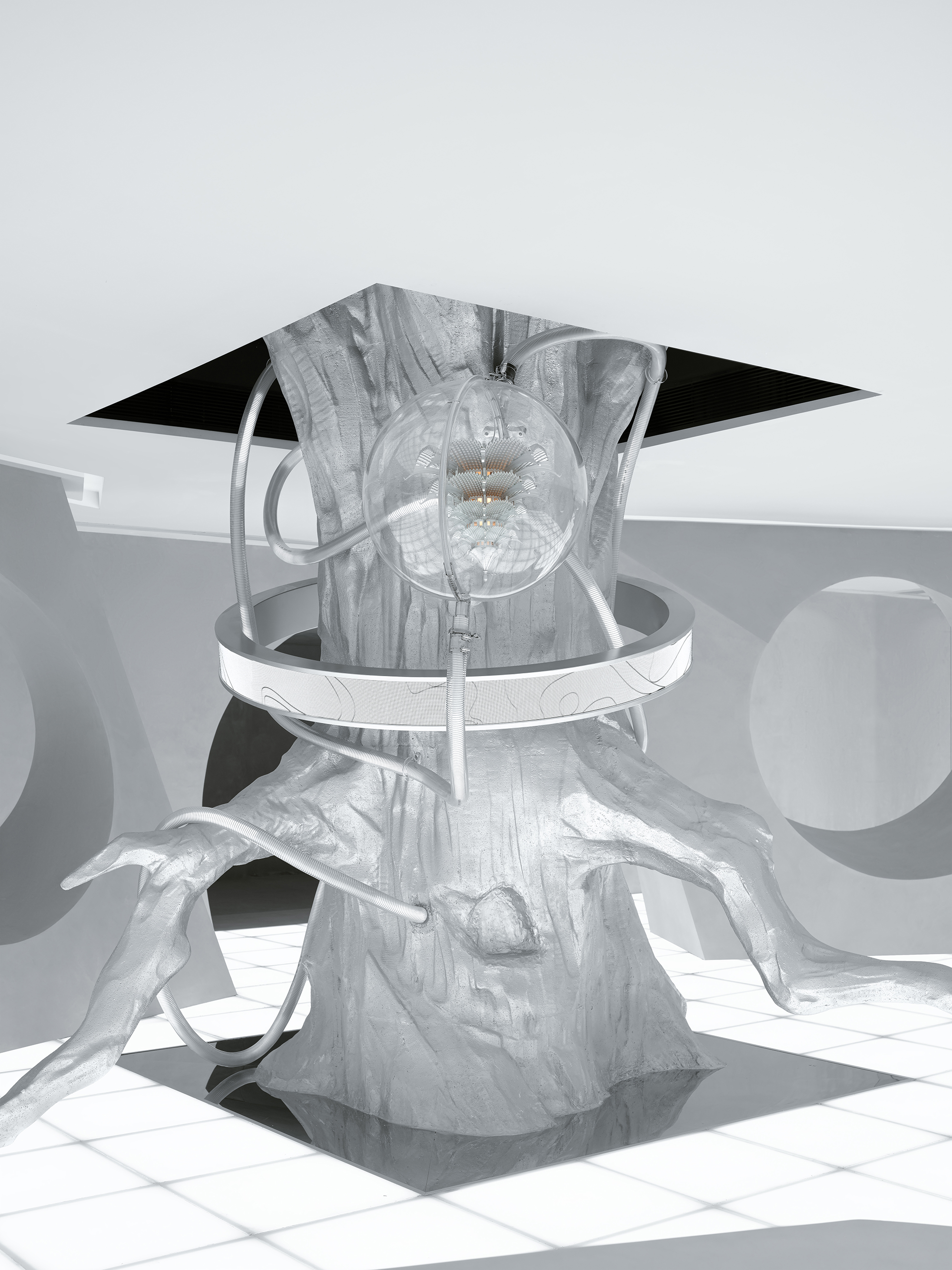 空间布局:为了塑造异托邦的游览效果,在空间用一些艺术性手段吸引玩家的注意。玩家的视线会被空间中央的“遗憾之树”吸引,并带着一种好奇和探索的情绪继续前行。