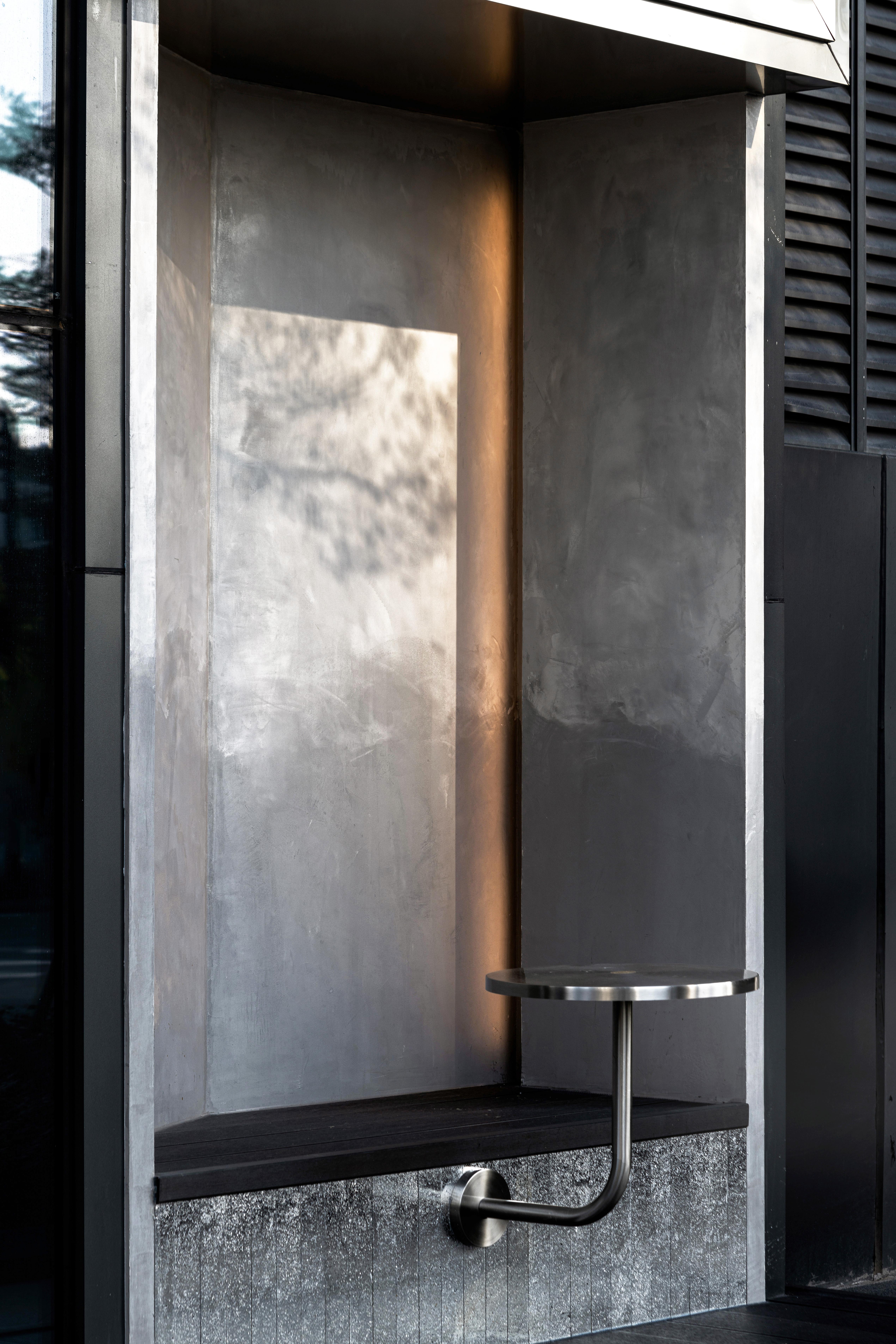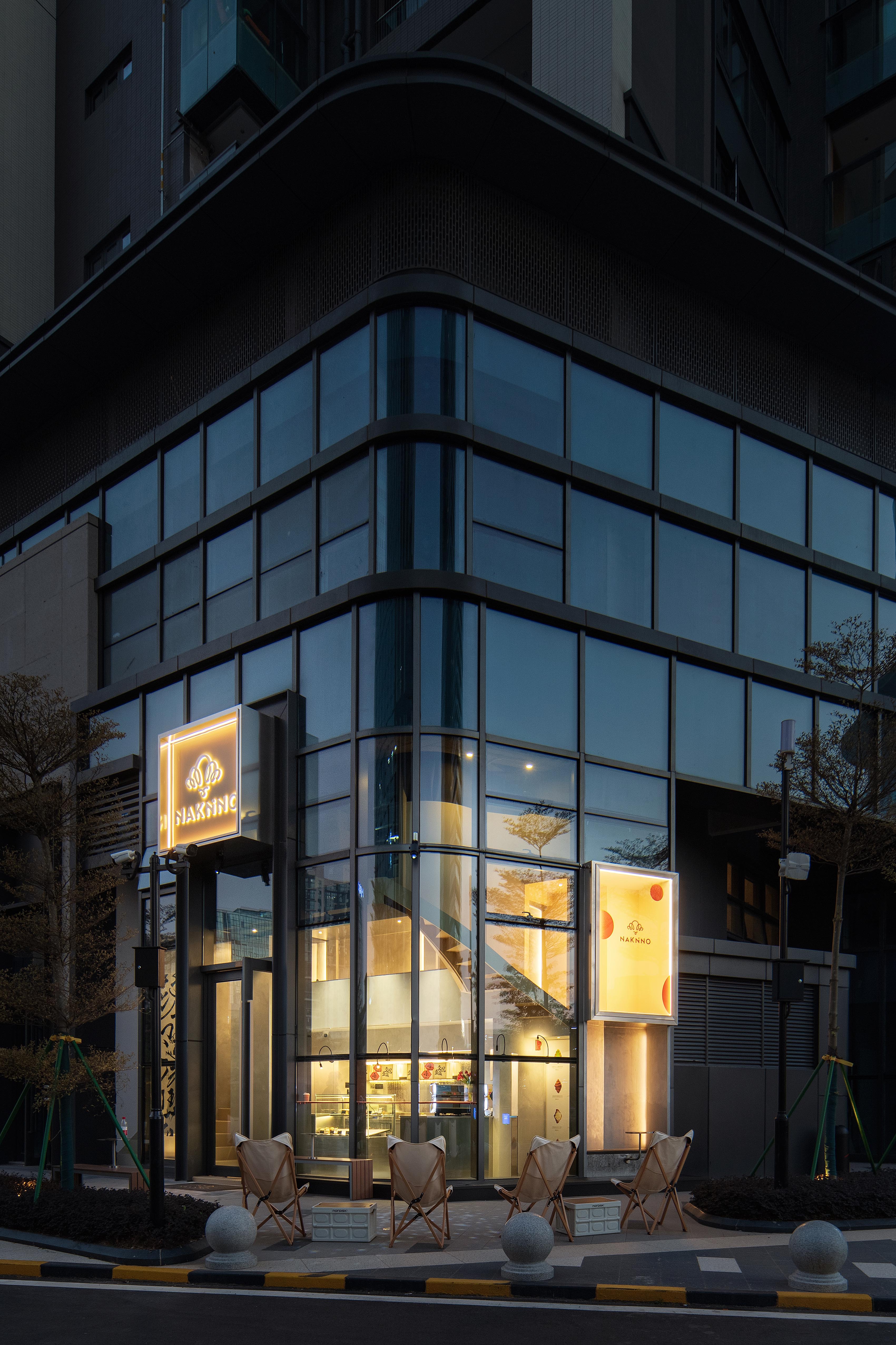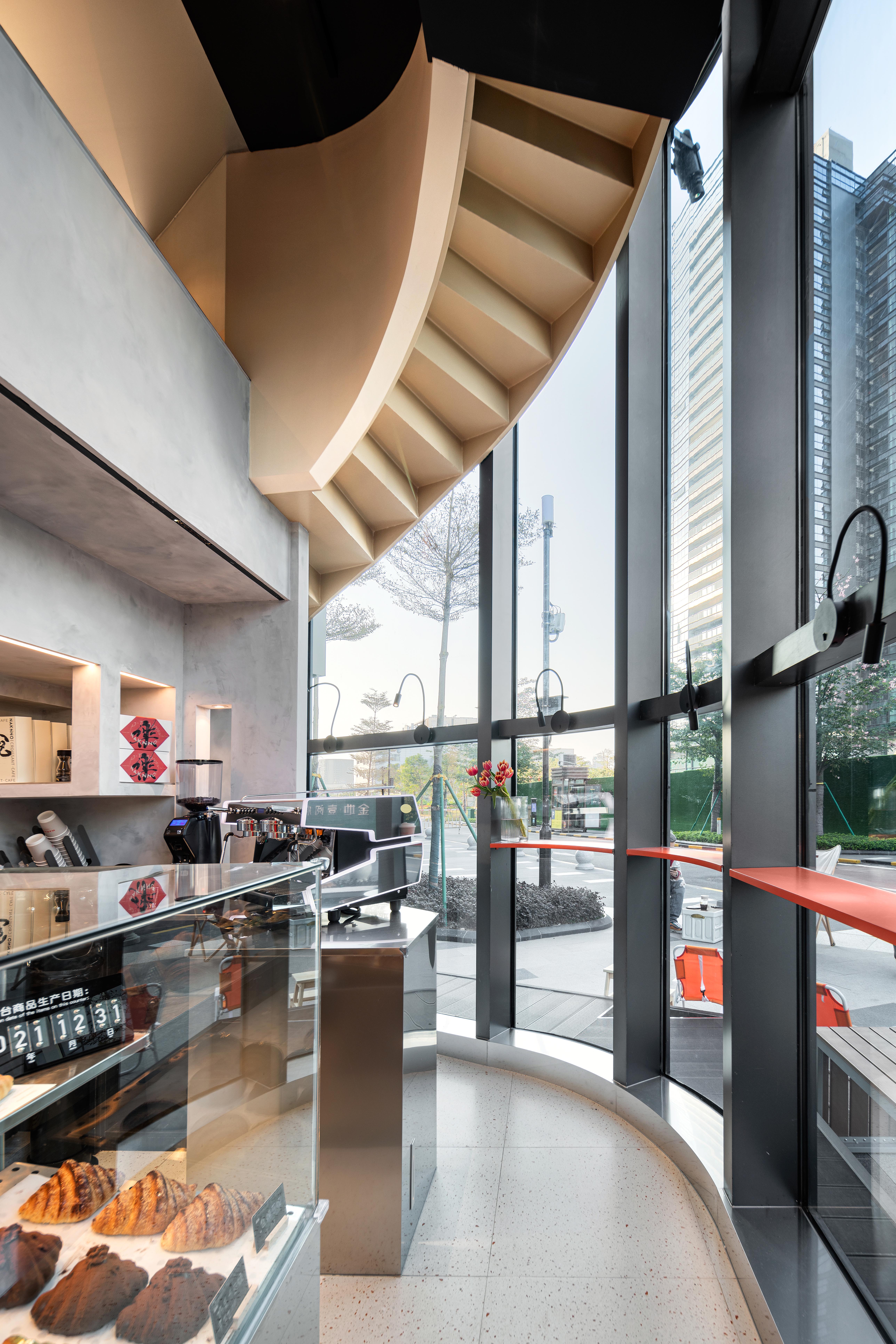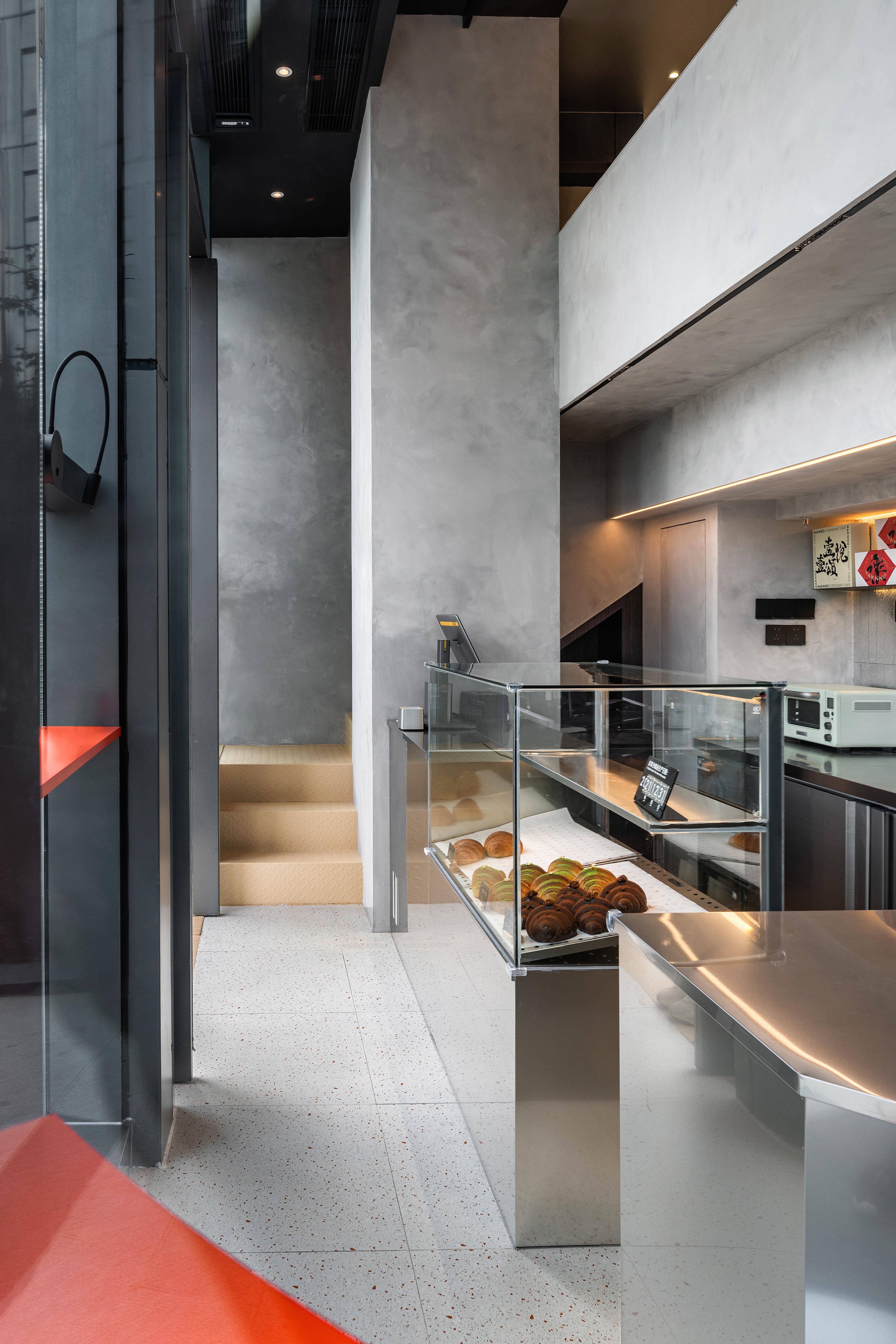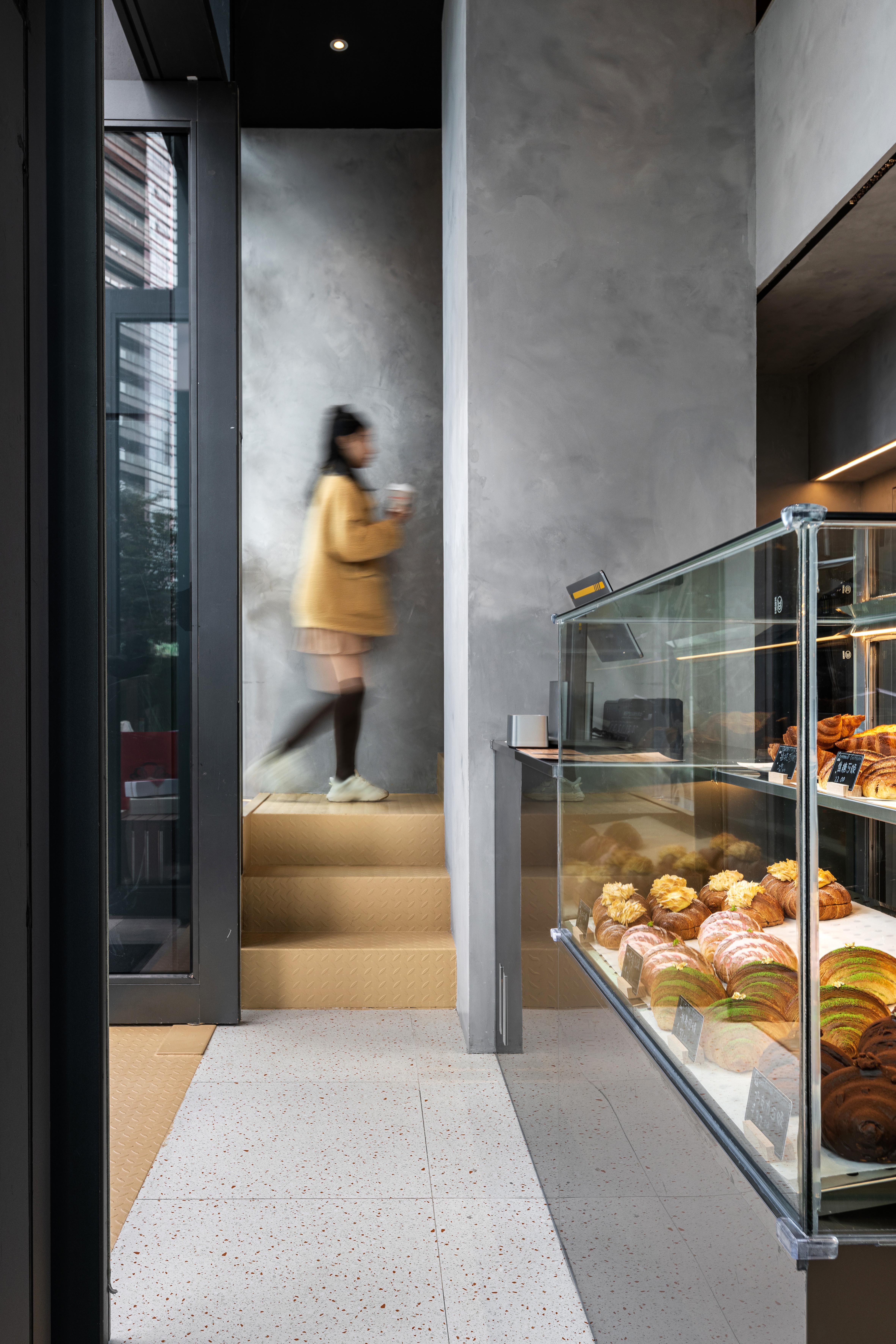 设计选材:因为这个空间是个主打牛角包的烘焙店,最终牛角包才是空间的主角,空间本身应该内敛低调、突出产品,所以我们通过极简主义处理手法,摈弃多余的造型,让NAKNINO回归到最本质的光,空间,体量,结构。从而到达设计师内心深处的追求。