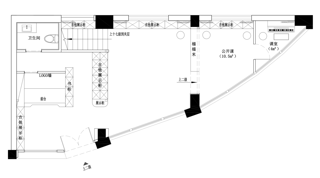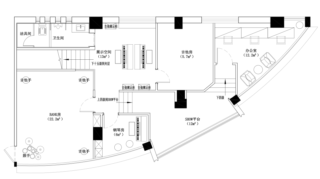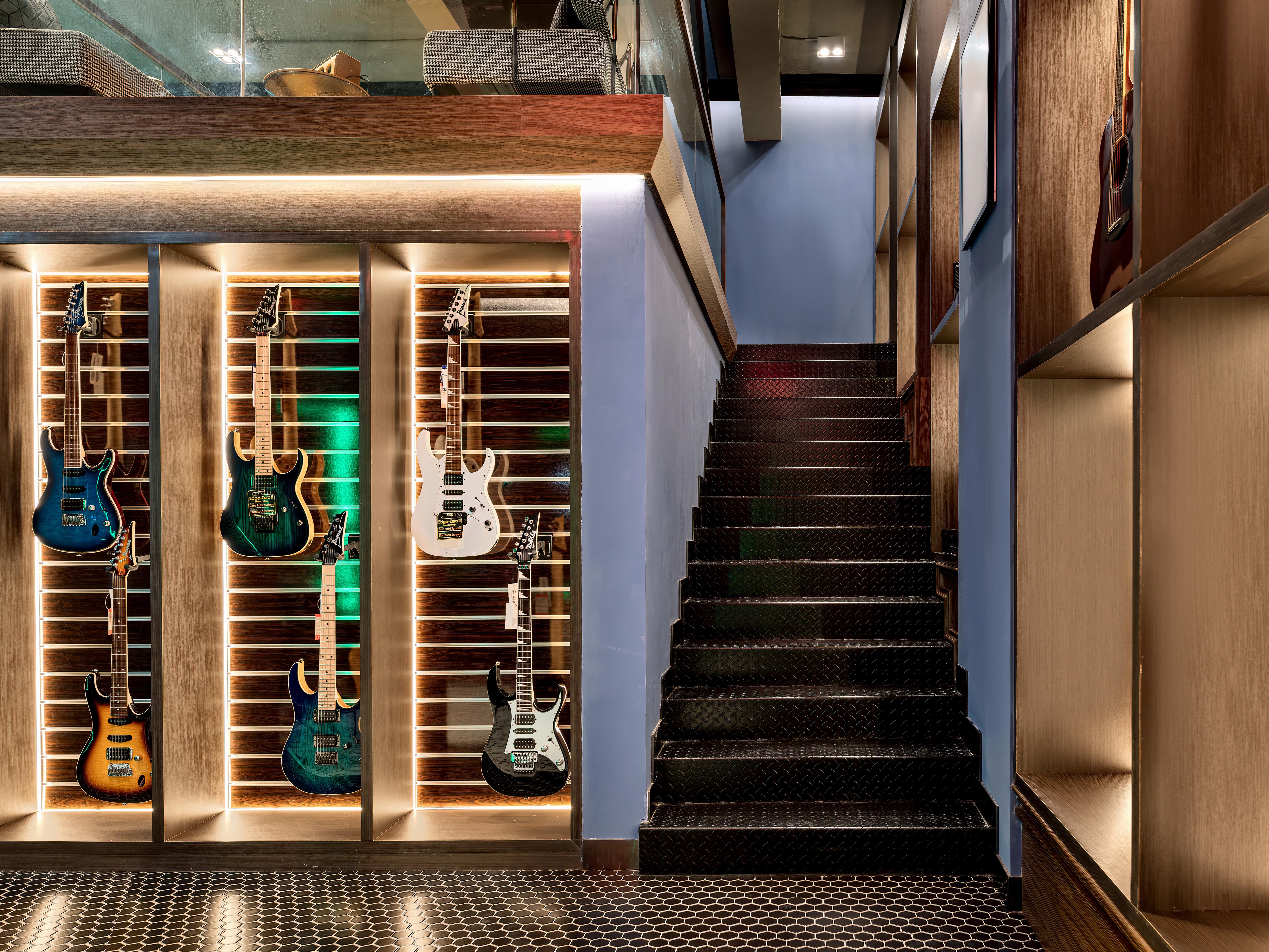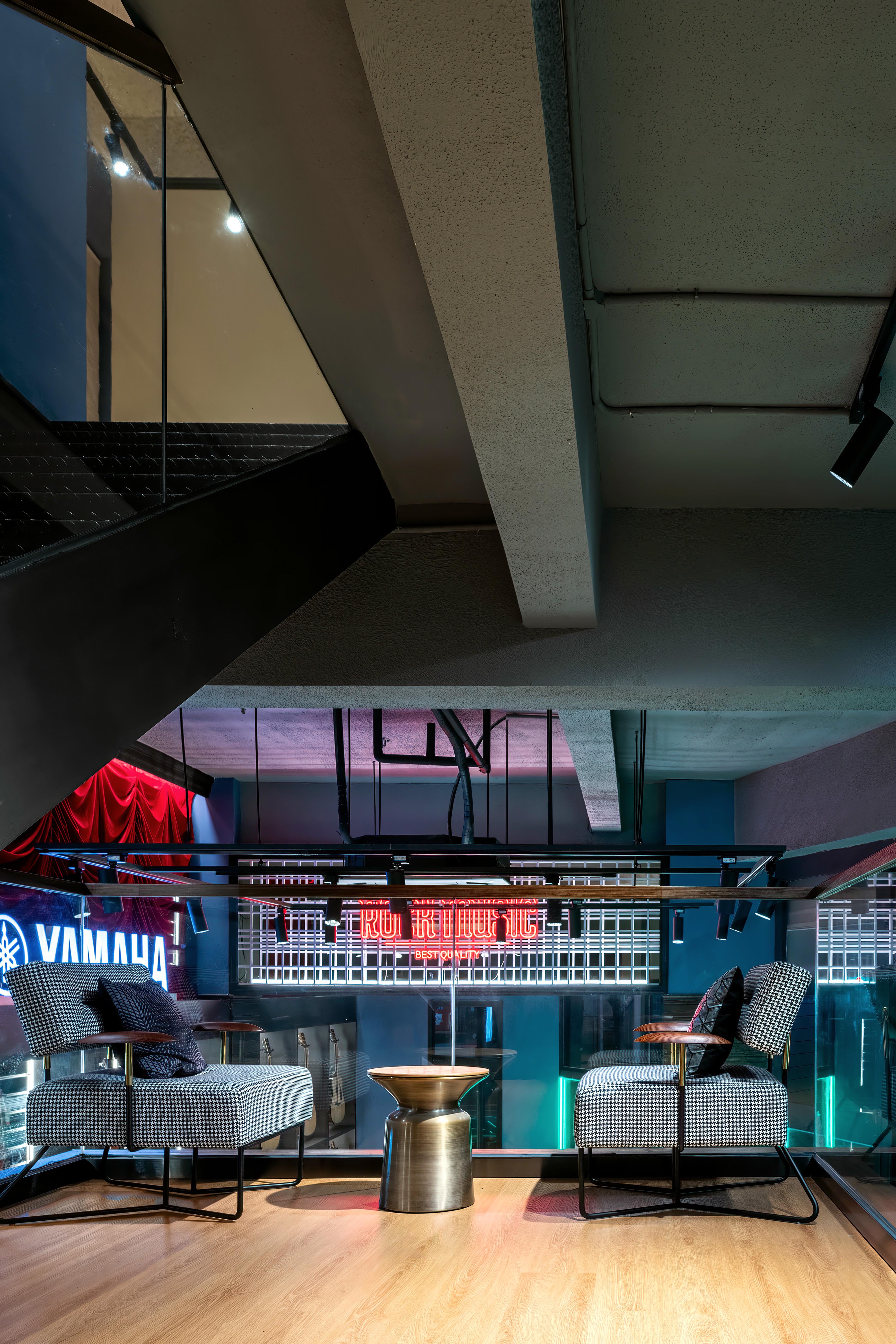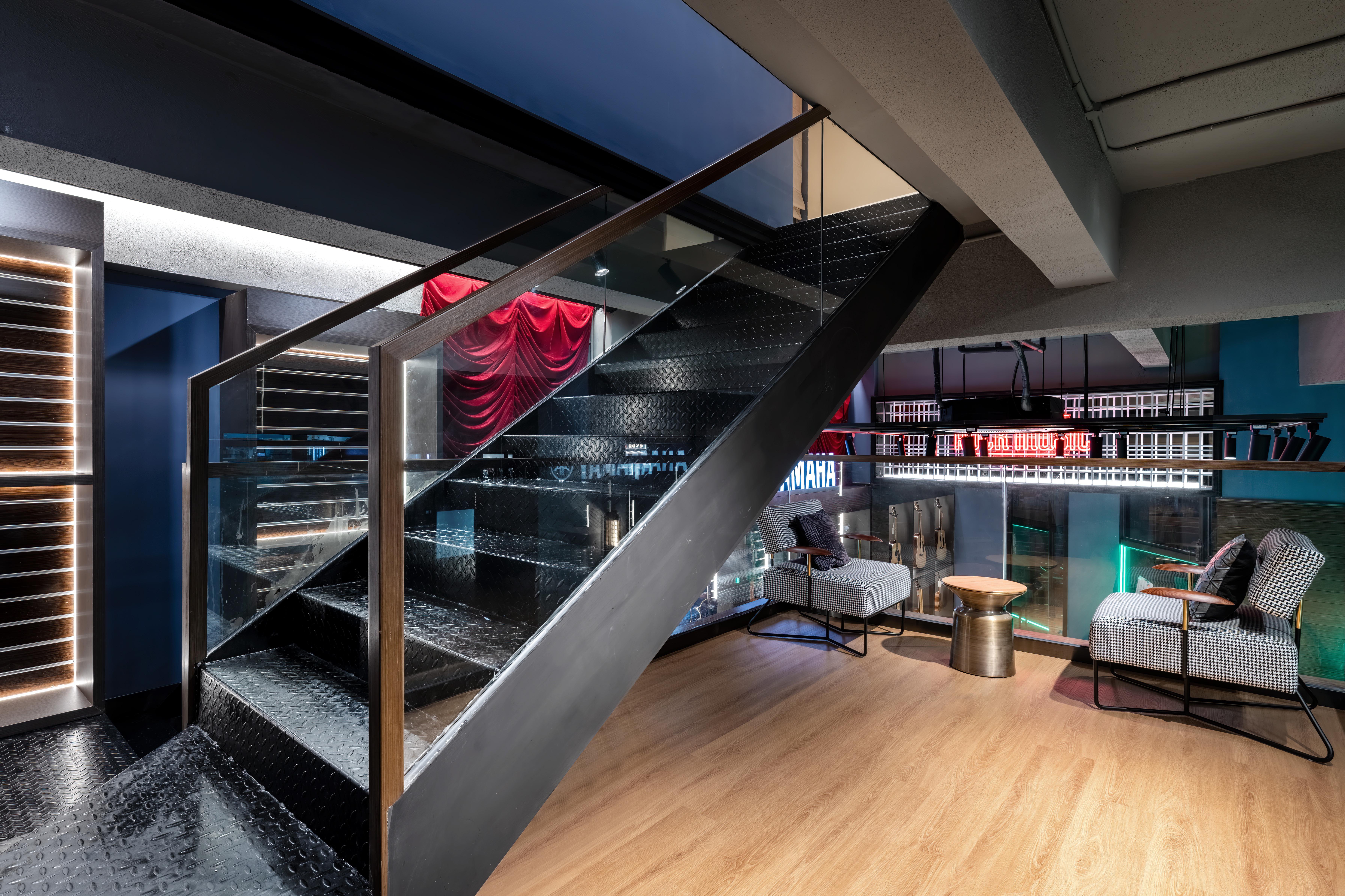 空间意境:本案位于一条比较旧的商业街道当中。正在设计希望打造一个充满迷人诱惑力的空间里,通过色彩与光影的流动感,展现出所有材质在运用上的多元混合魅力,透过独特的装置结构,塑造出一个社区与音乐相融的独有之境。