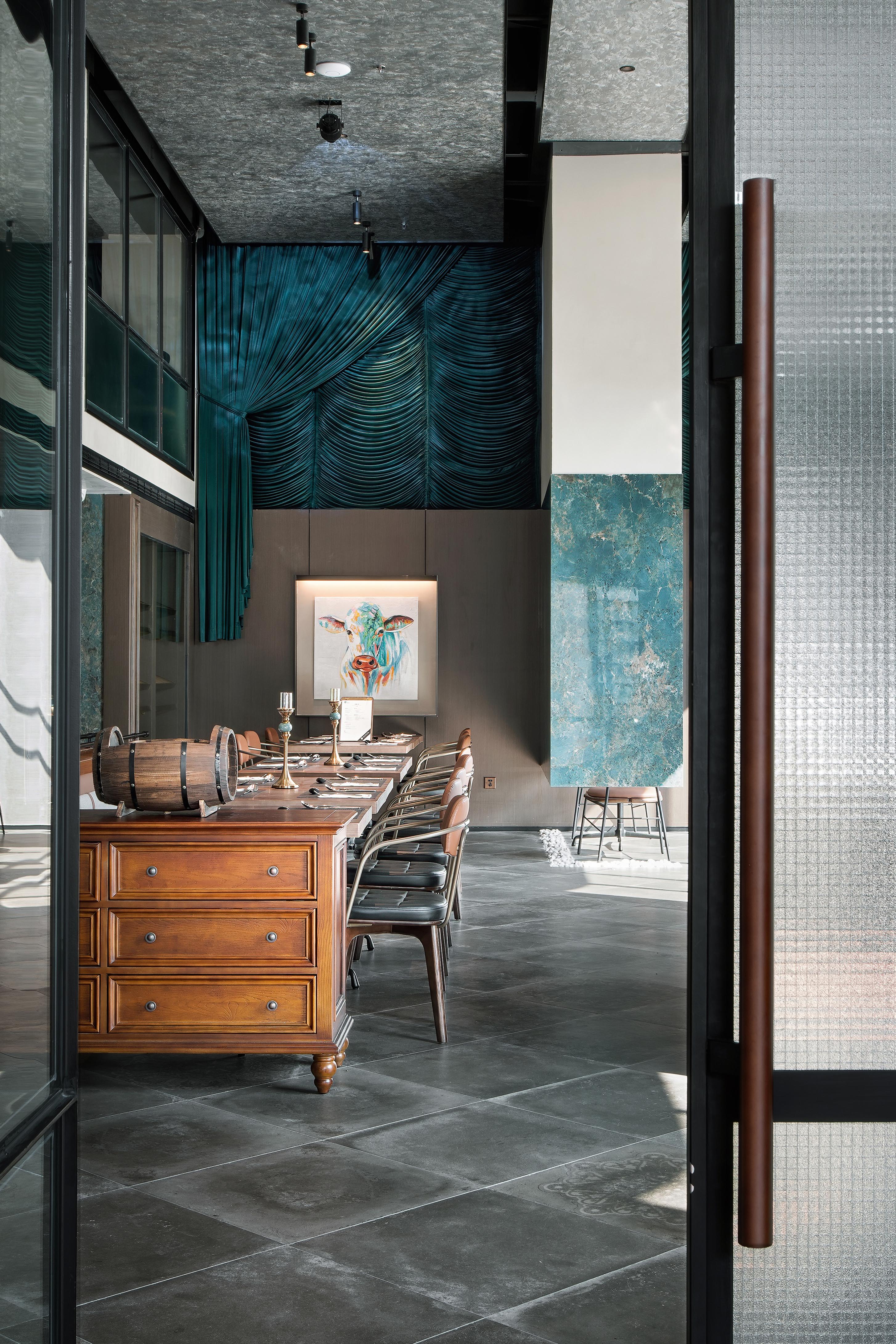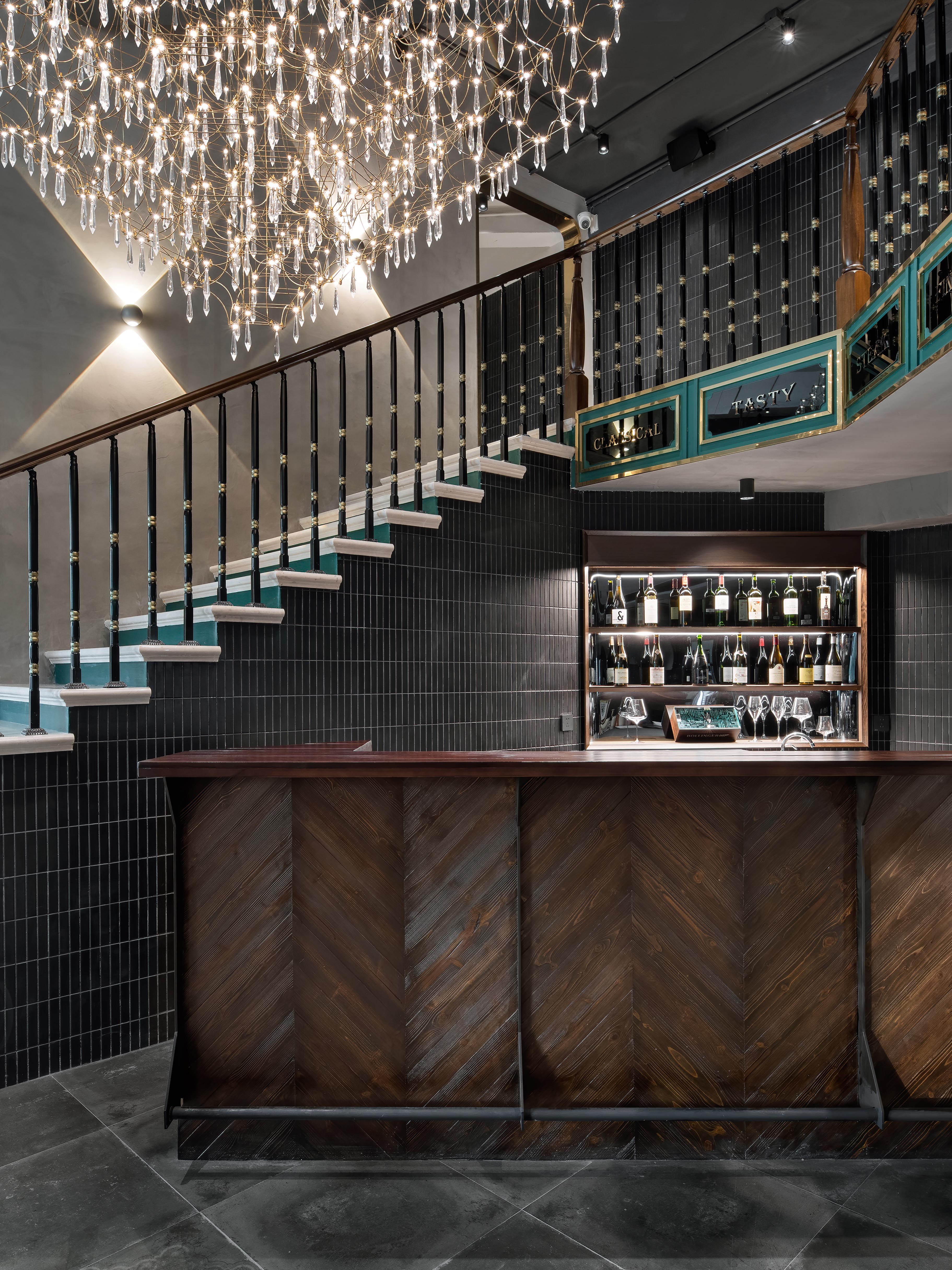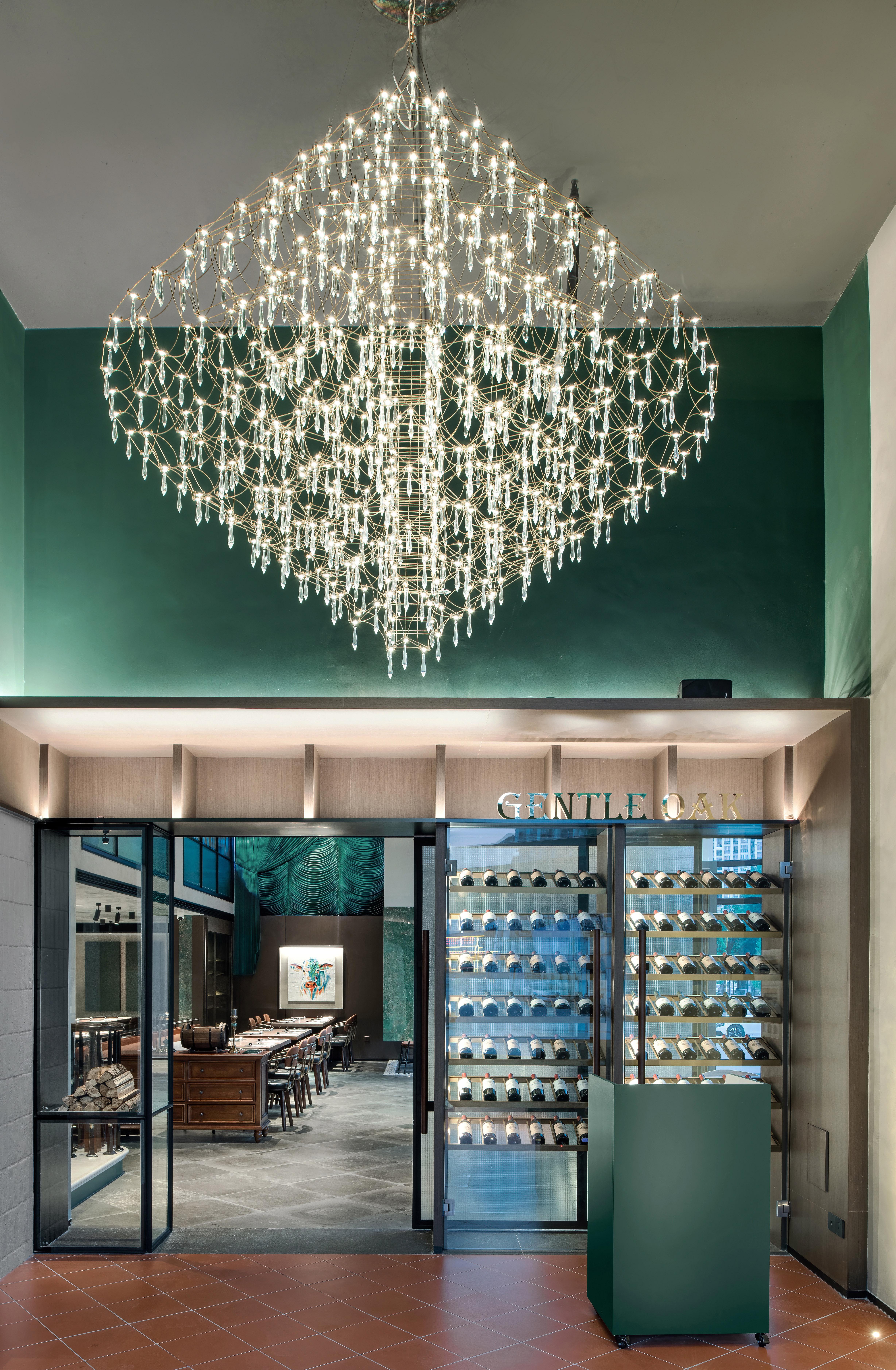 空间布局:一个藏酒丰富的酒窖,像是进入浪漫世界前的引子,富有仪式感。「Gentle oak 橡」的老板对红酒非常有研究,并且从事红酒相关的行业多年,所以,我们根据老板的产业结构,特别制作了「前置的酒窖」引导客人在晚餐开始之前选择一瓶适合的红酒,同时也方便老板和朋友分享他对于每种红酒的心得。随后客人便继续带着收获的喜悦、适时的惊喜继续前进的步伐。