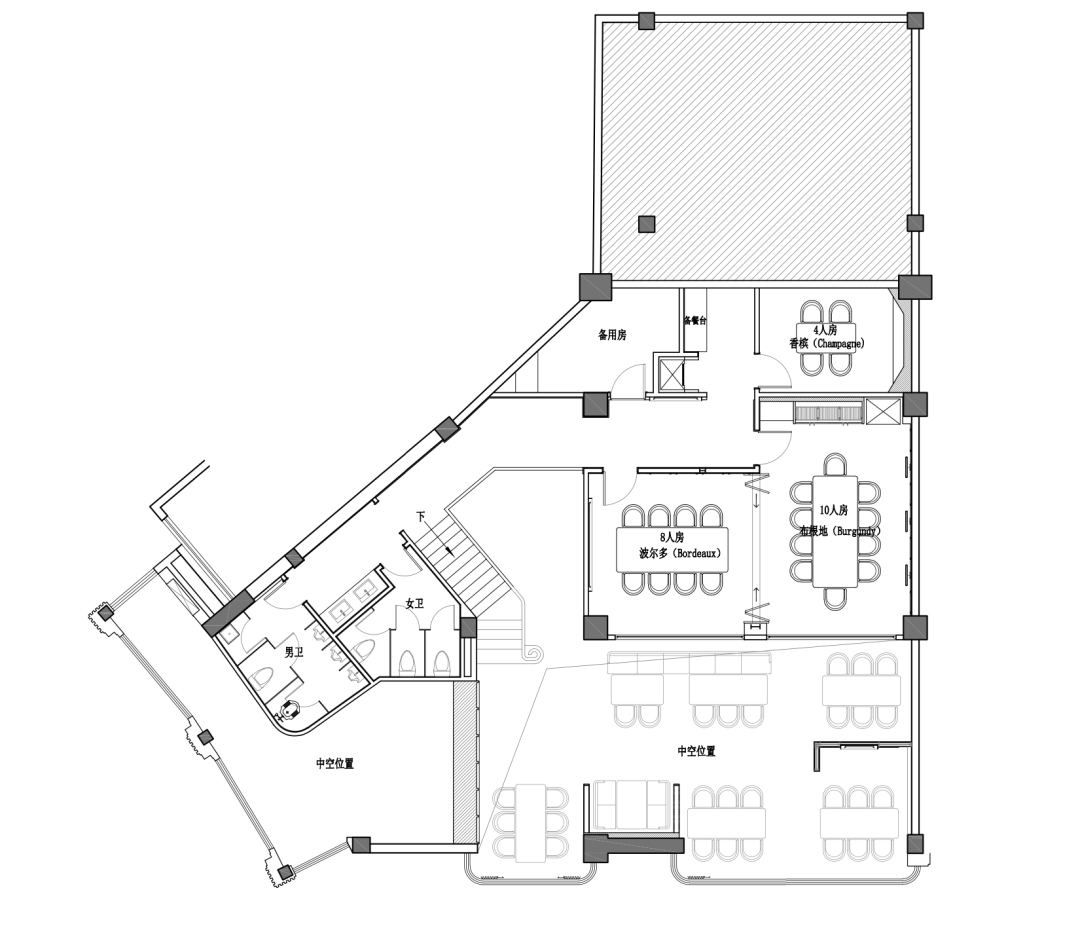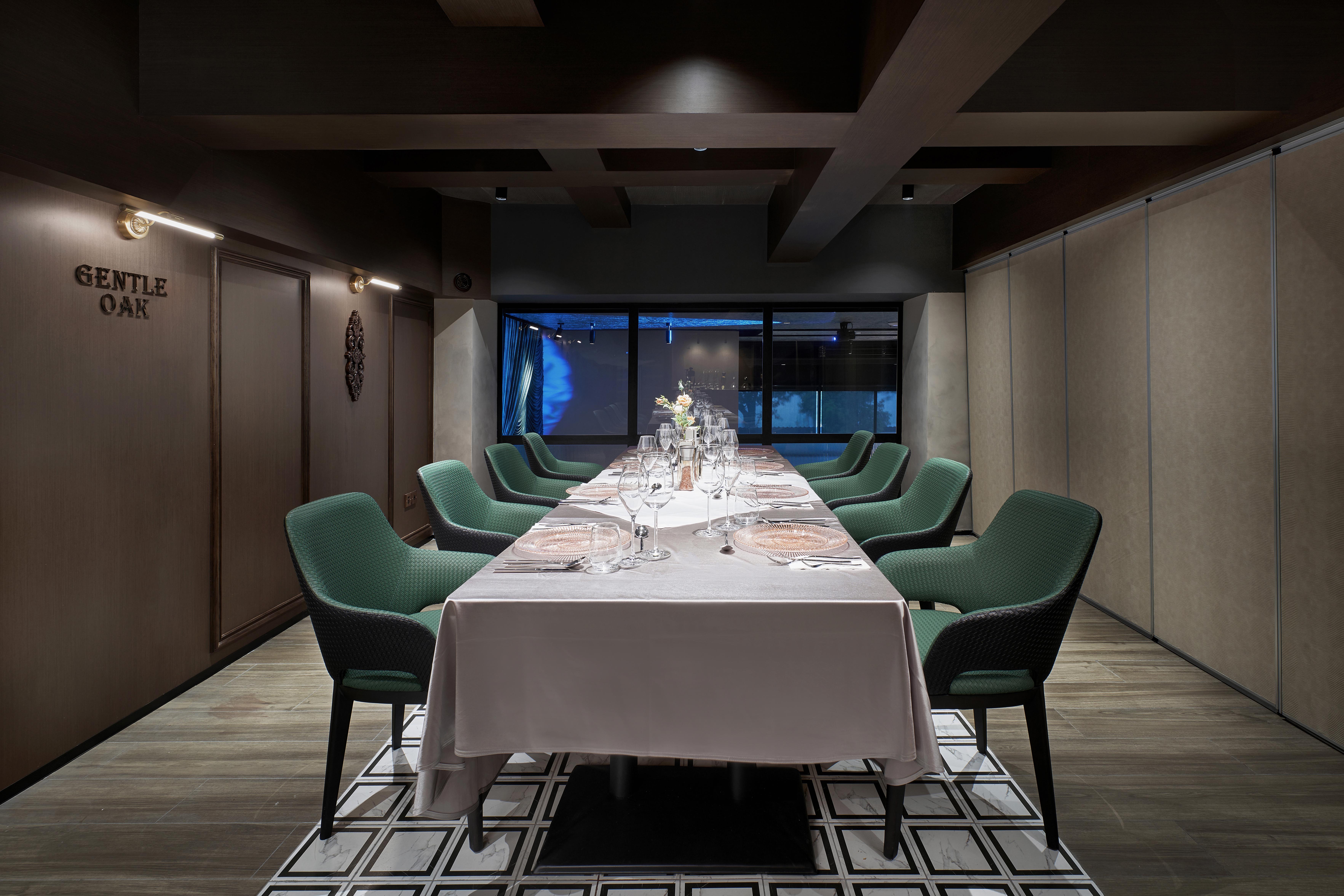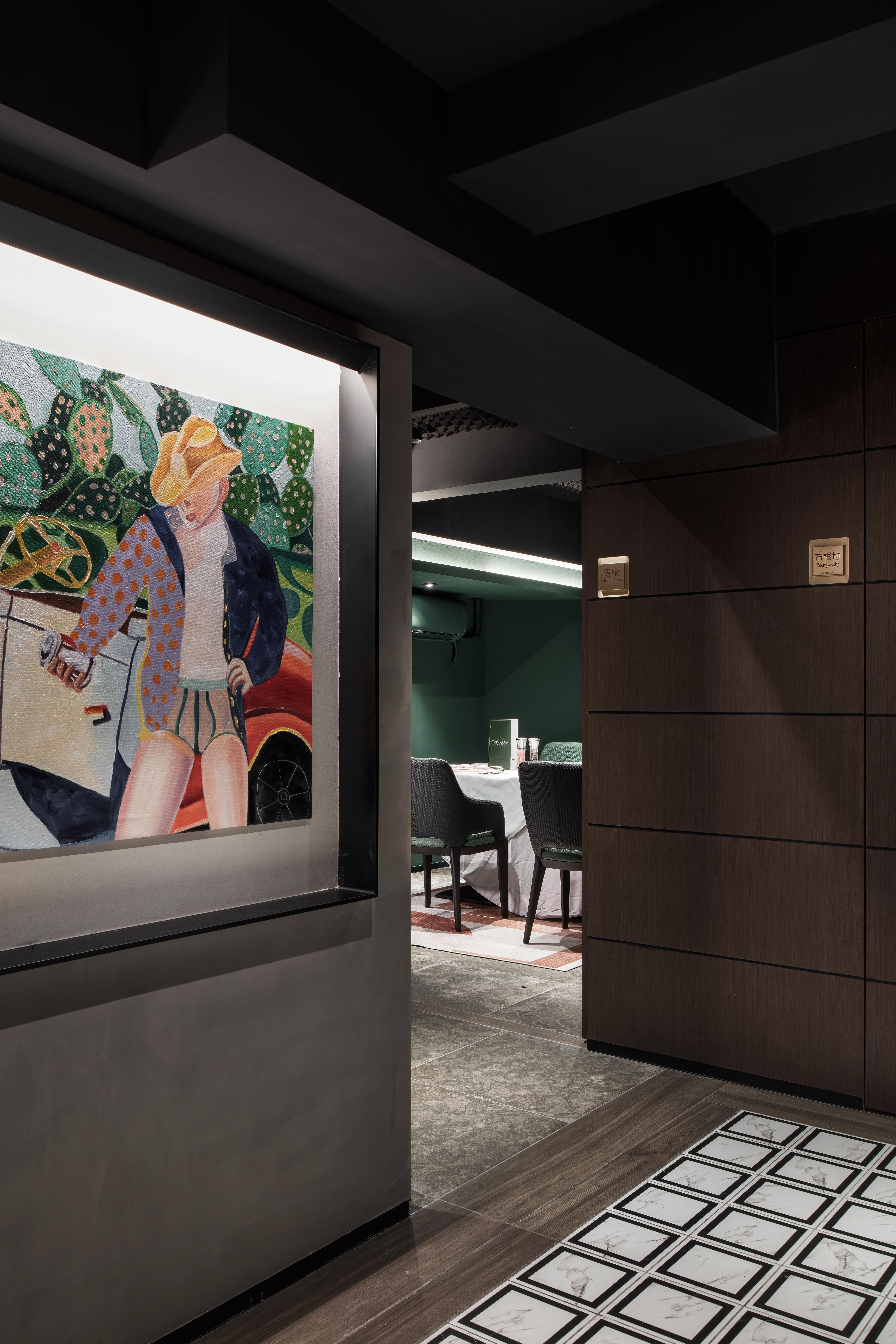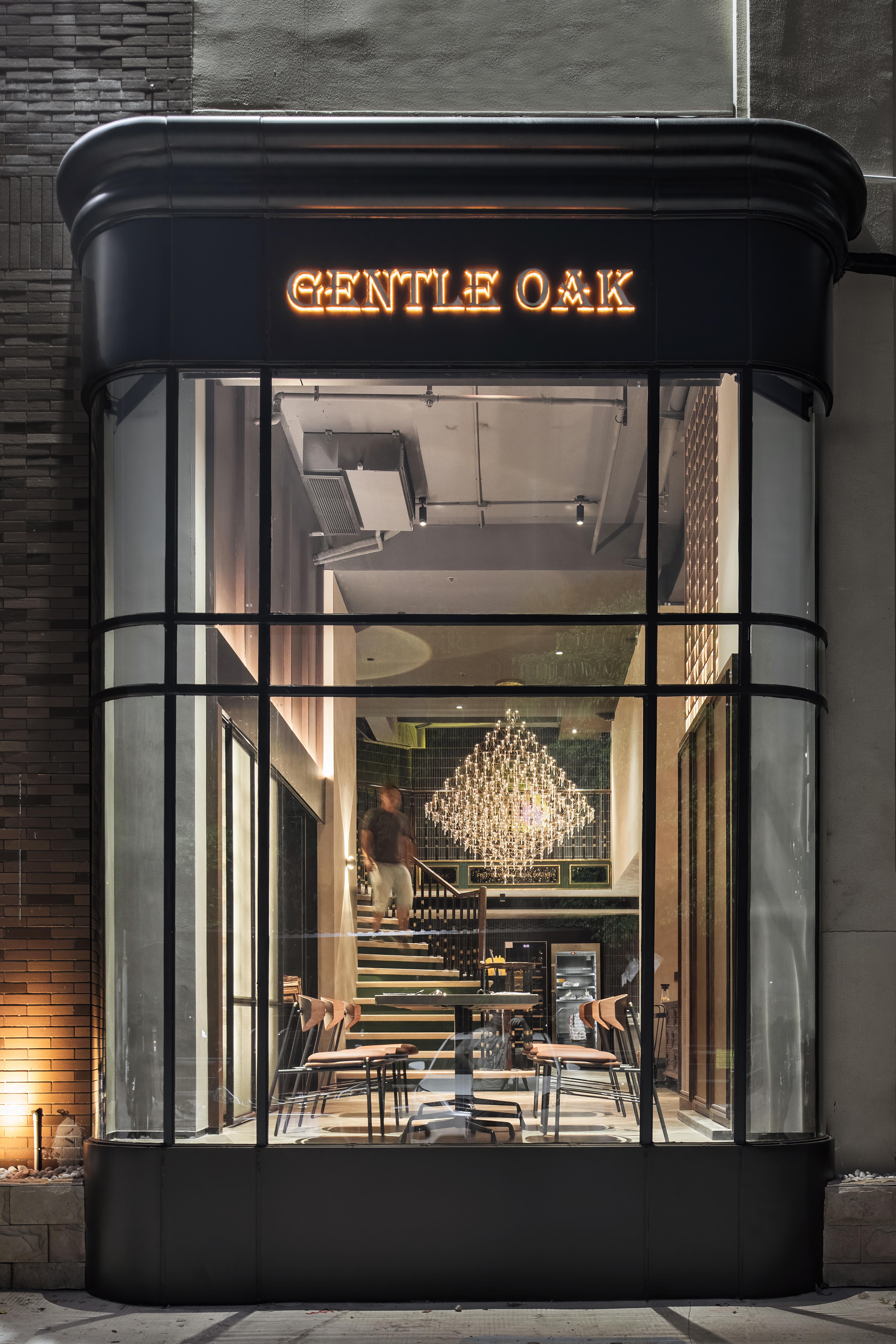 空间布局:一个藏酒丰富的酒窖,像是进入浪漫世界前的引子,富有仪式感。「Gentle oak 橡」的老板对红酒非常有研究,并且从事红酒相关的行业多年,所以,我们根据老板的产业结构,特别制作了「前置的酒窖」引导客人在晚餐开始之前选择一瓶适合的红酒,同时也方便老板和朋友分享他对于每种红酒的心得。随后客人便继续带着收获的喜悦、适时的惊喜继续前进的步伐。