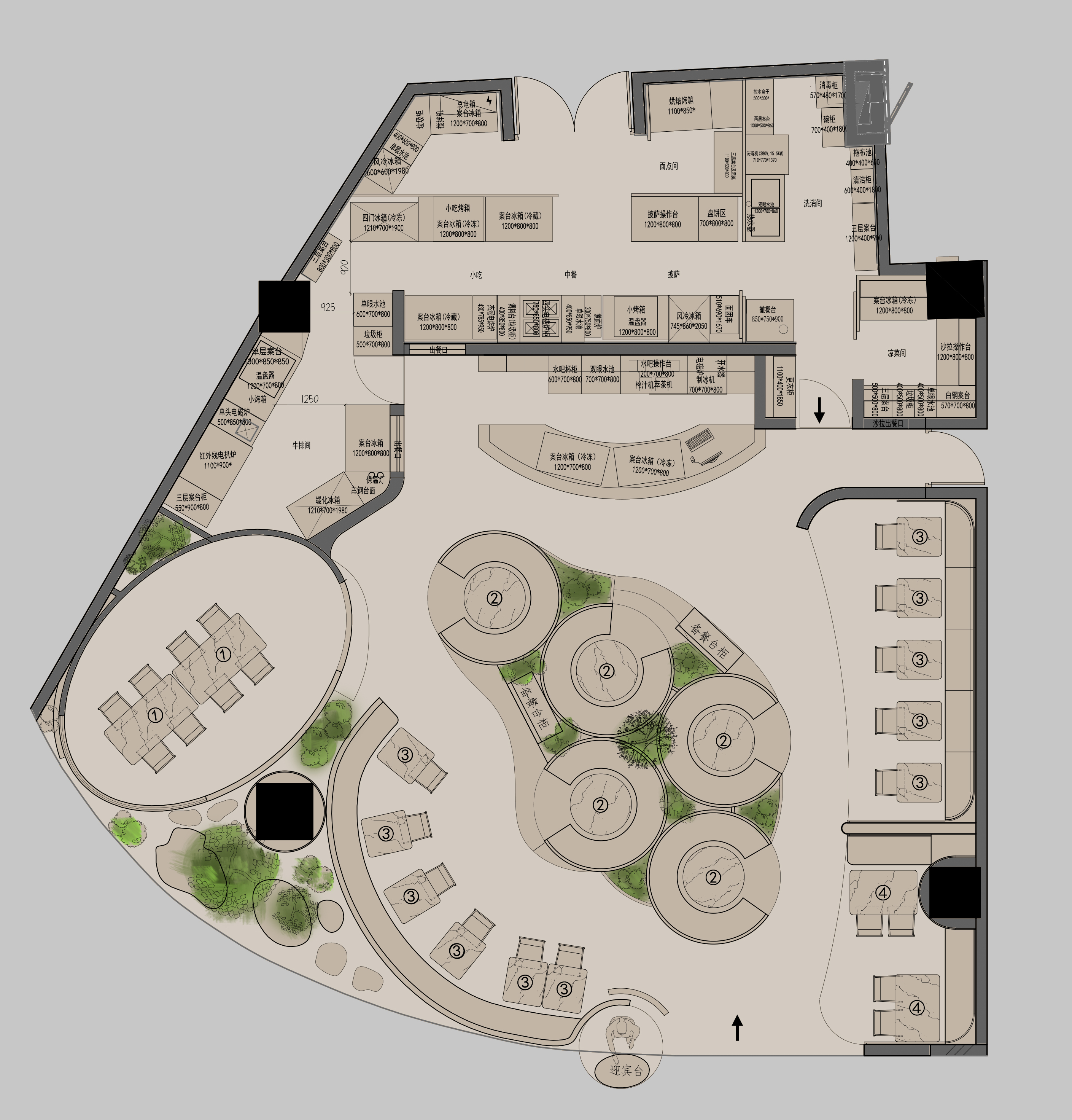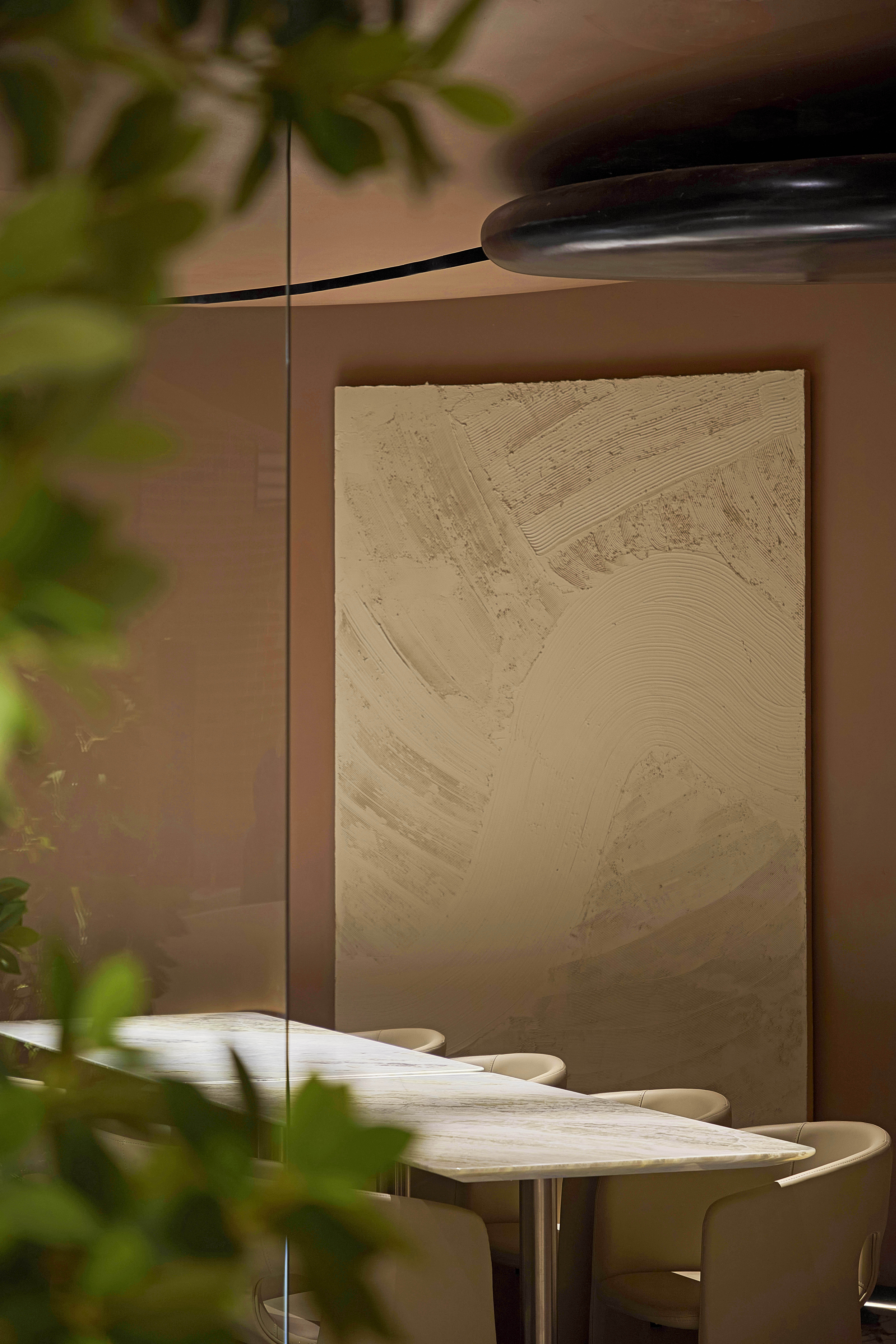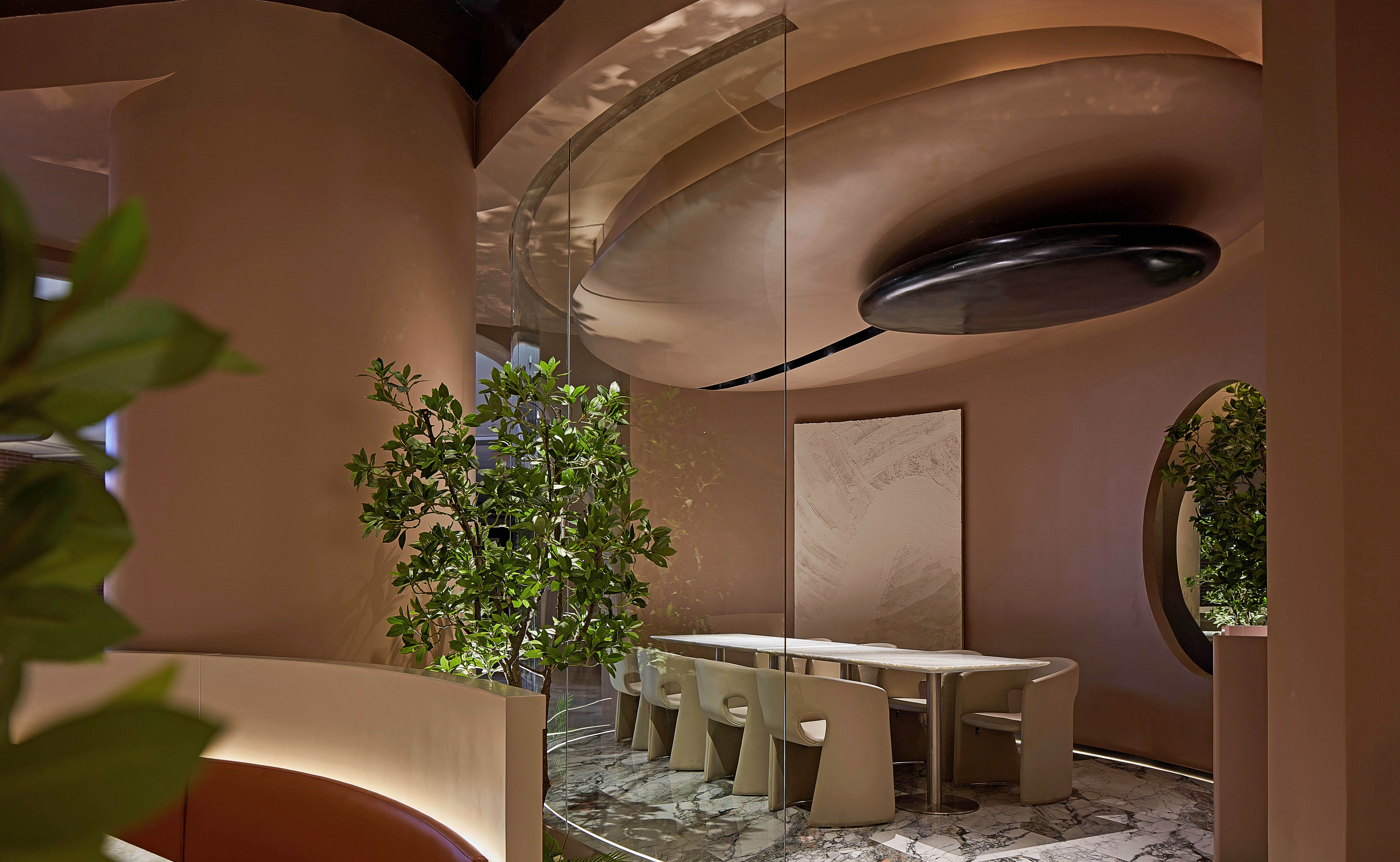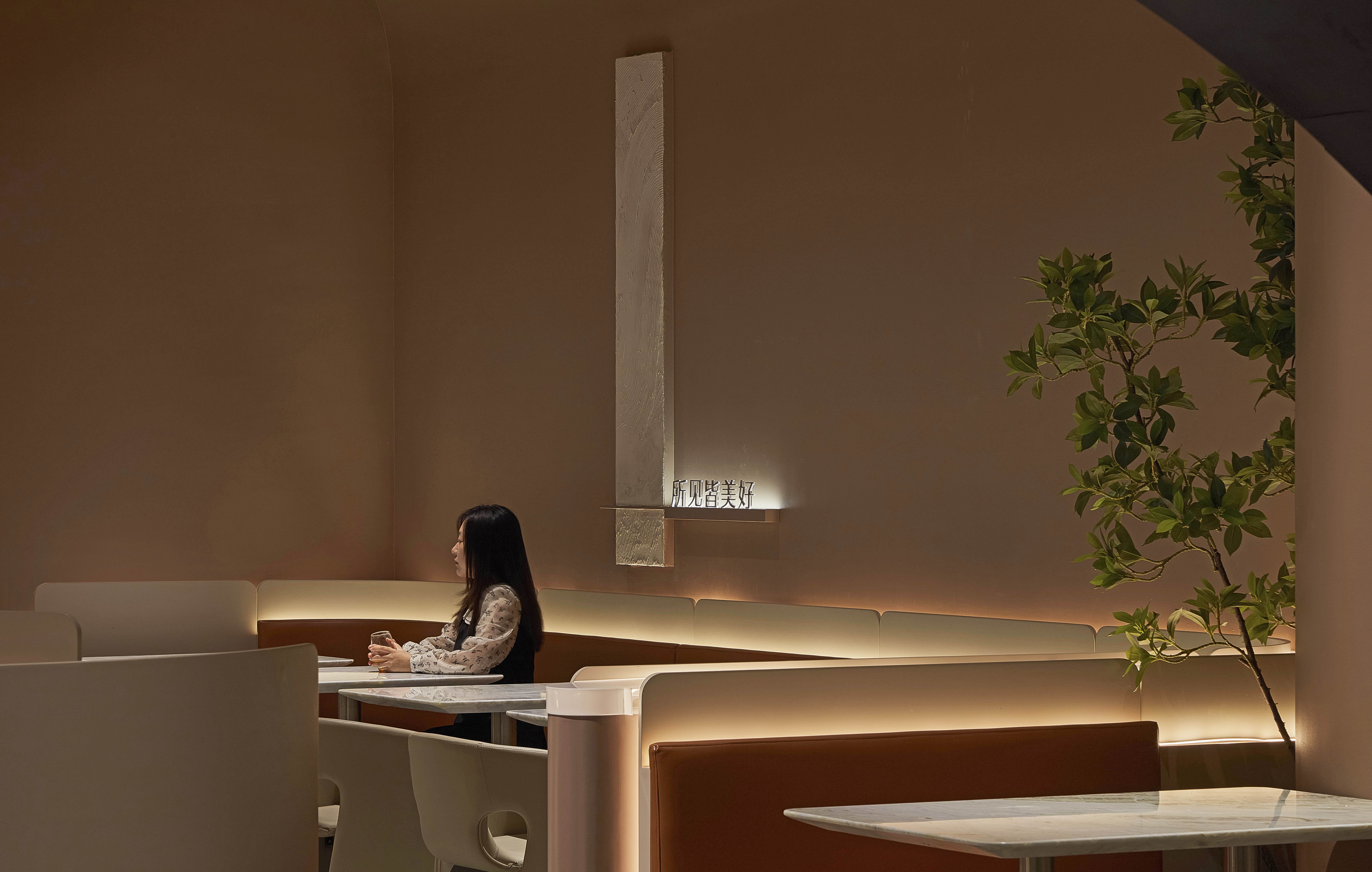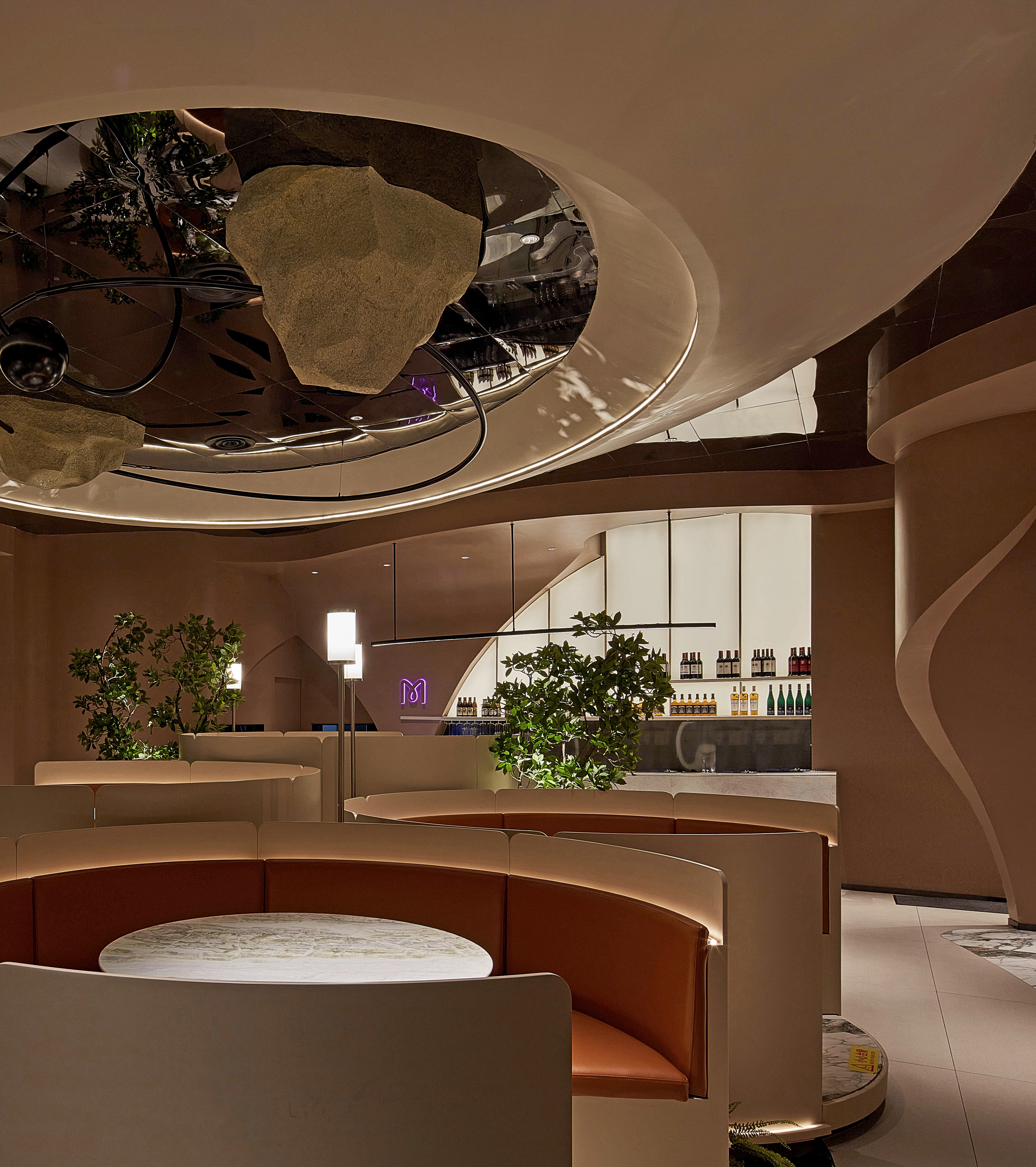 项目定位:抽象化的情感,转化为能够感知的空间,以曲线造型的感性与流动,为规整的餐厅空间带来变化,营造出一种深刻记忆中的视觉印象和心灵体验,直达心底。