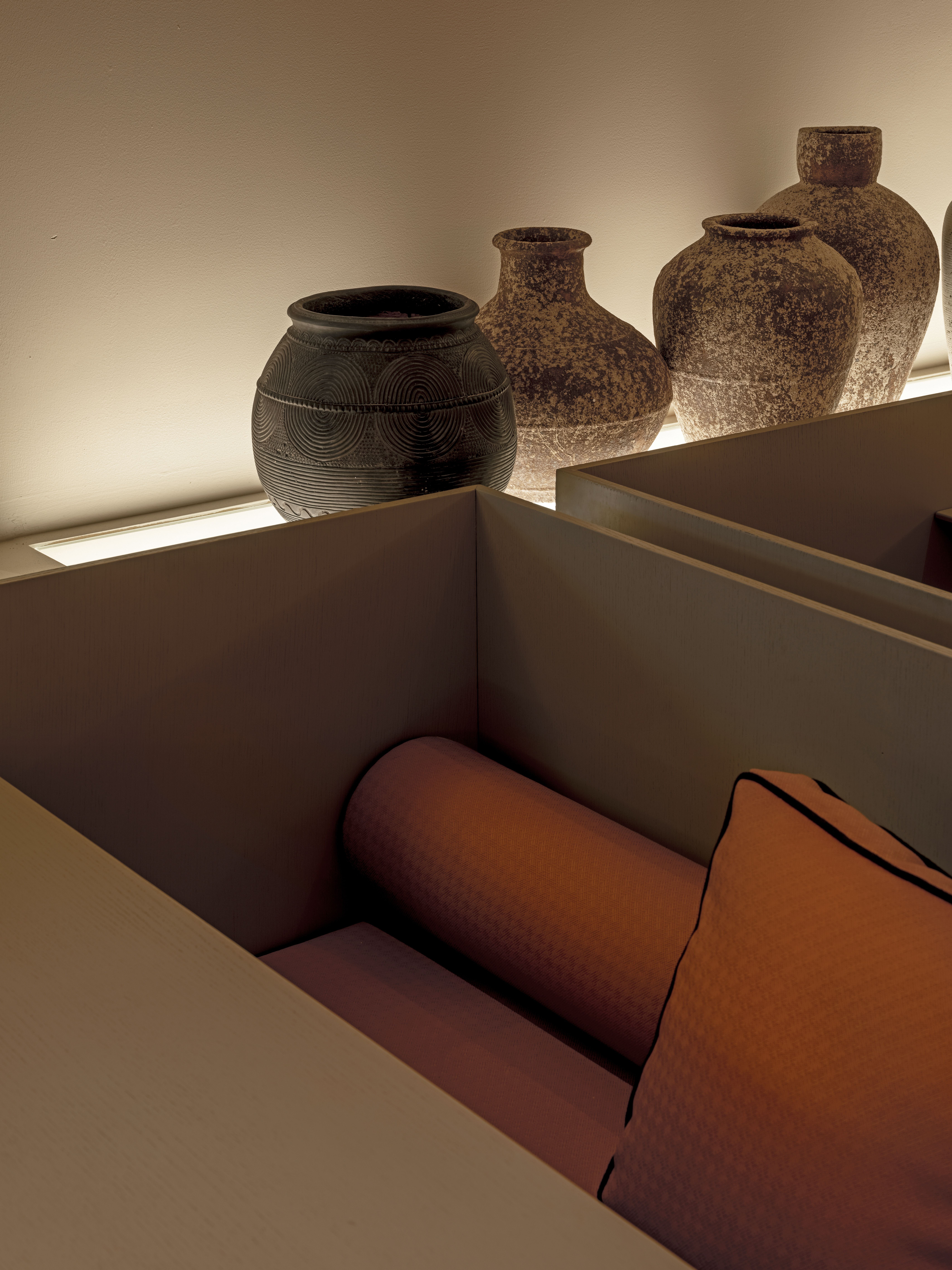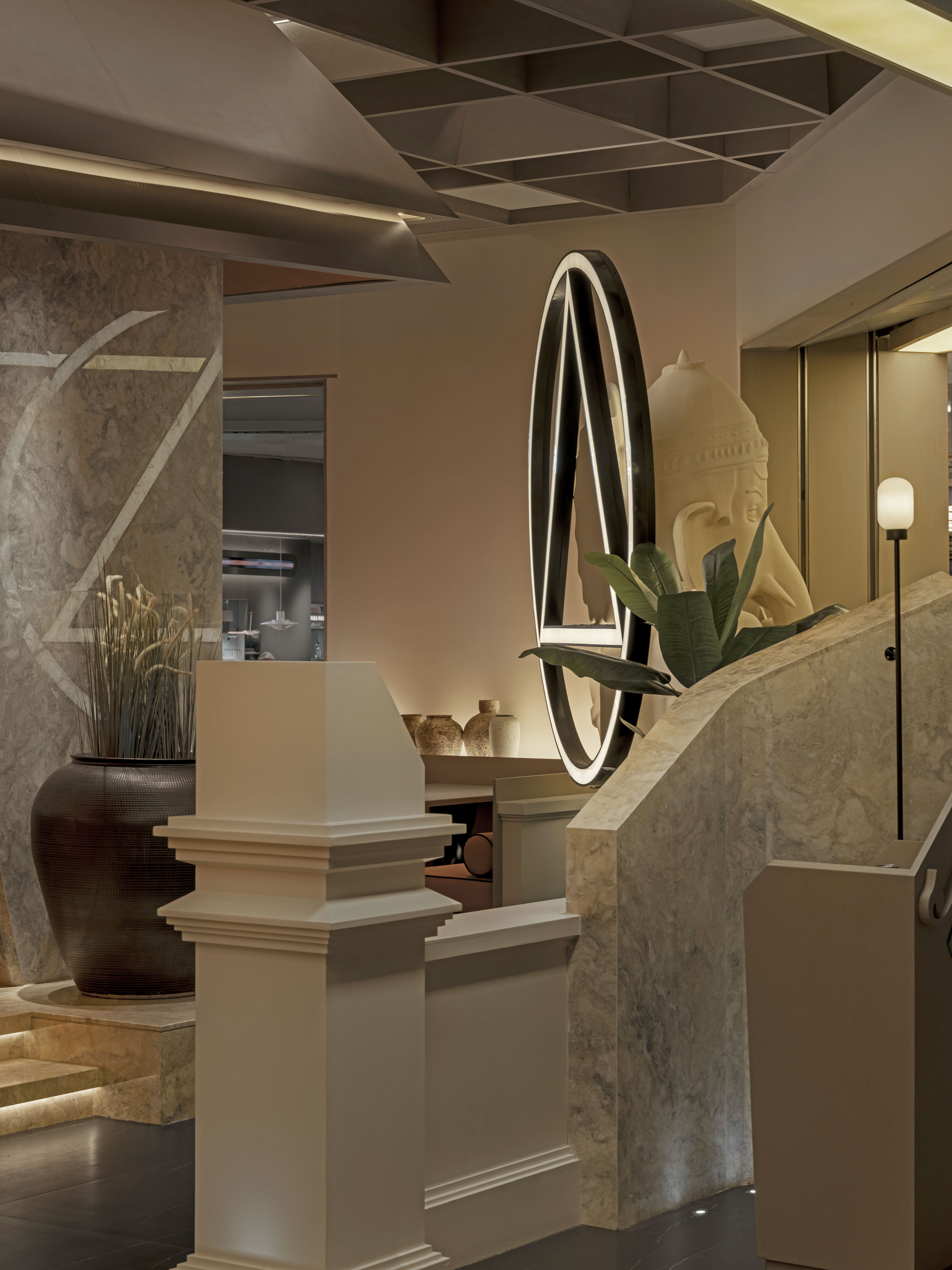 空间意境:1、大地色系赋予空间平和包容的气质,毛石、蕉叶、小象等热带动植物,泰式人文的经典元素在此逐一登场。